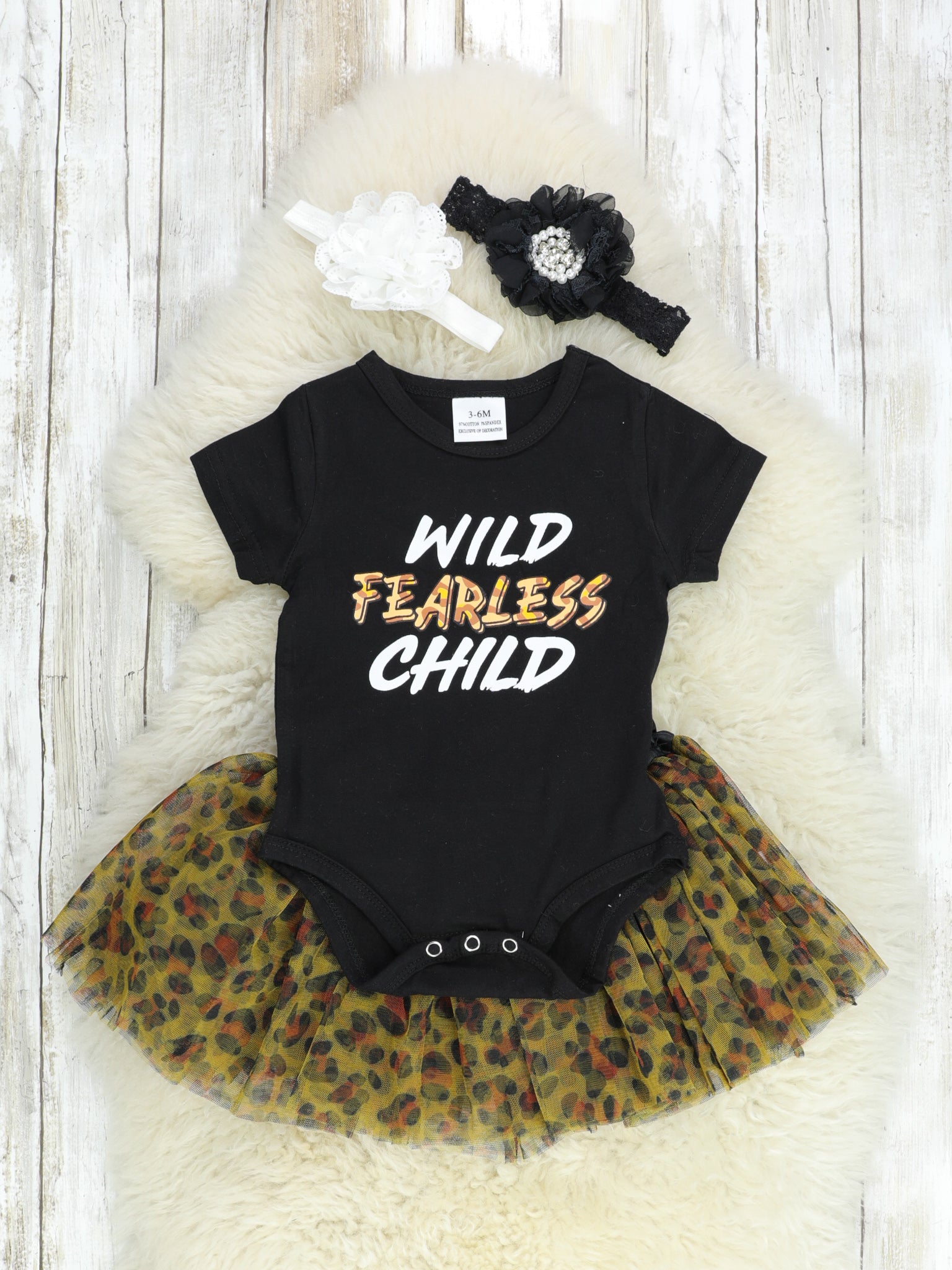 "Wild Fearless Child" Black Leo & Cheetah Tulle Skirt