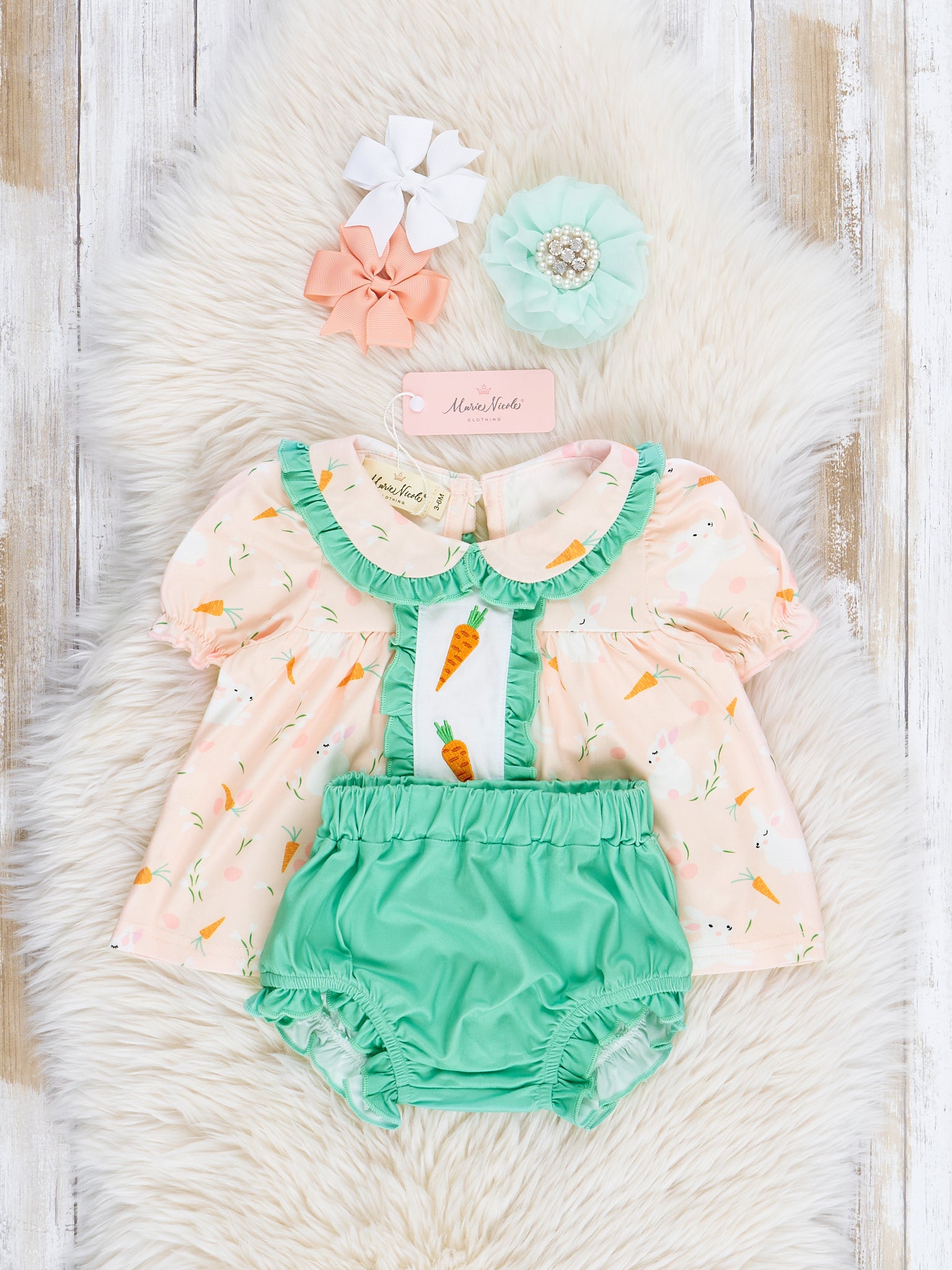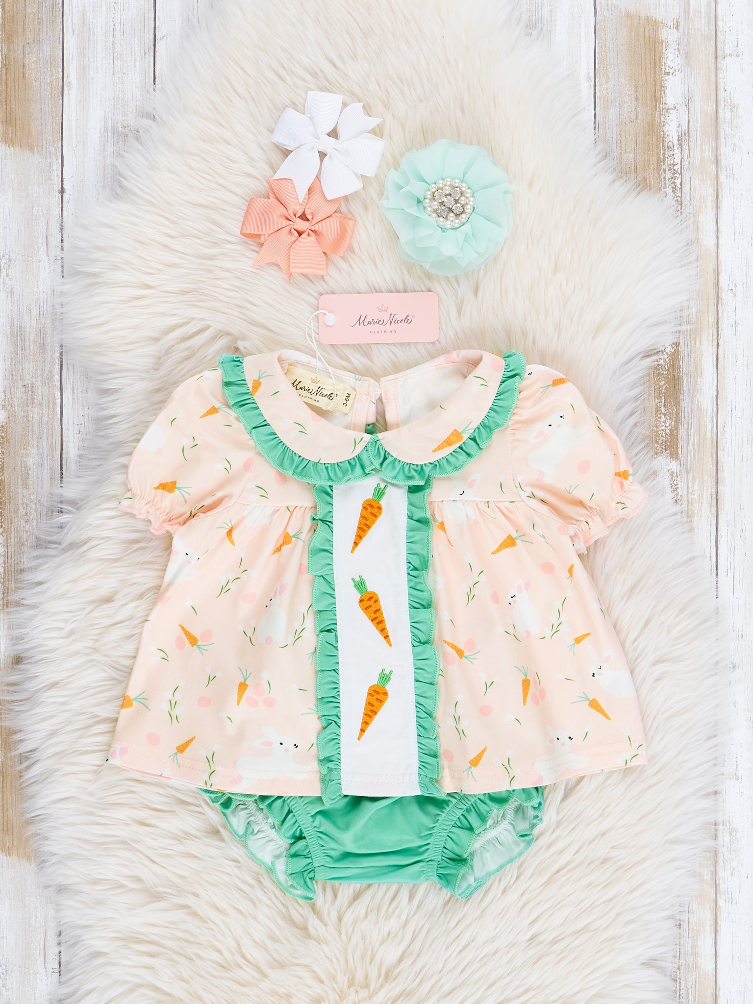 Peach & Green Embroidered Carrots Bloomers Outfit