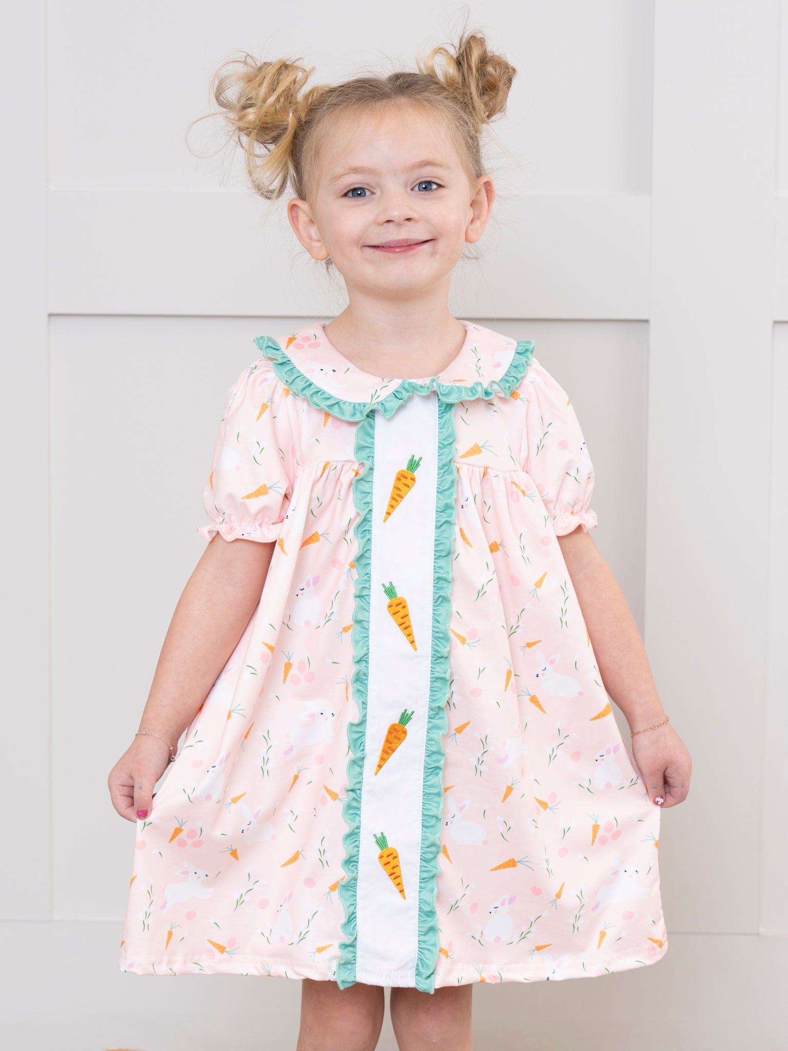 Home › Peach & Green Embroidered Carrots Sister Set