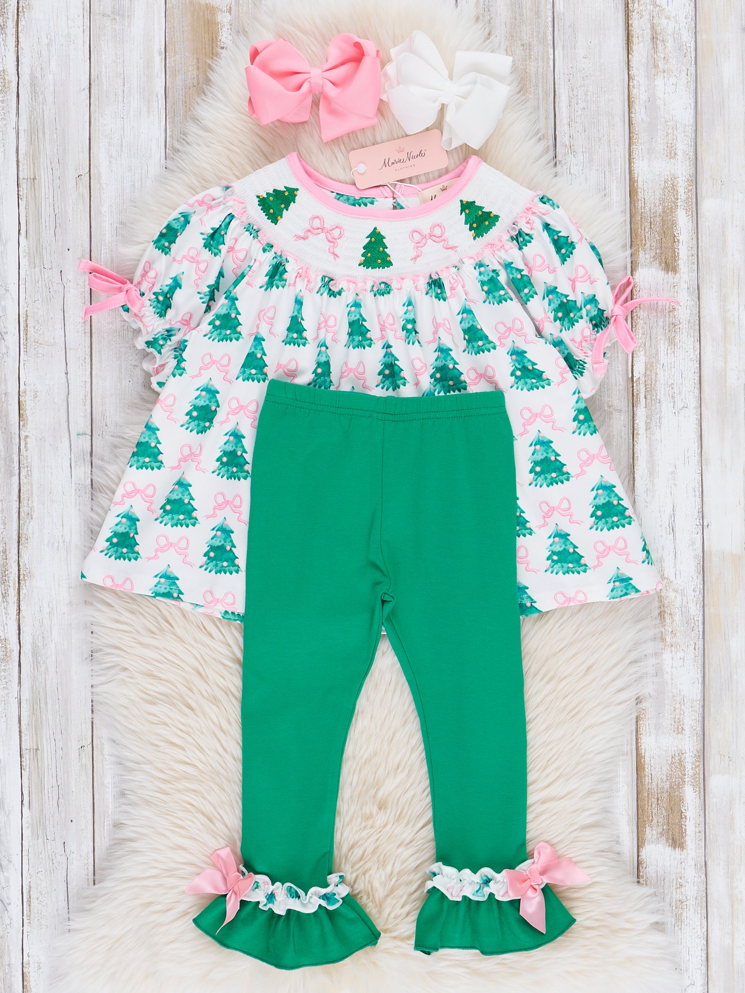 Pink Bows & Evergreens Smocked Outfit