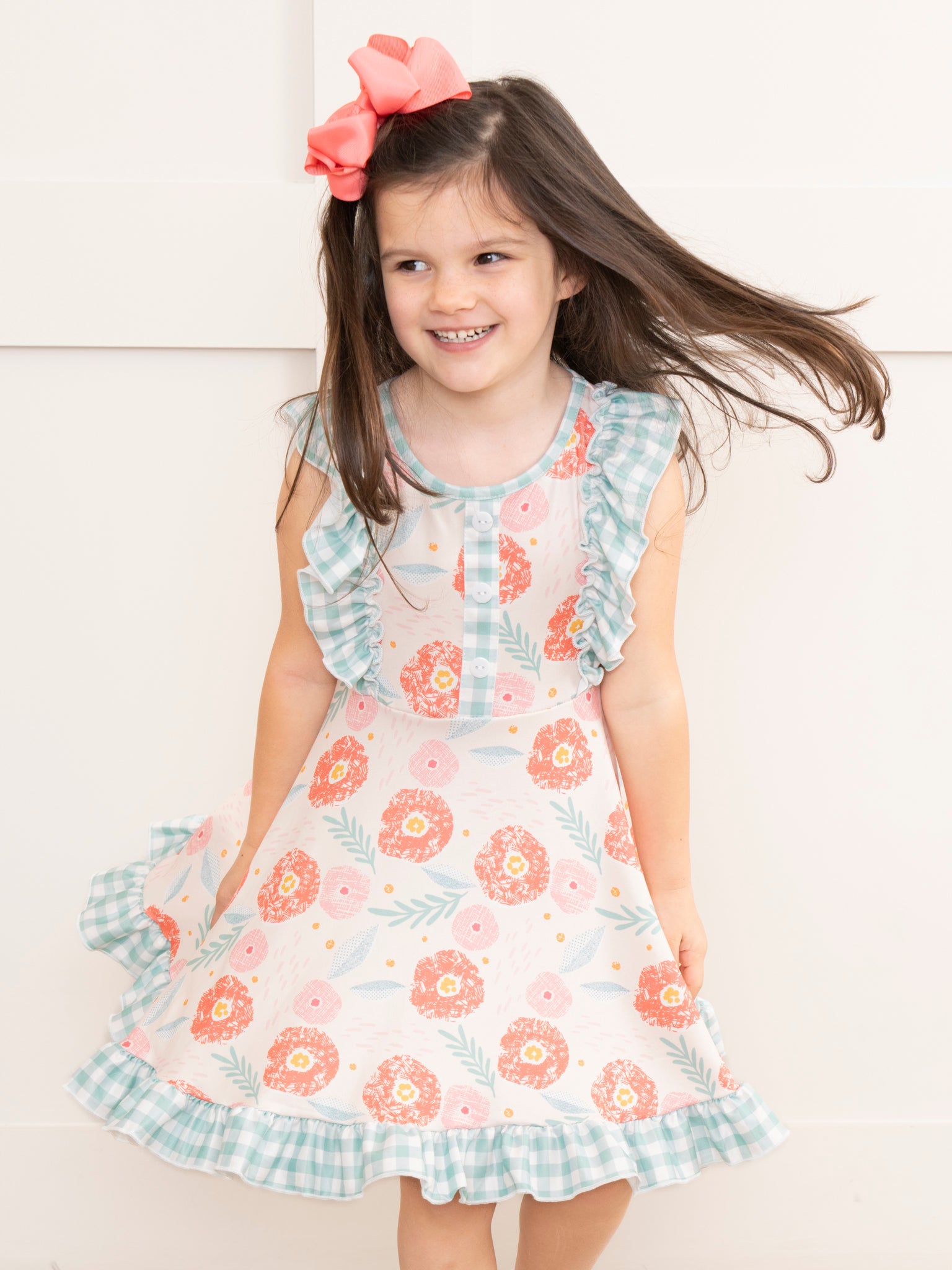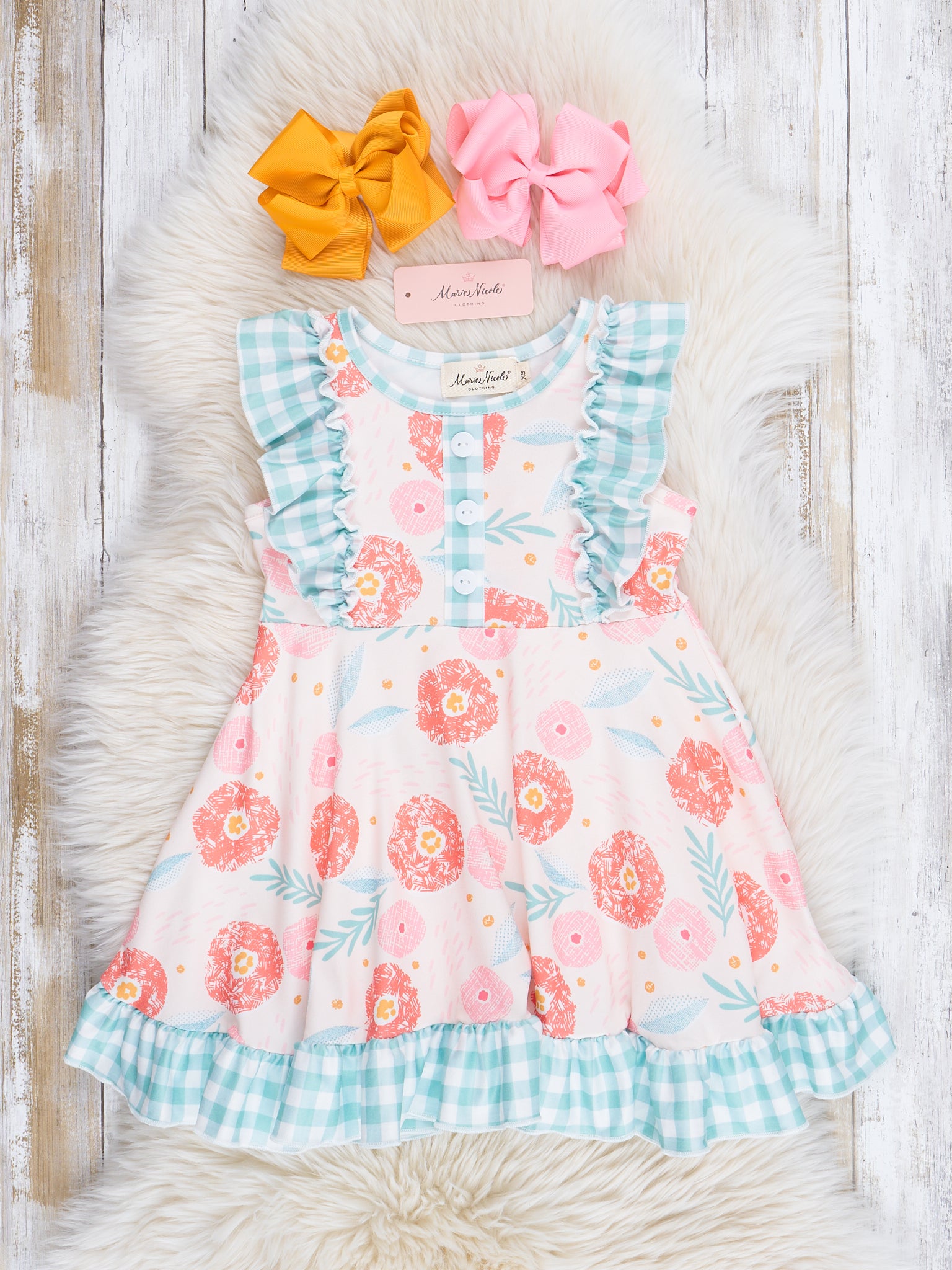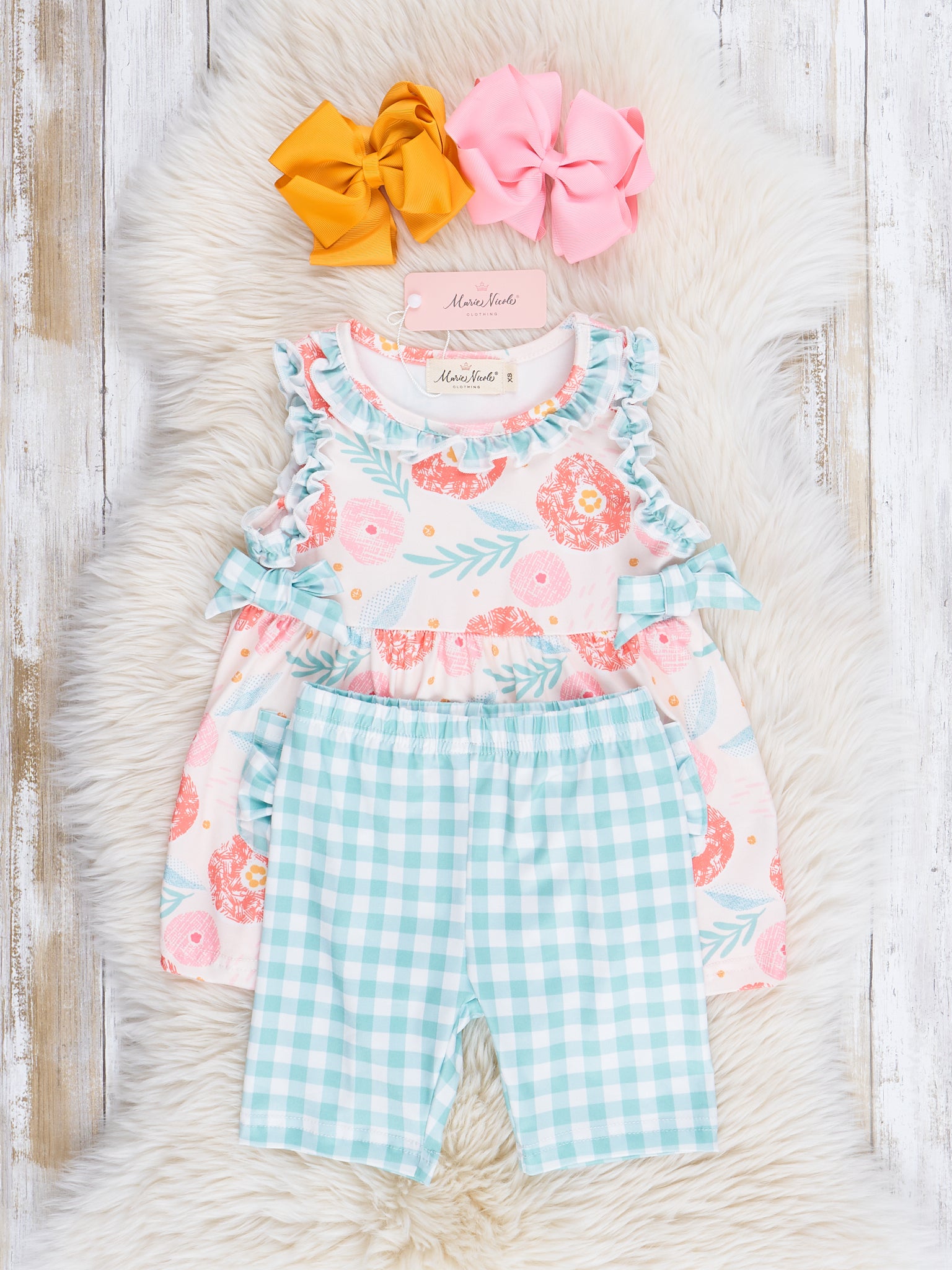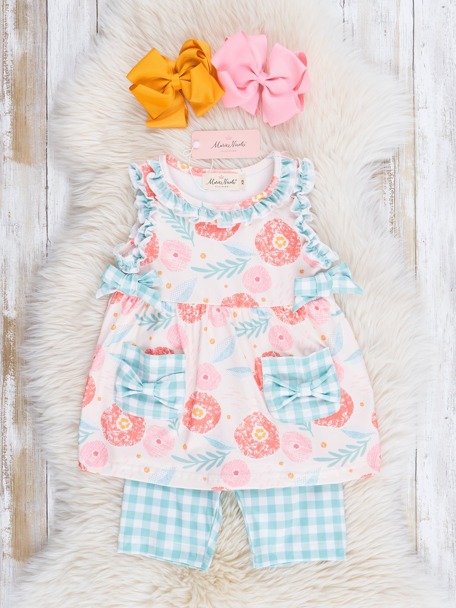 Pink & Teal Gingham Blooms Ruffle Outfit