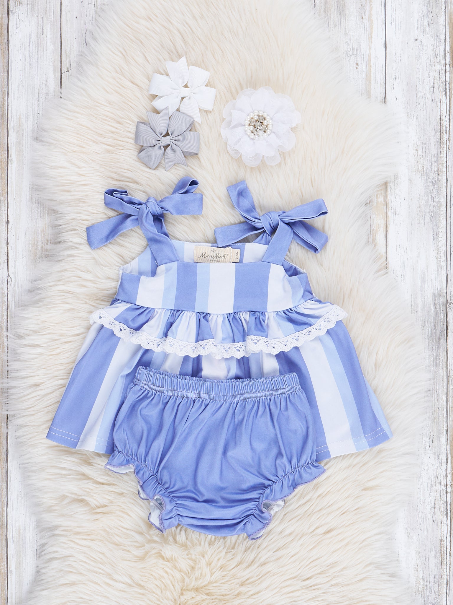 Slate Blue Striped Tie Top & Bloomers Set