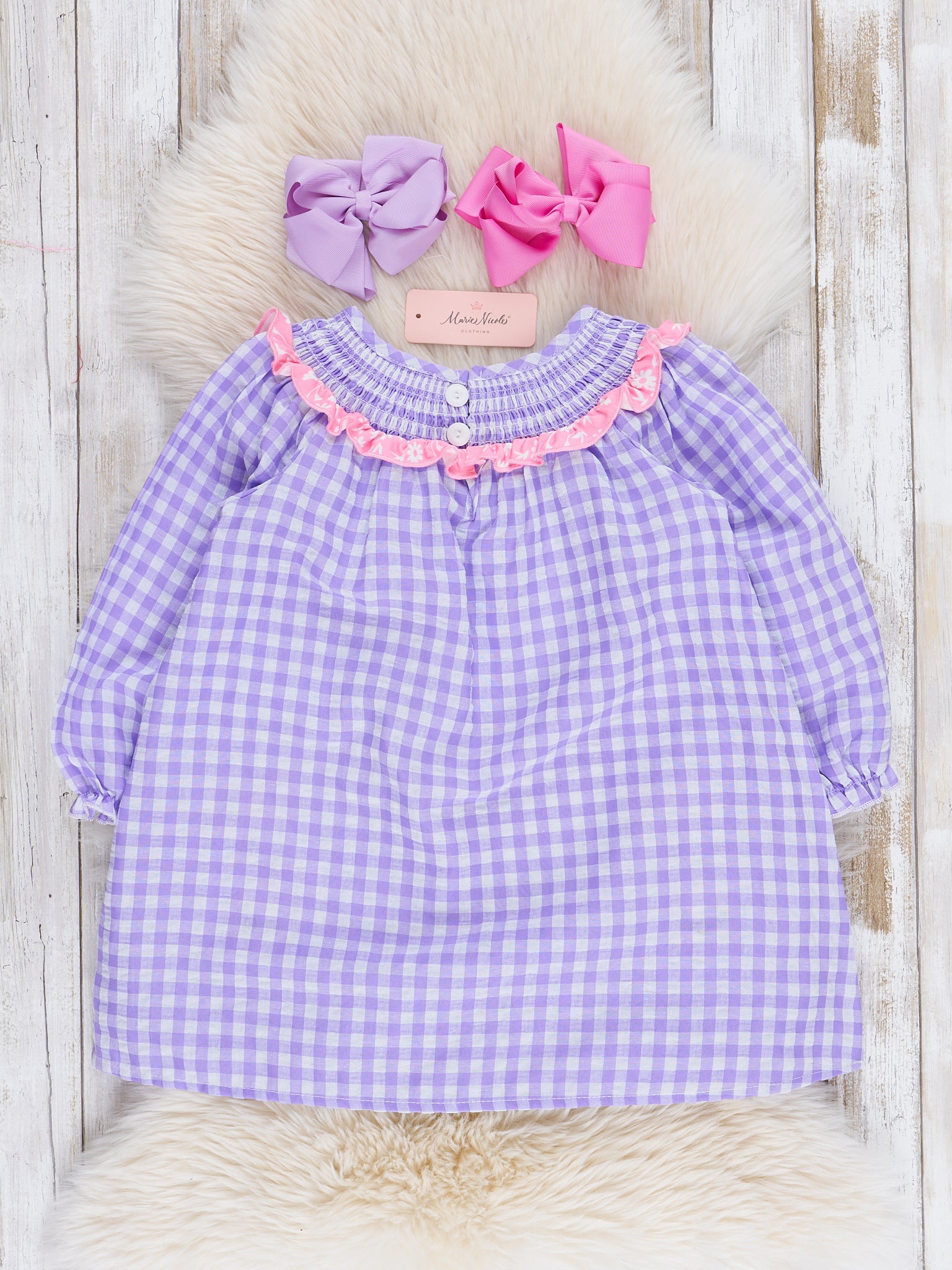 Purple Gingham Embroidered Ghosts Ruffle Dress