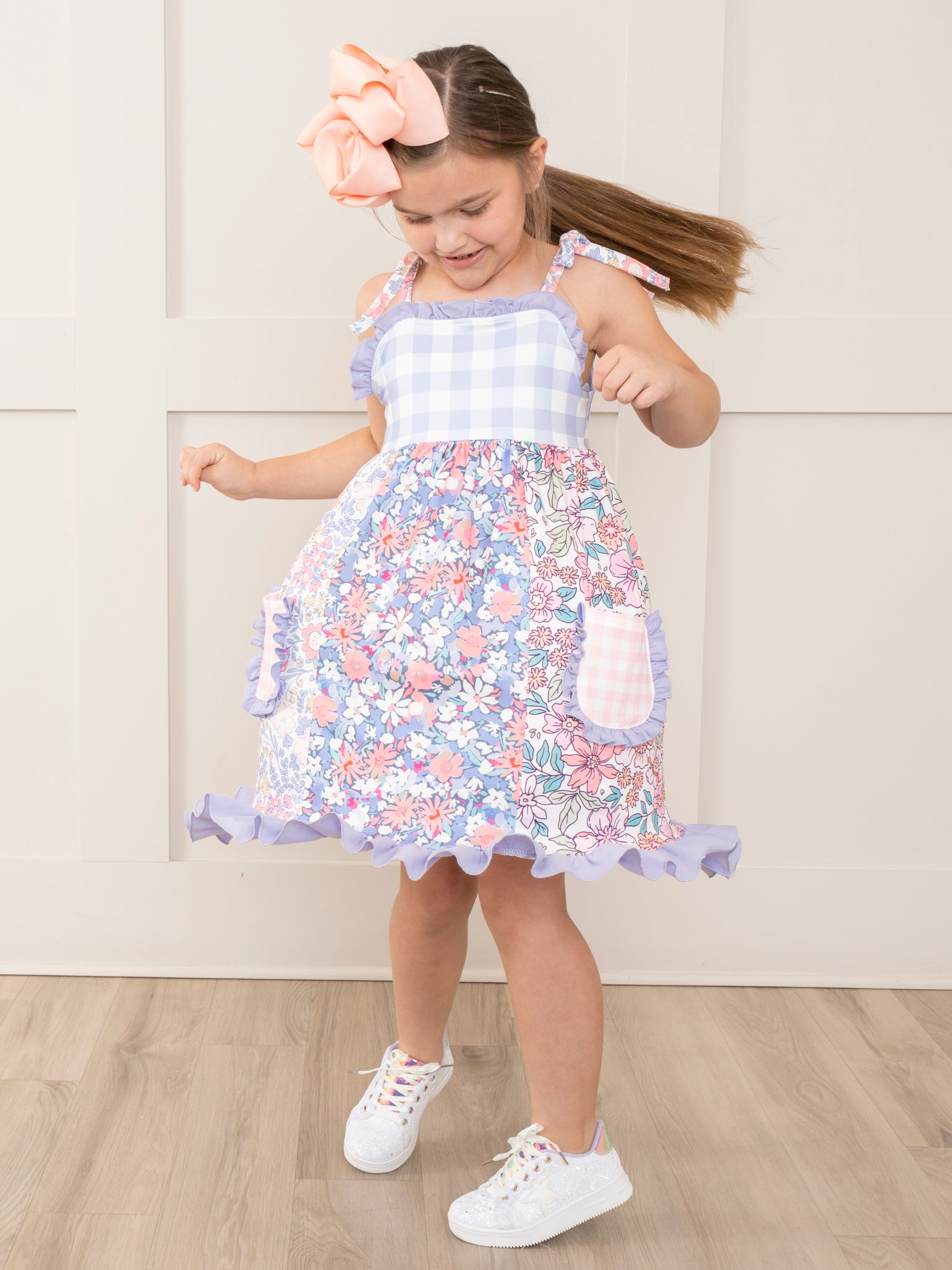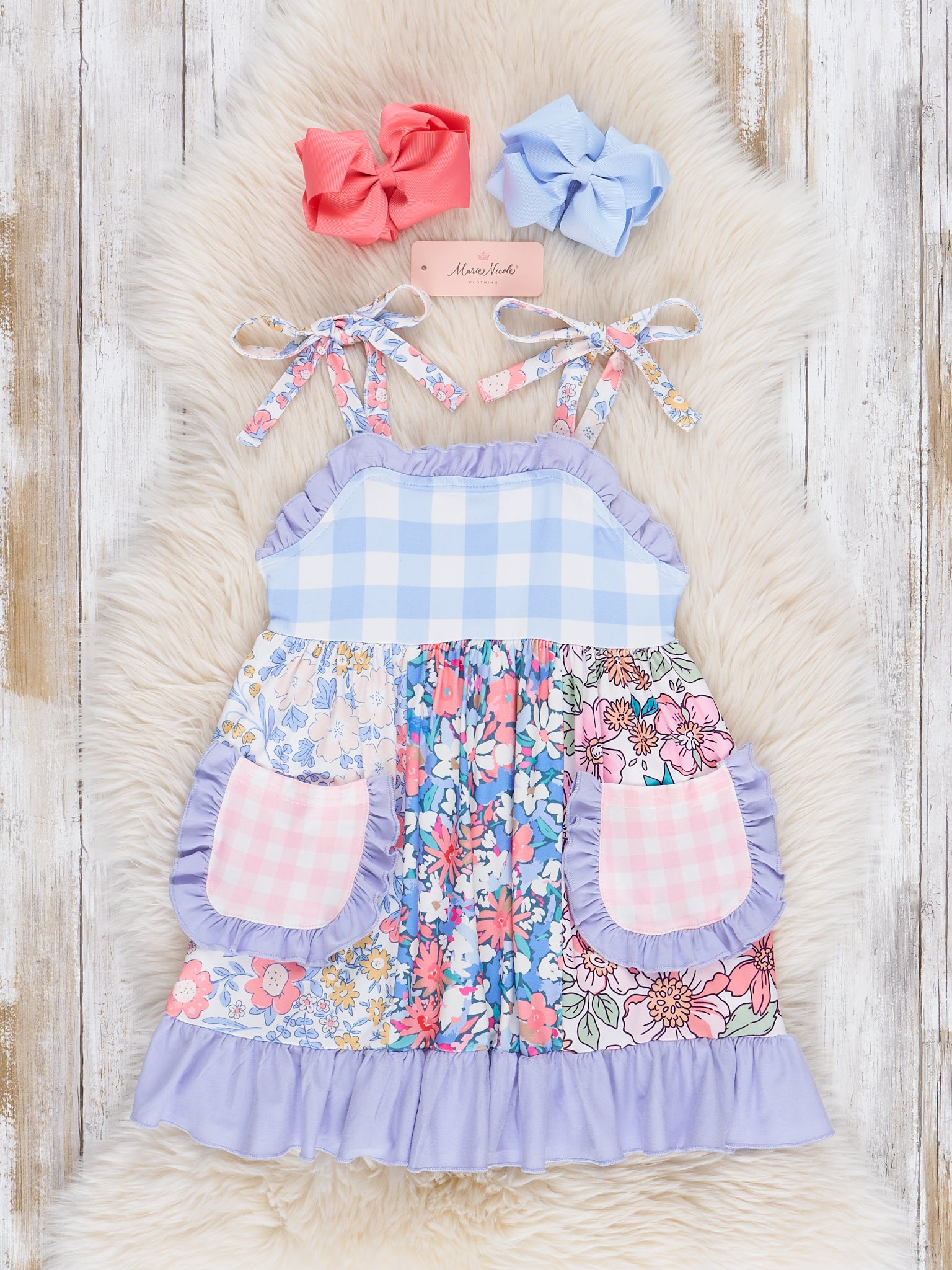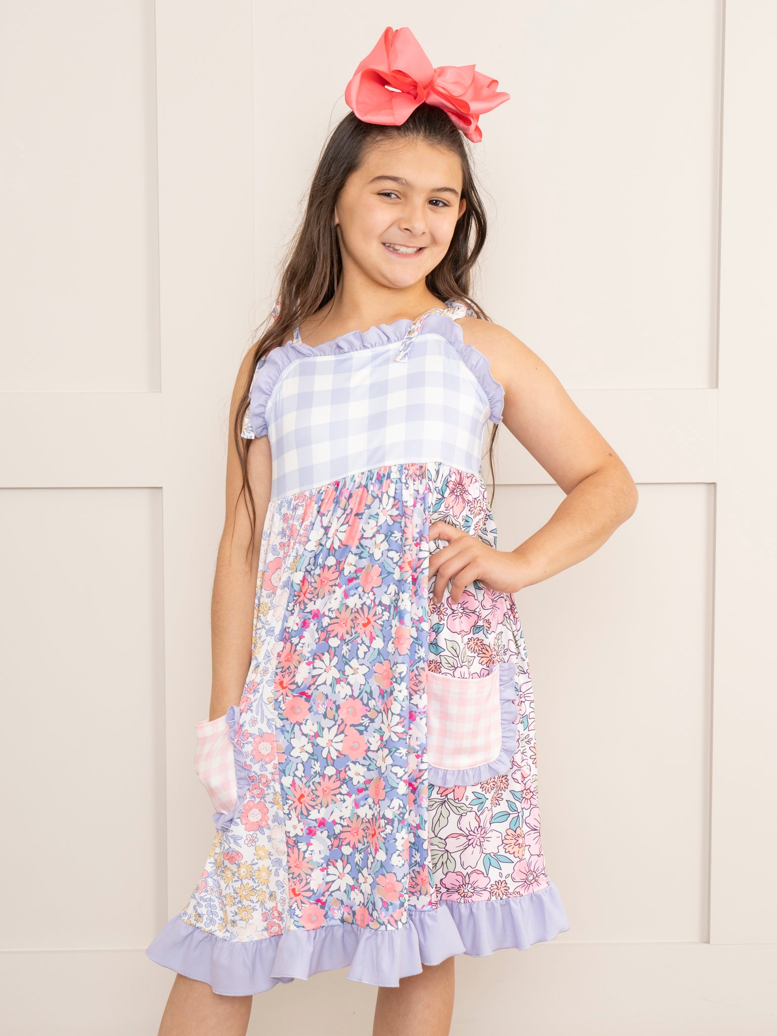 Purple Gingham Smocked Mermaid Ruffle Dress