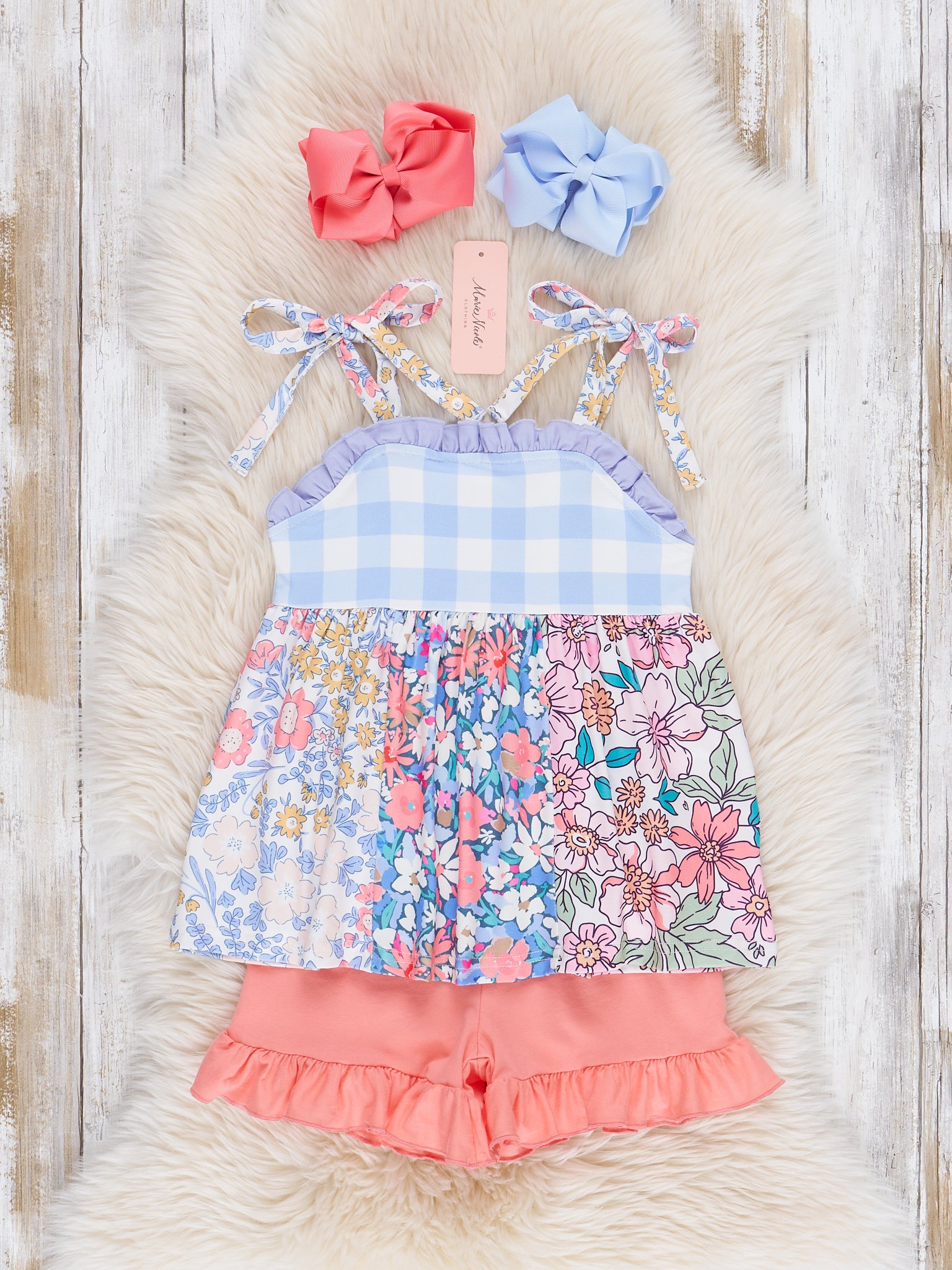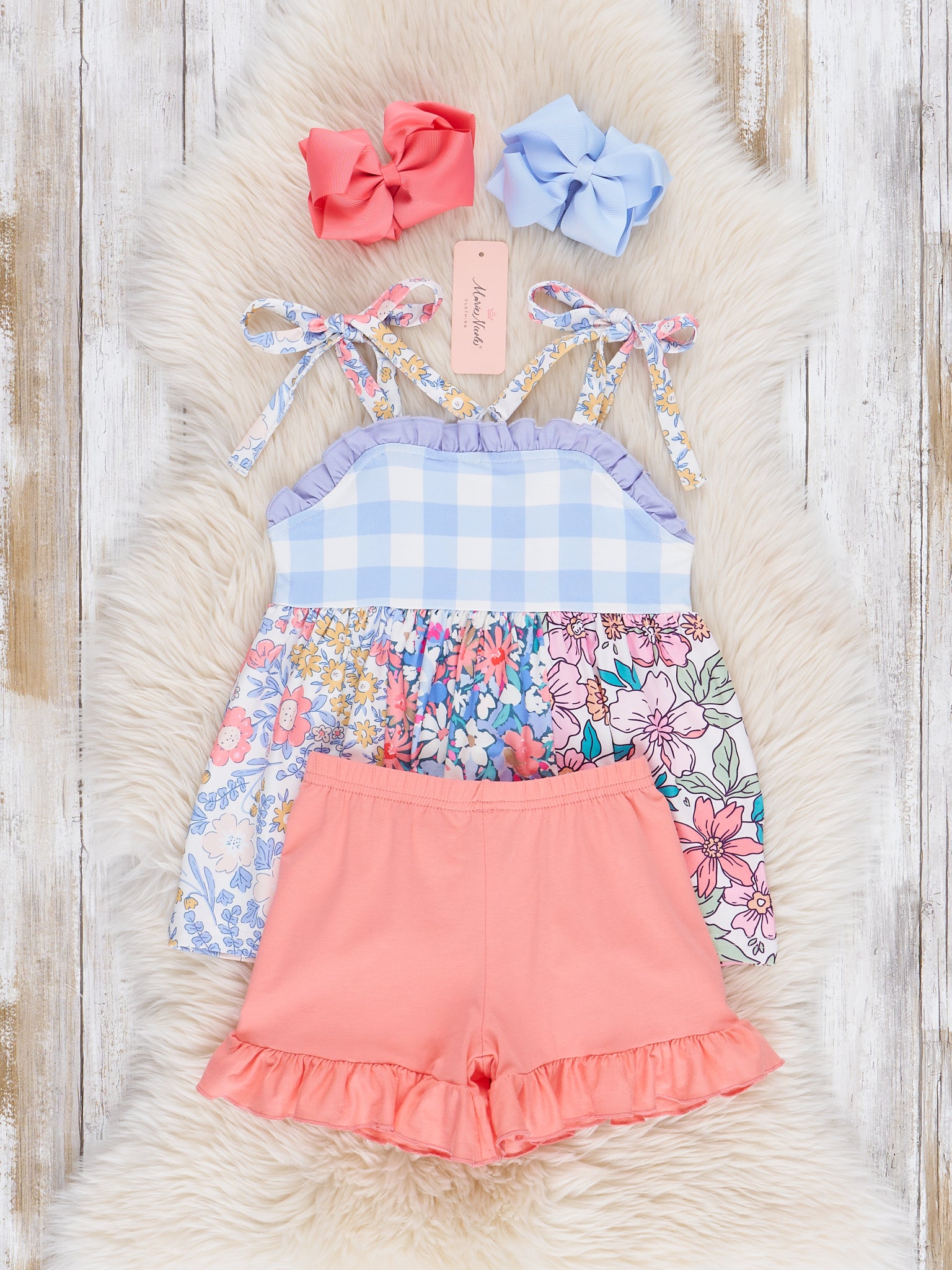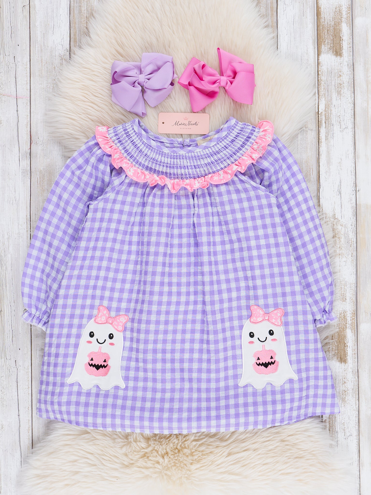 Purple Gingham Embroidered Ghosts Bloomers Outfit