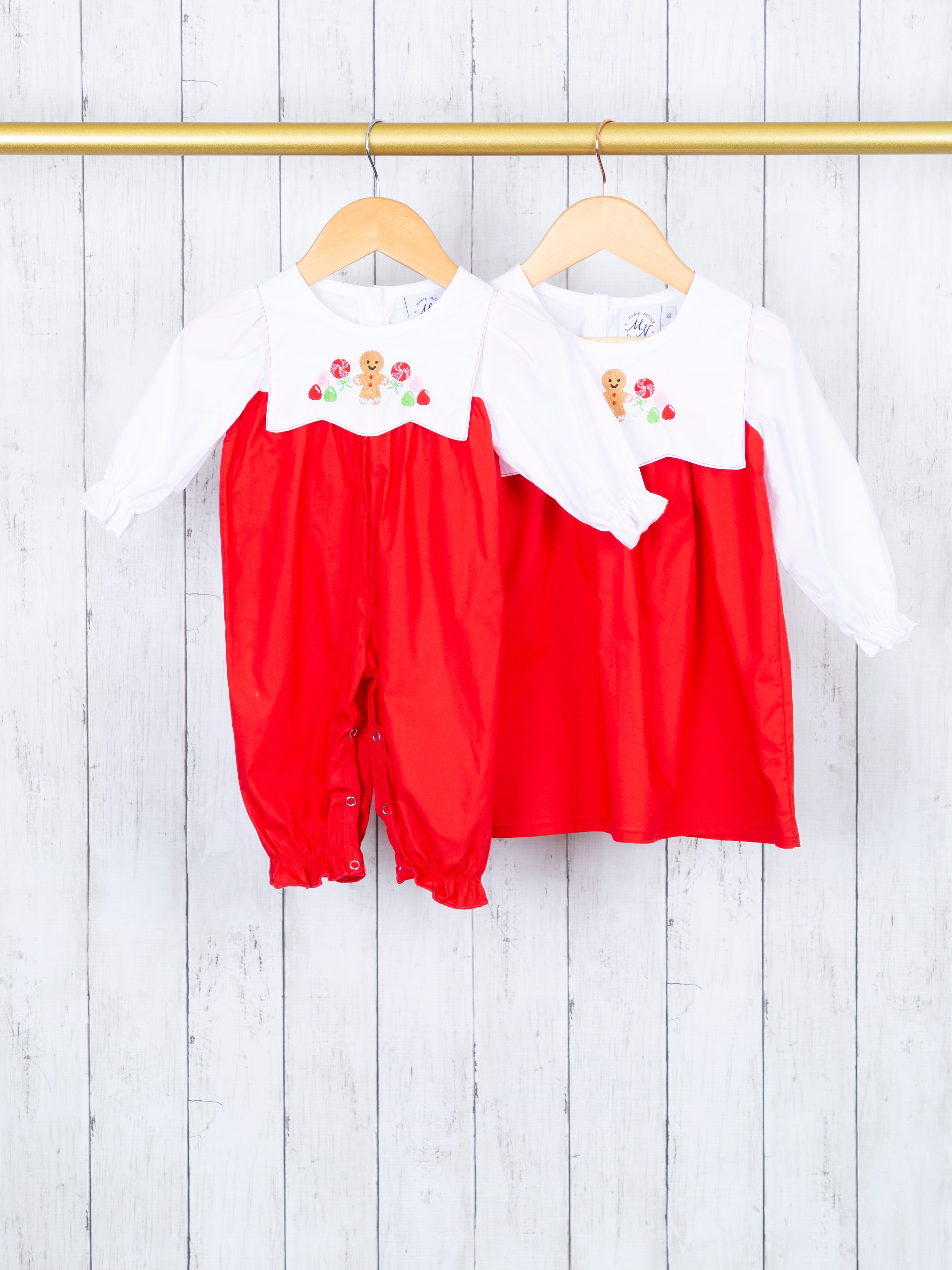 Red Gingerbread Bib Collar Sister Set