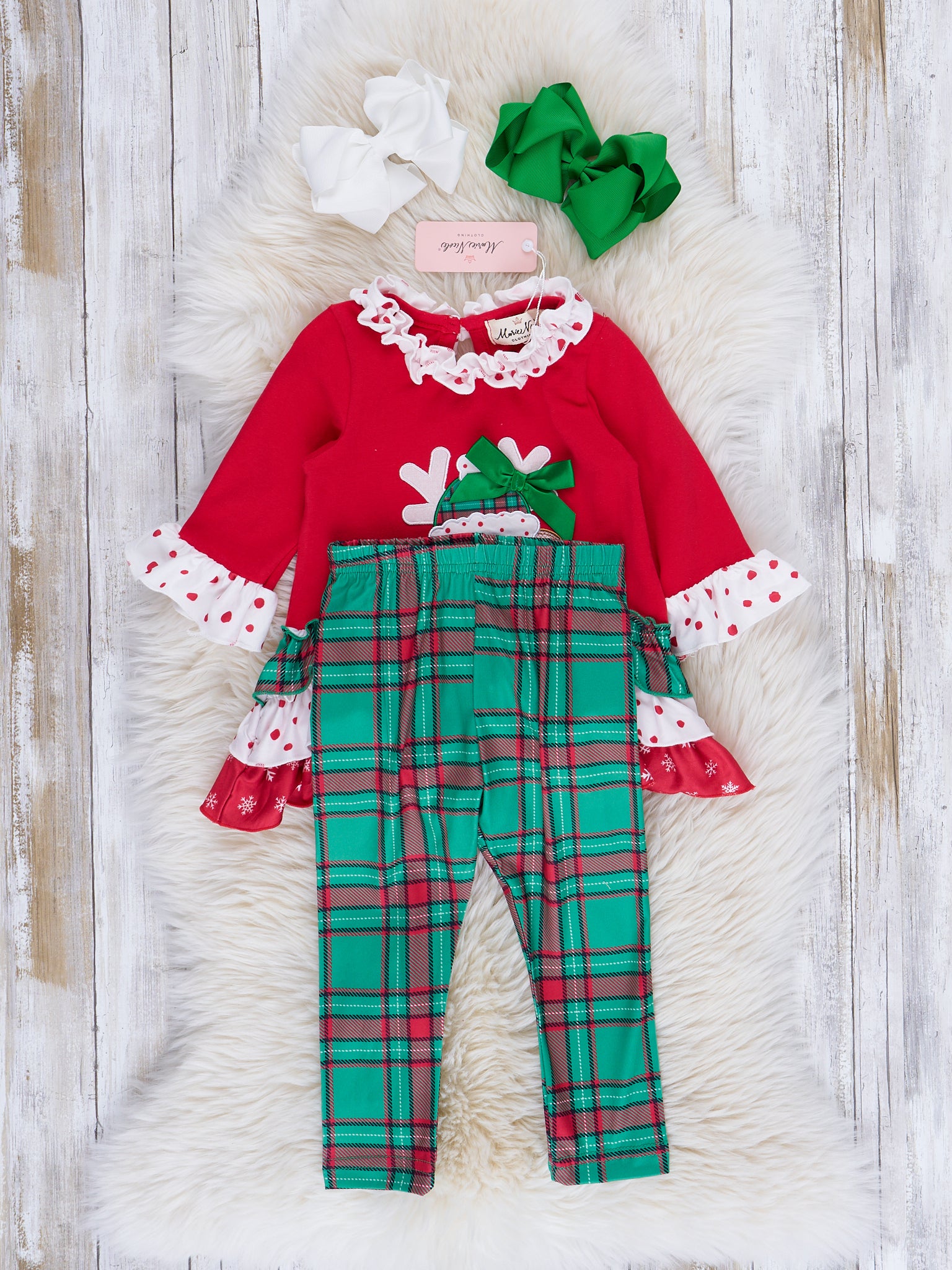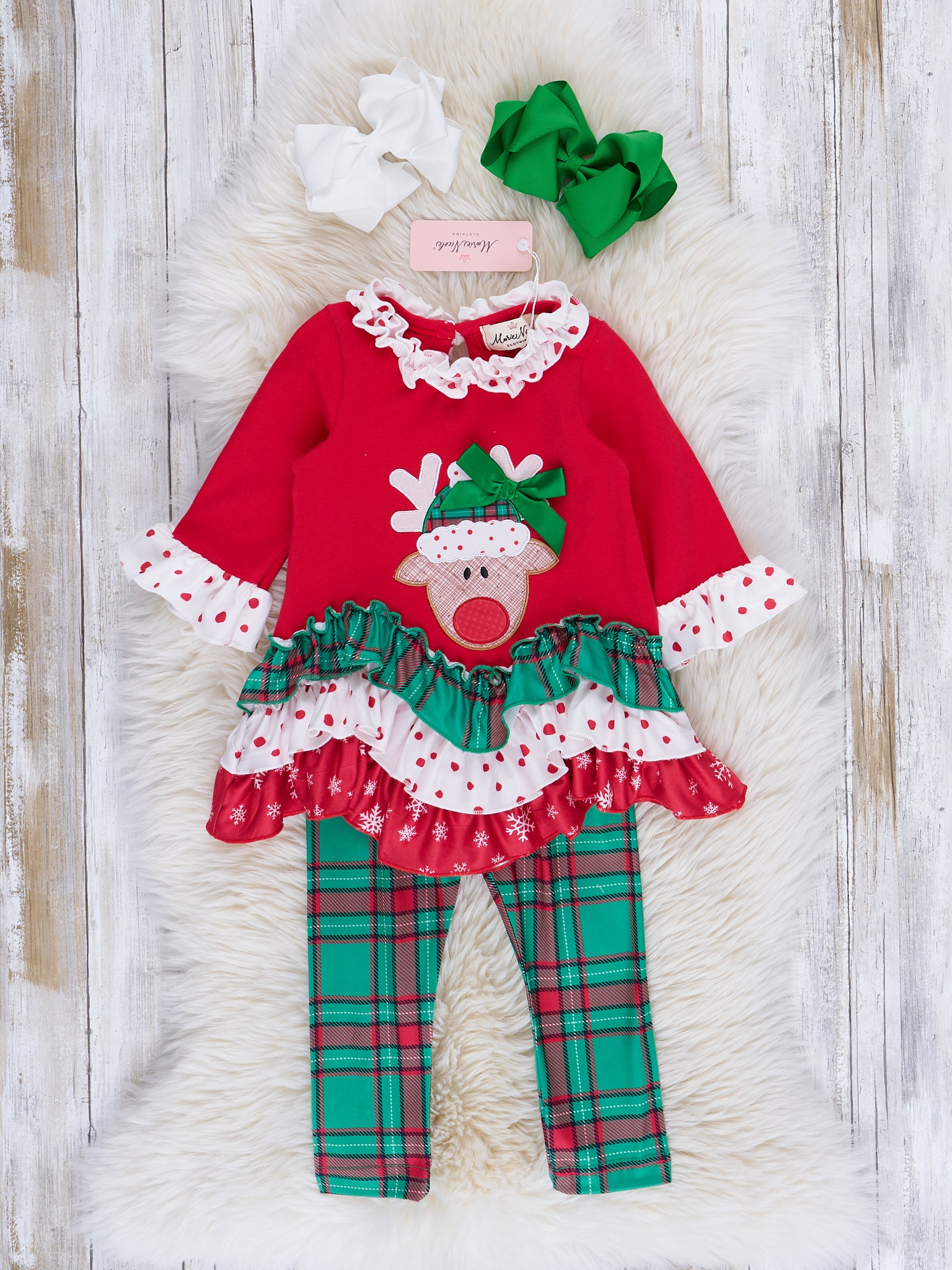 Red & Green Embroidered Reindeer Ruffle Outfit