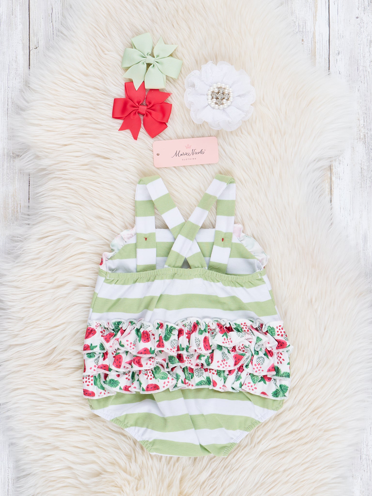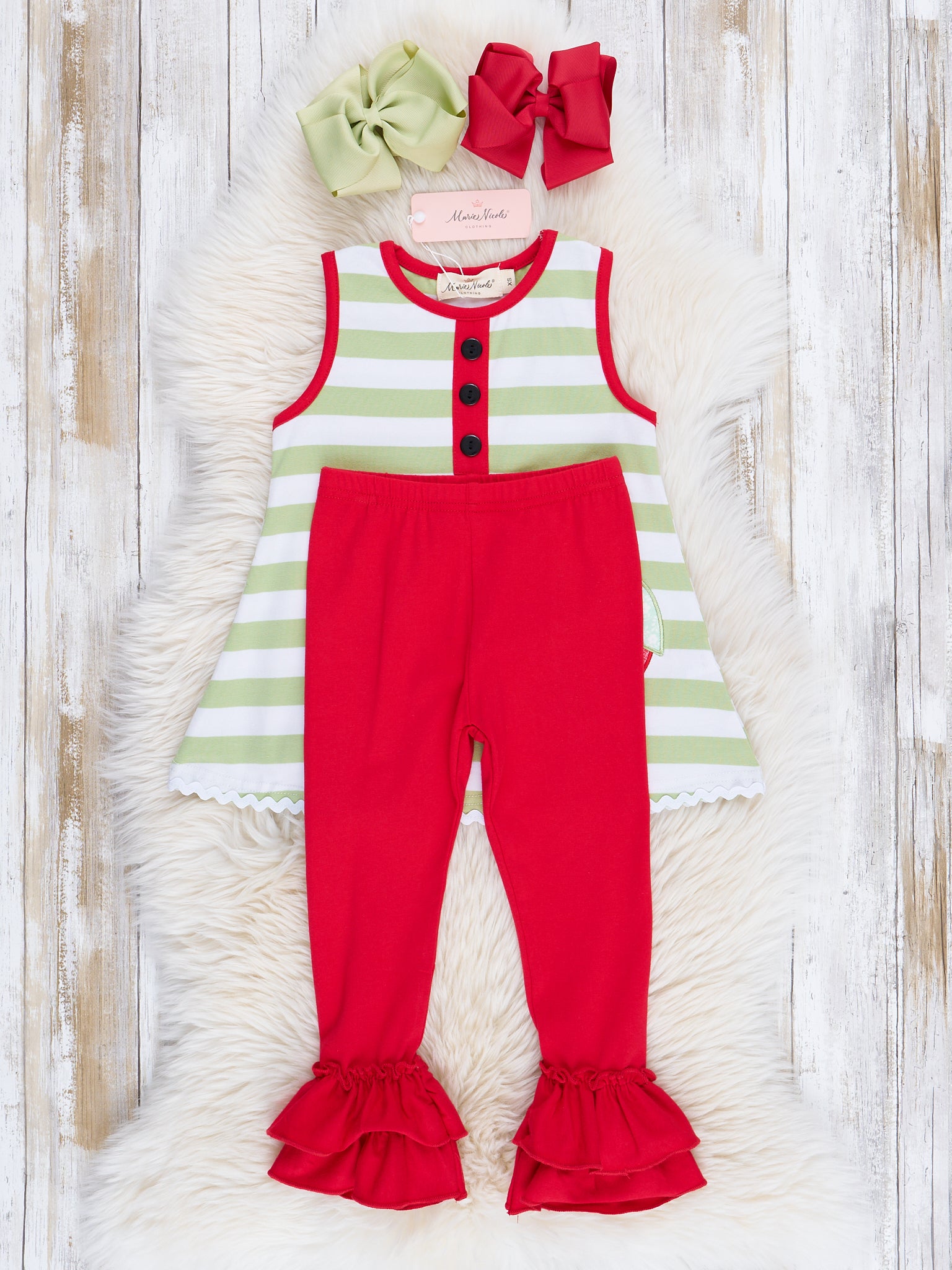 Red & Green Stripes Embroidered Strawberry Sister Set