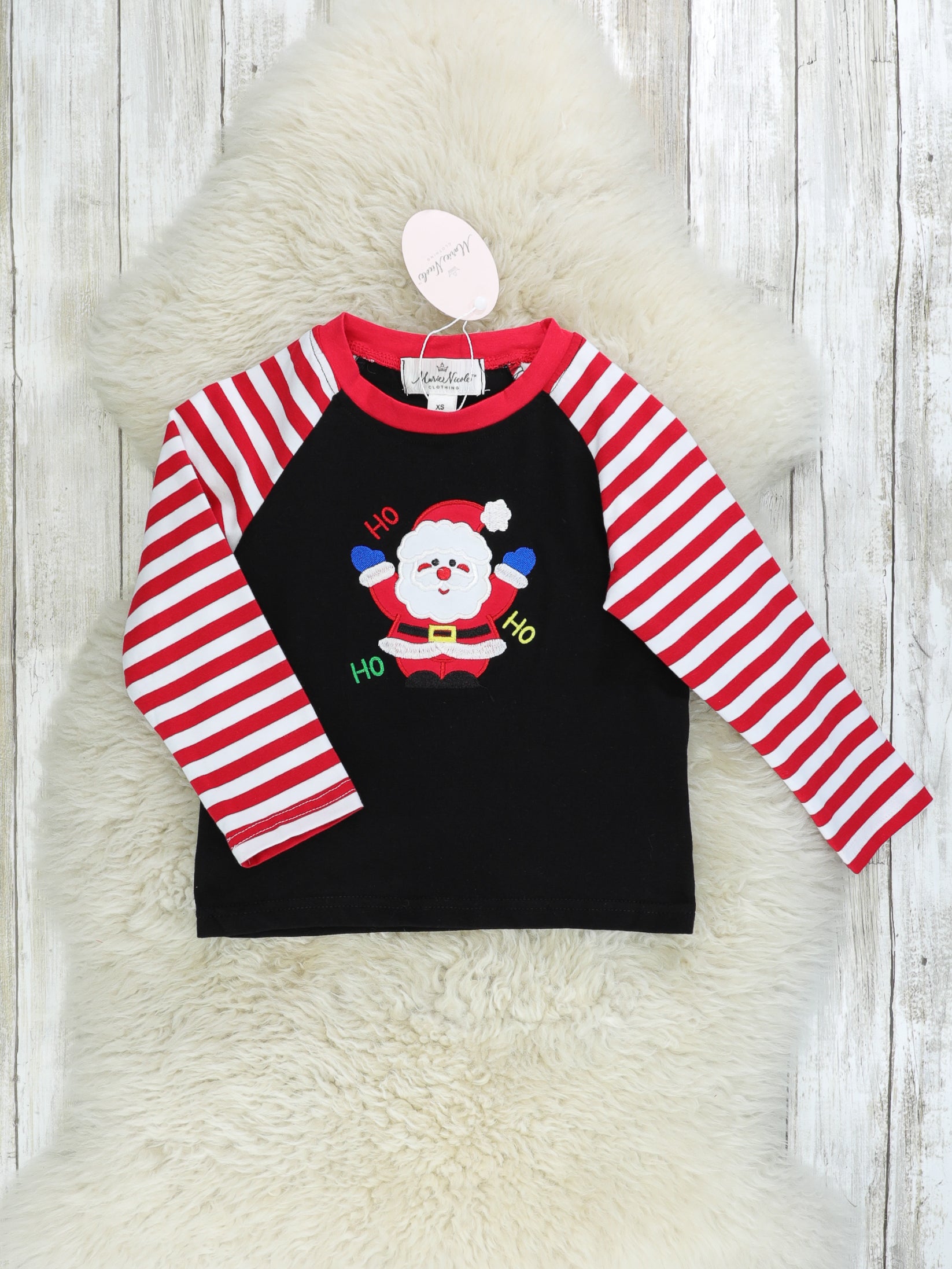 Red Striped Raglan Santa Shirt