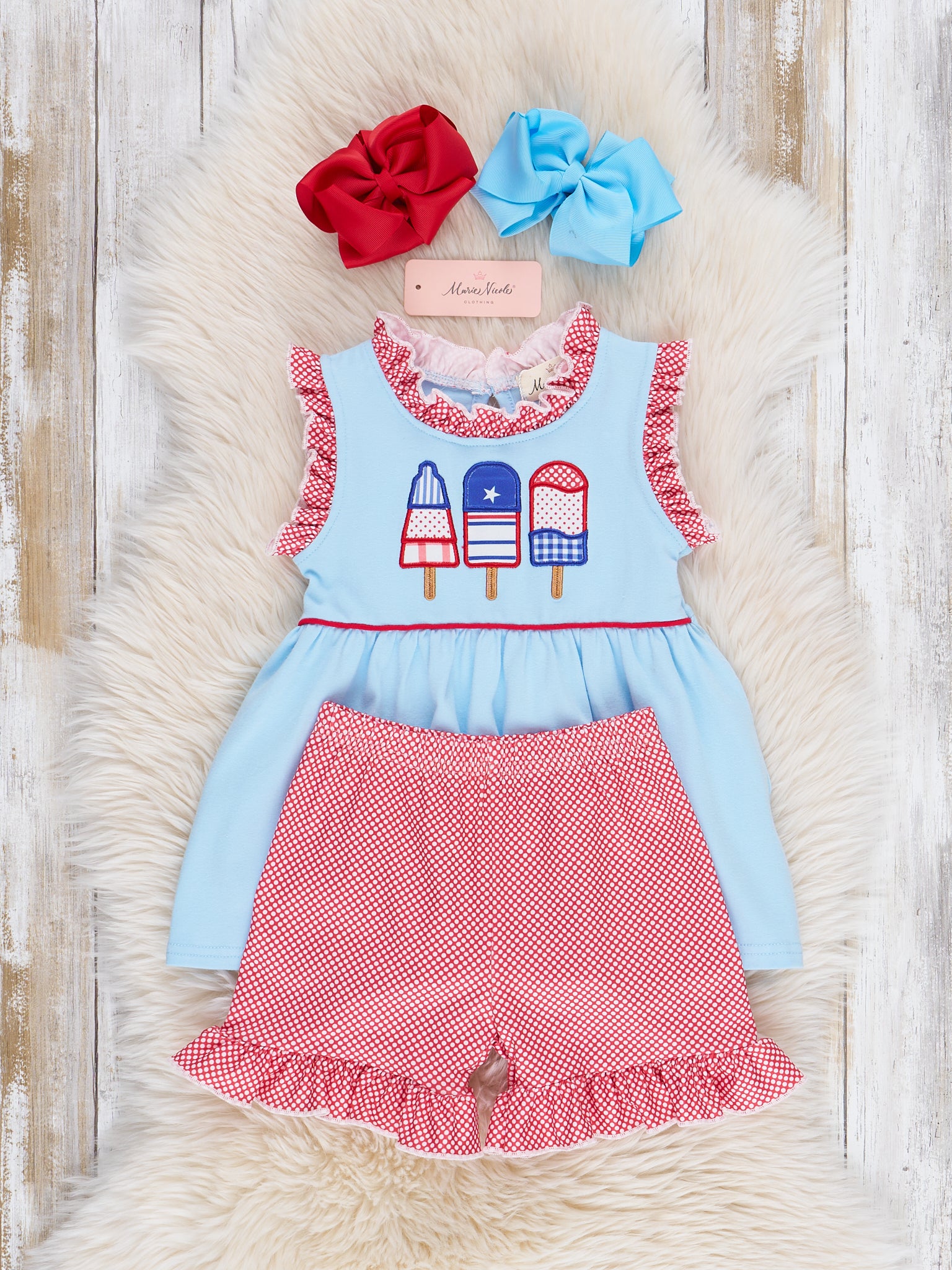 Red, White, & Blue Ruffle Popsicle Sister Set