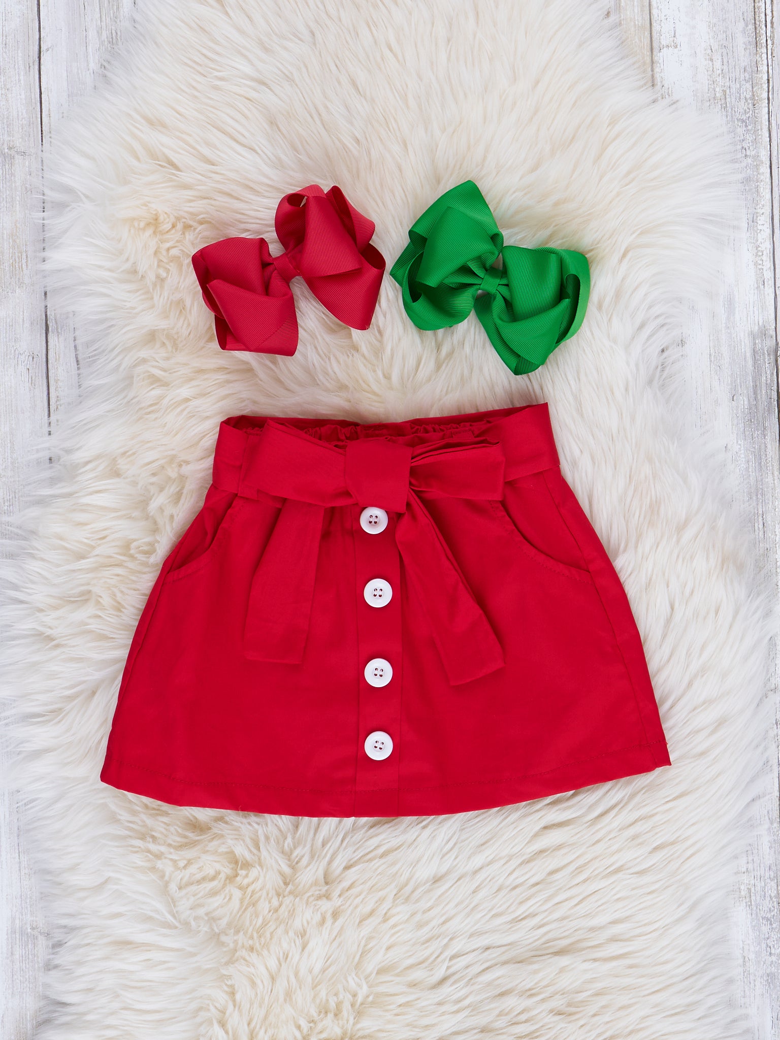 Red & White Bubble Sleeve Christmas Outfit w/ Skirt
