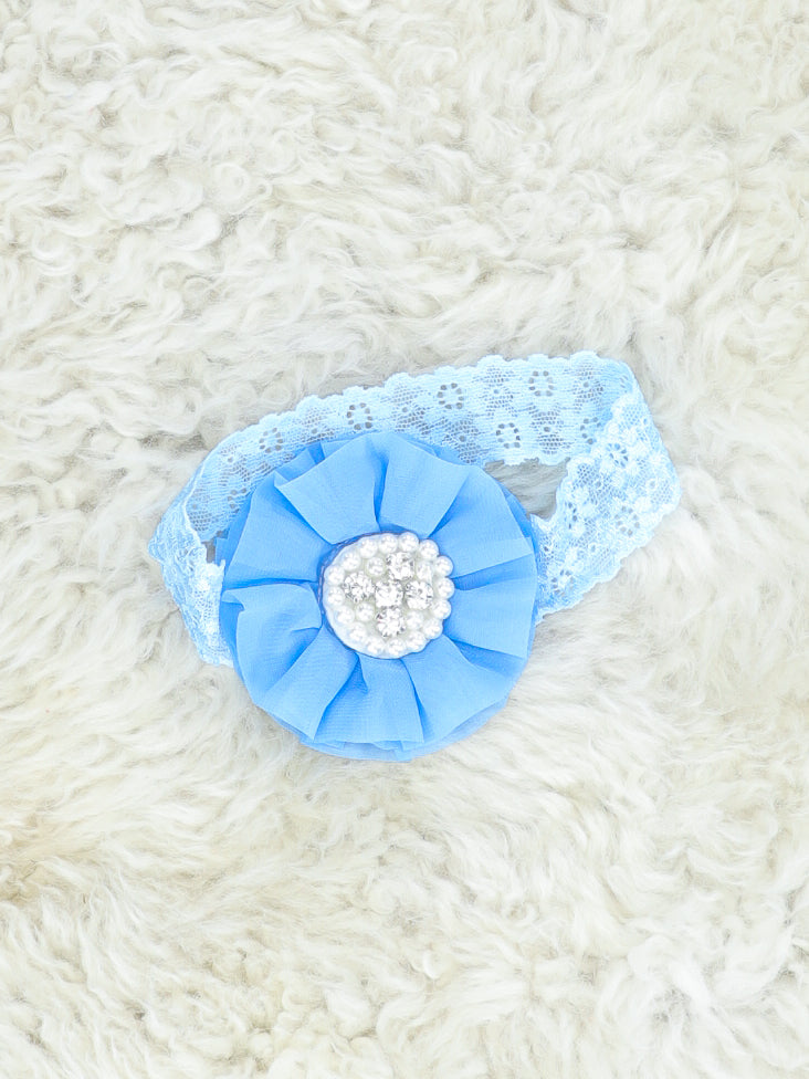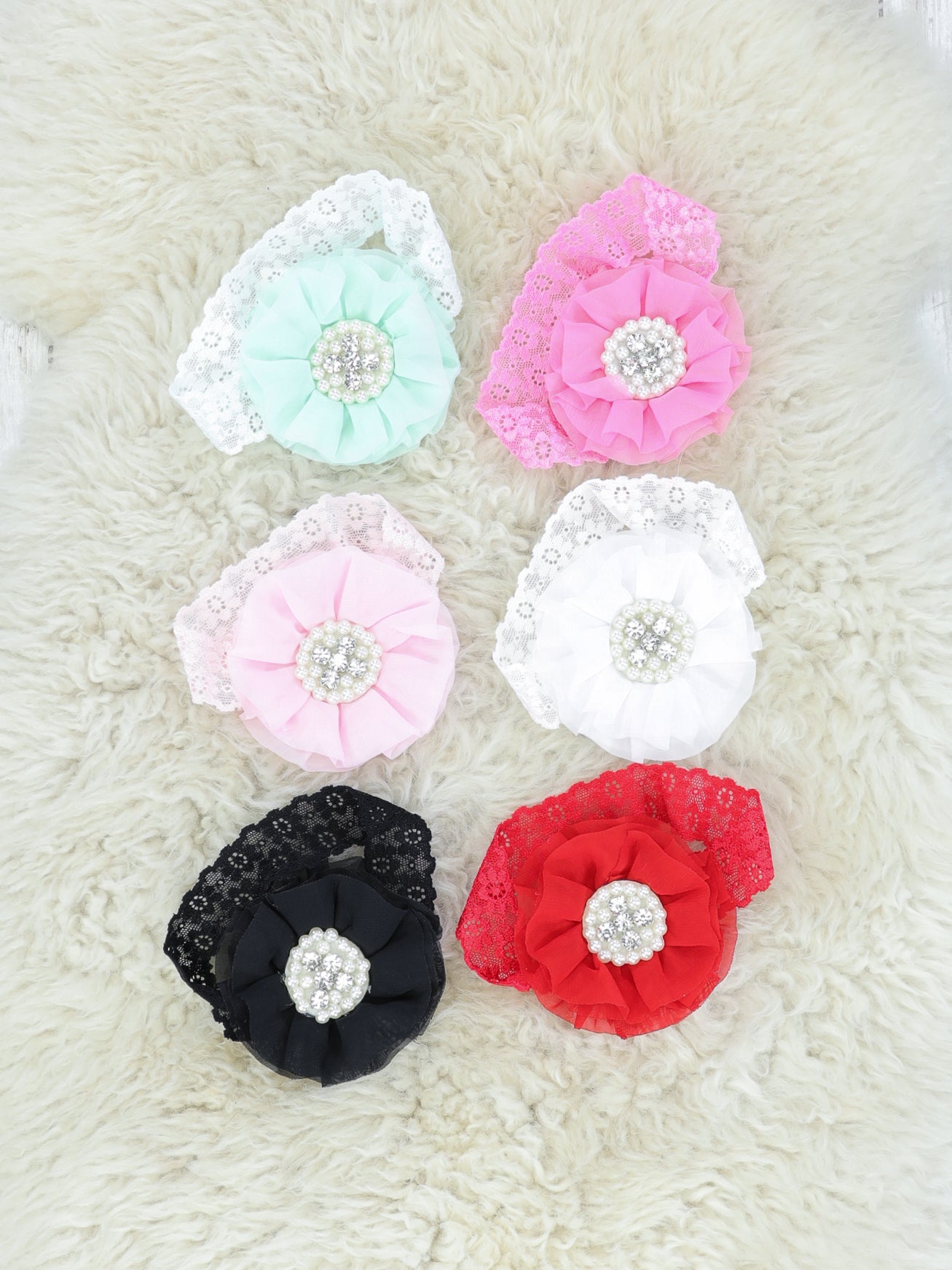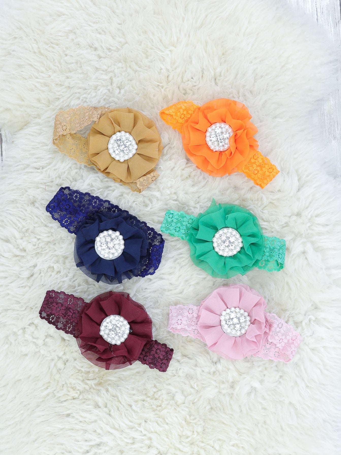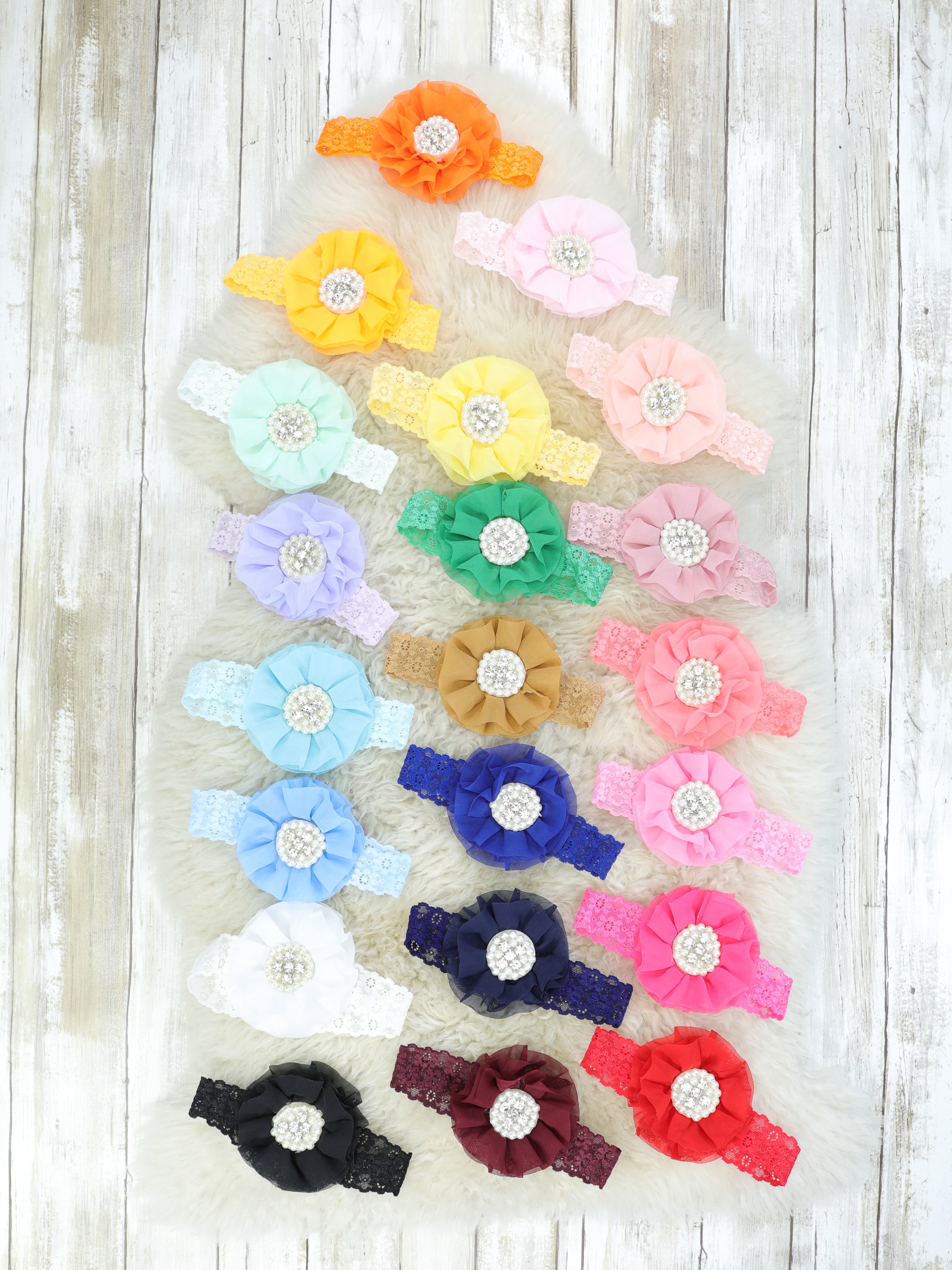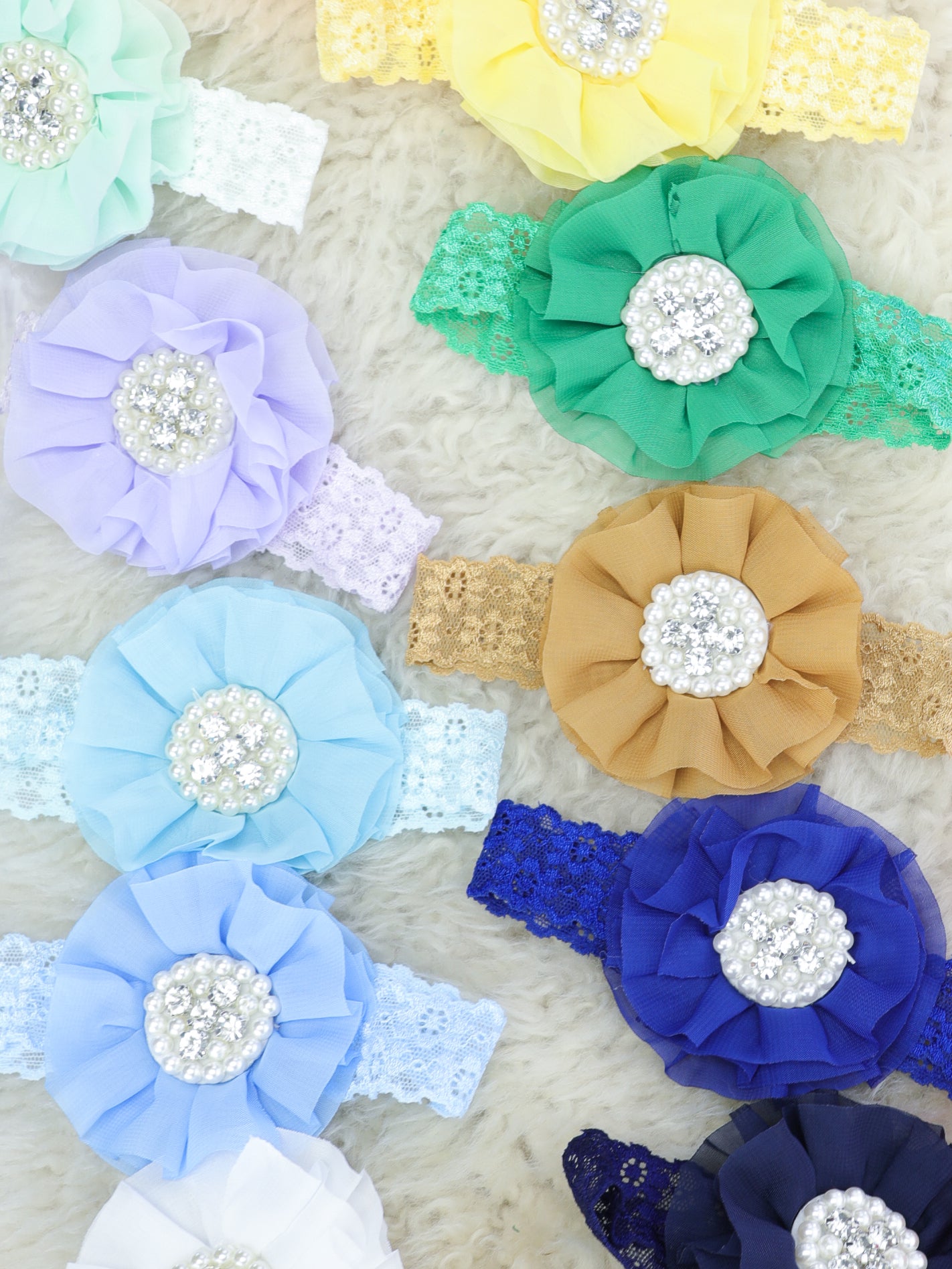 Chiffon Rhinestone & Pearls Headband - 21 Colors Available