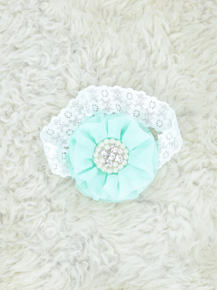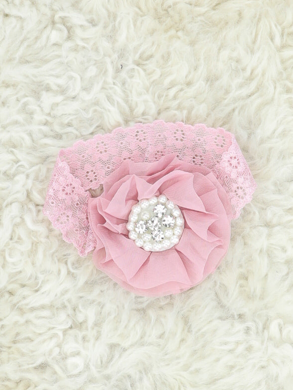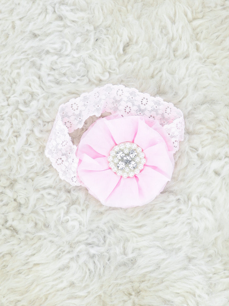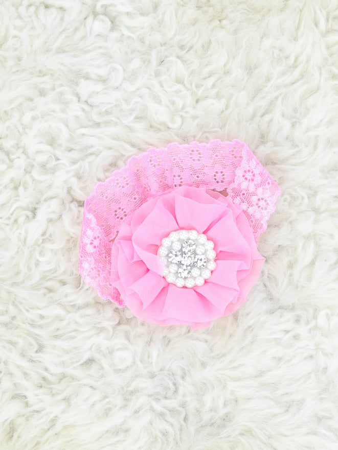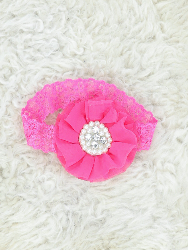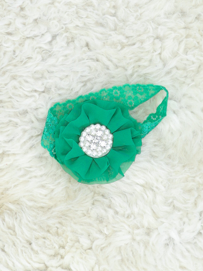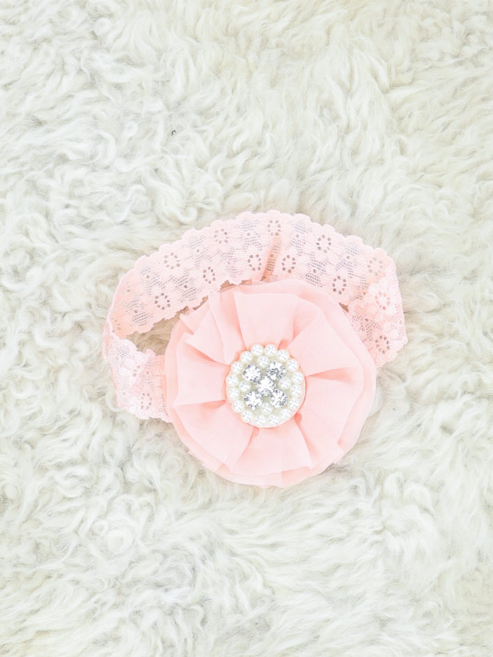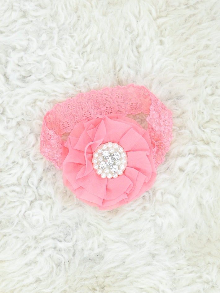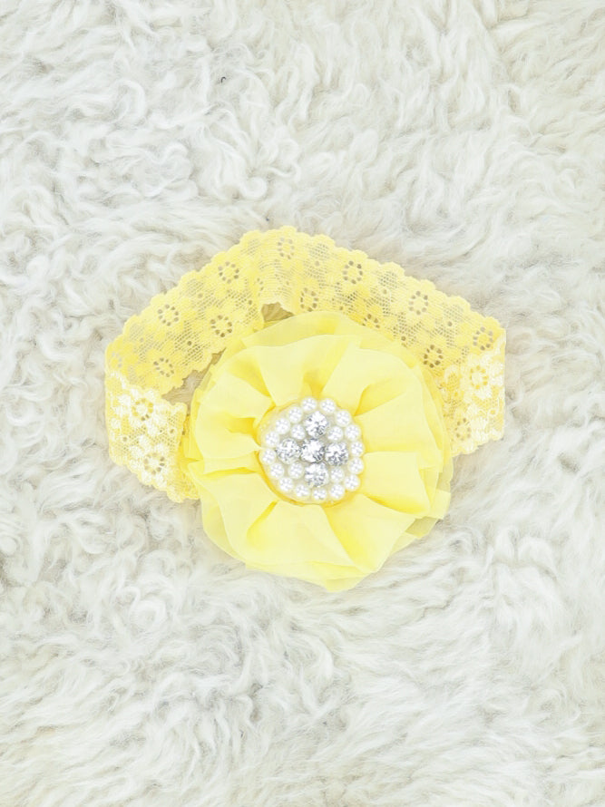Chiffon Rhinestone & Pearls Headband - 21 Colors Available