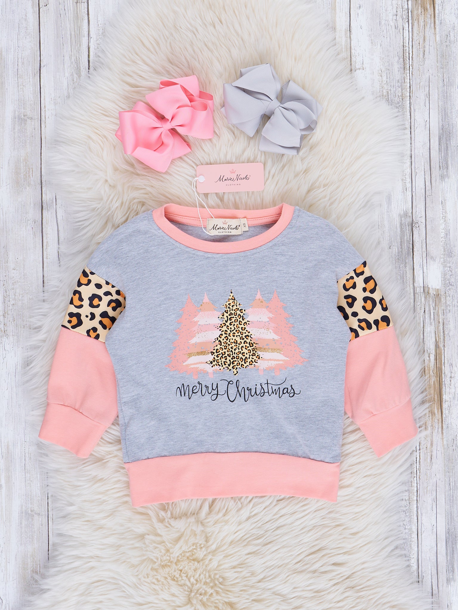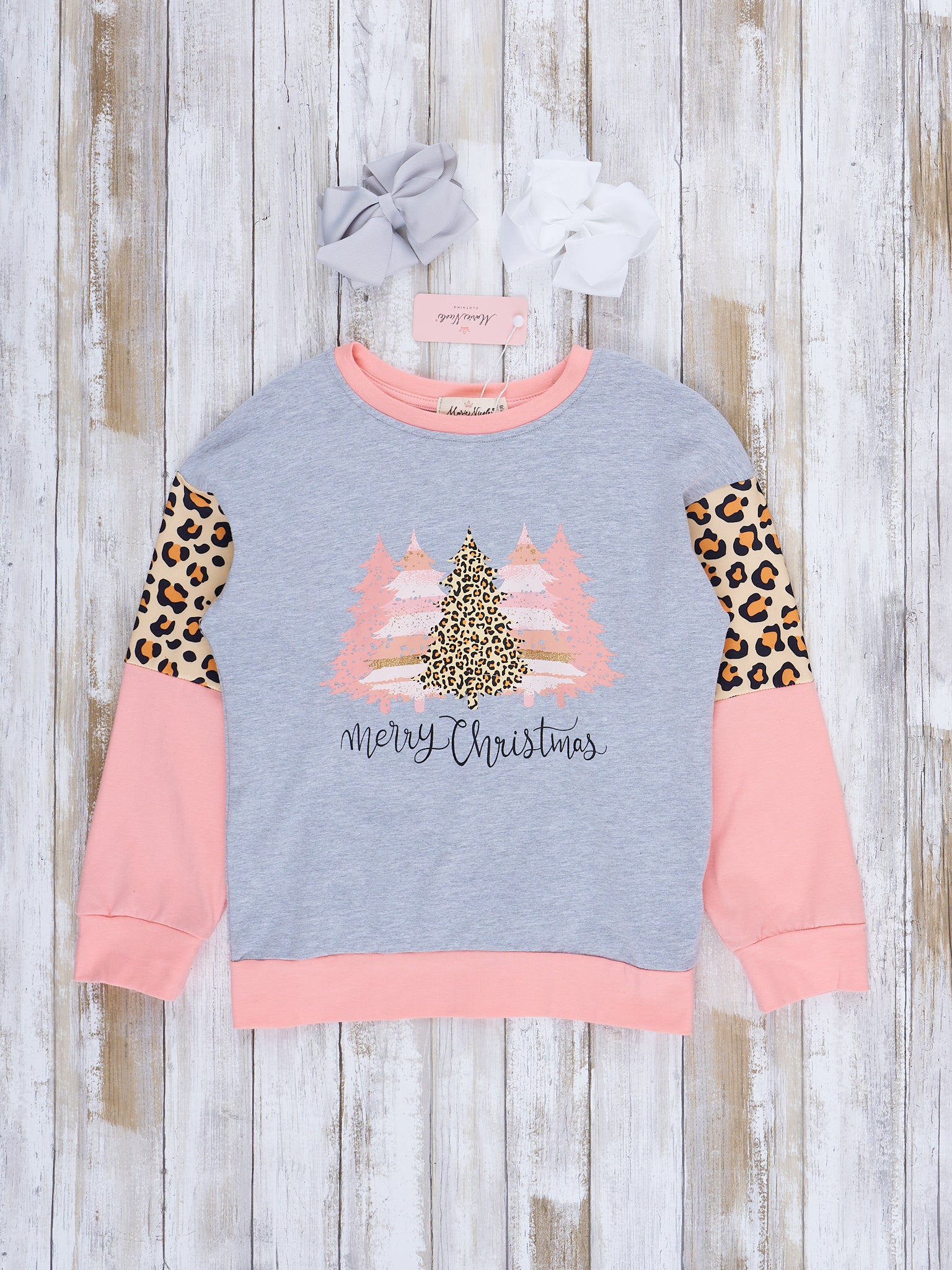 Mom & Me Coral & Leopard Christmas Crew Neck