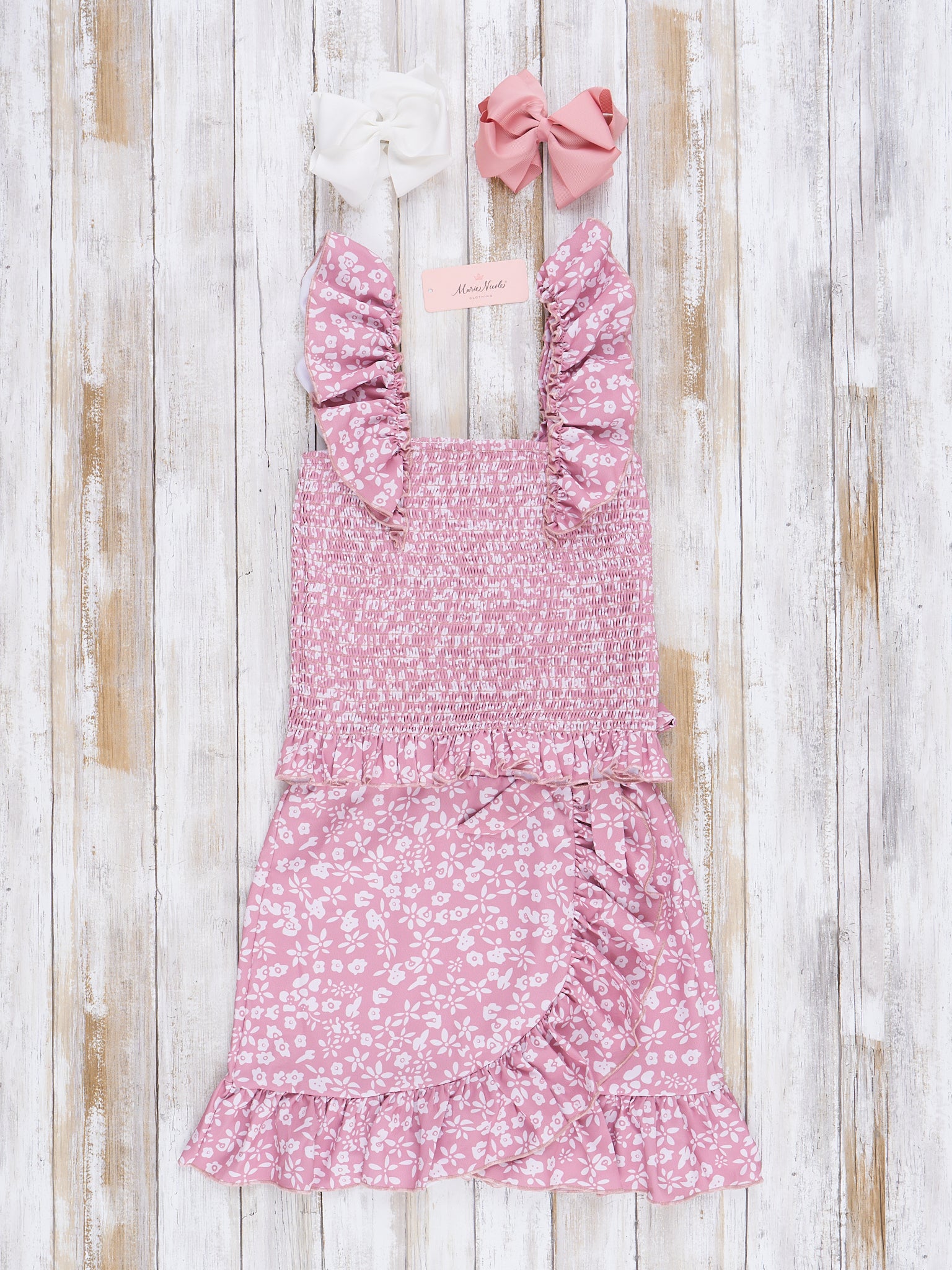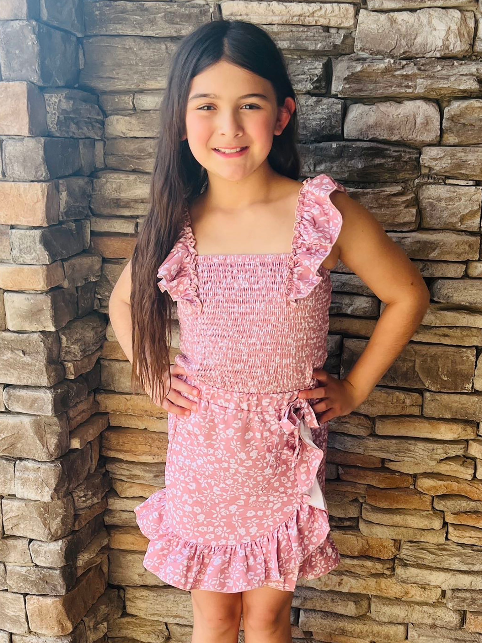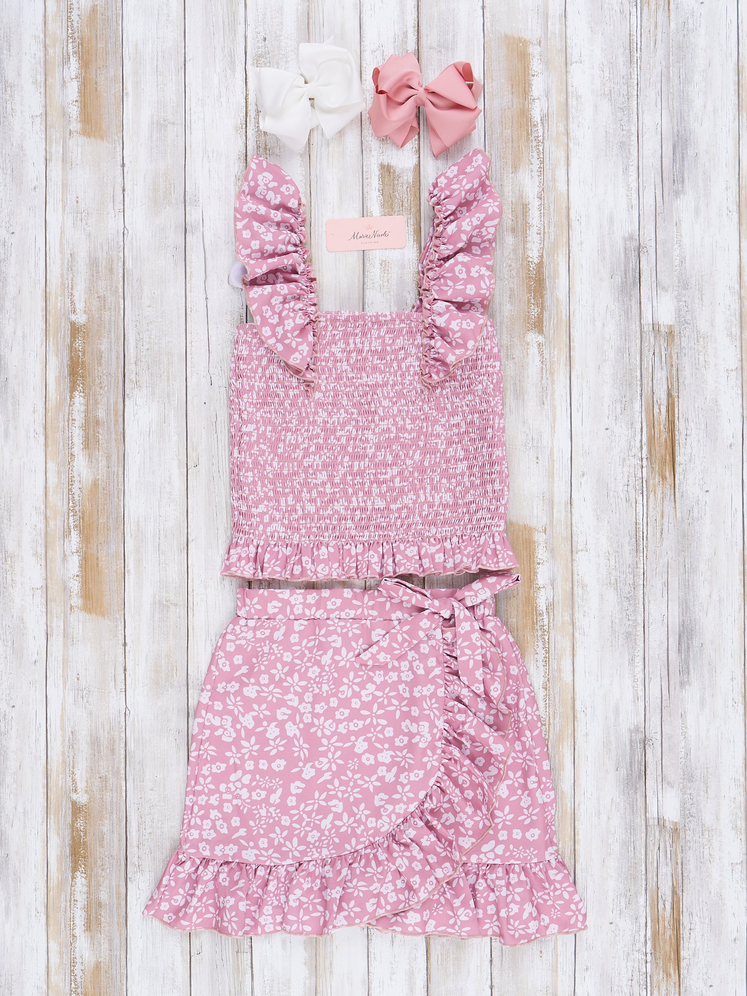 Pre-Teen Mauve Dainty Floral Ruffle Outfit