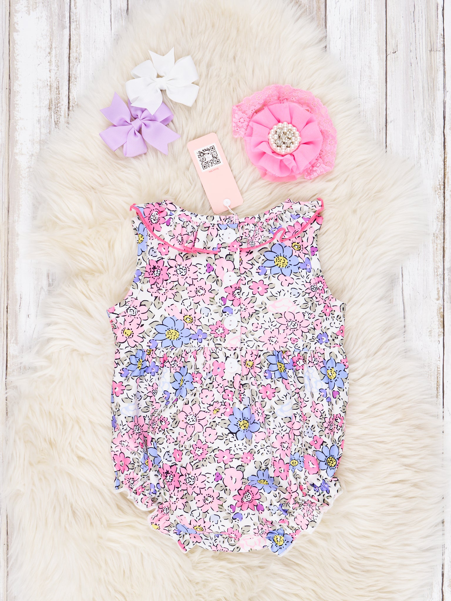 Smocked Pink Floral Ruffle Tank Romper