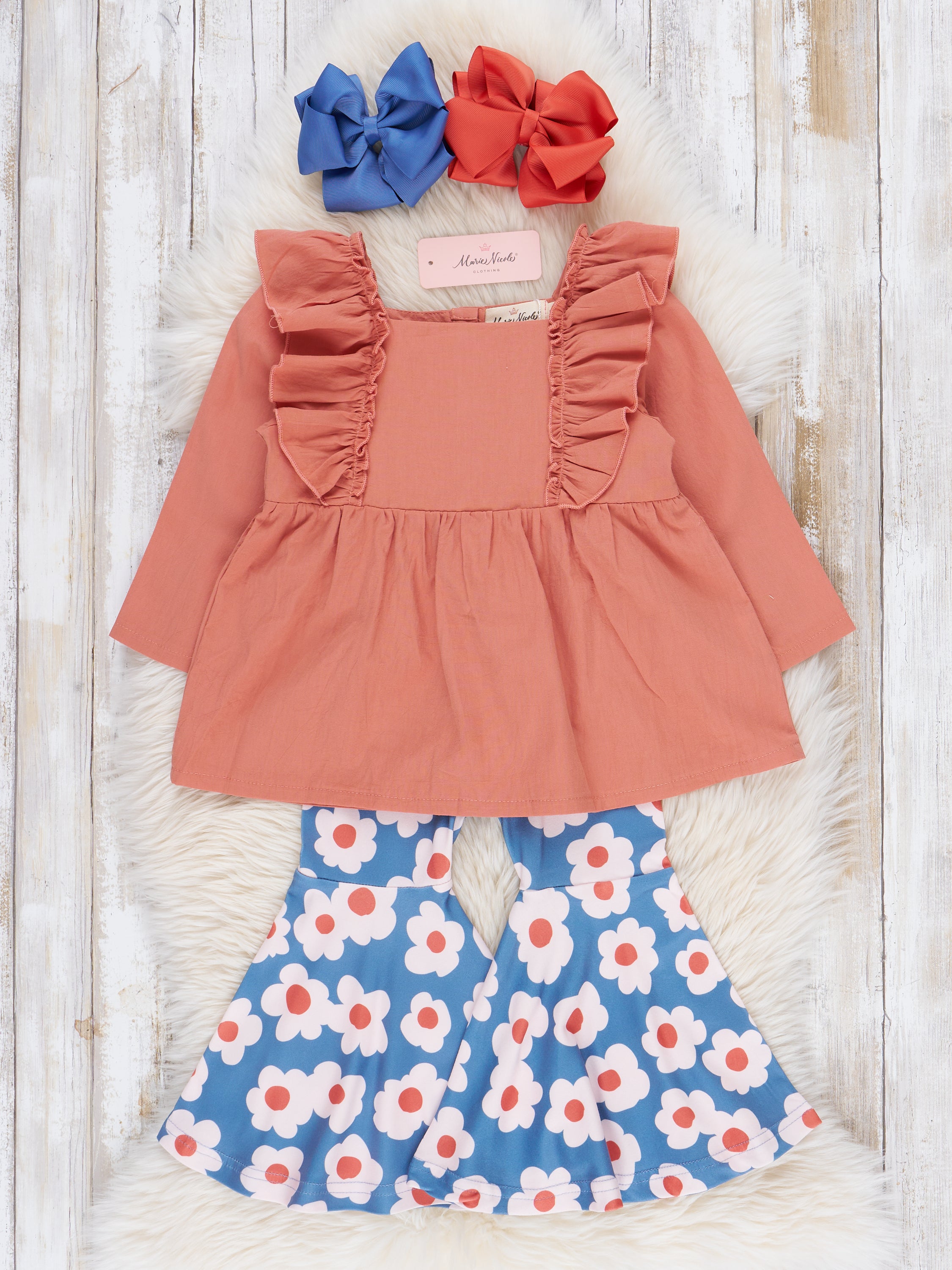 Soft Orange & Blue Daisy Bell Bottom Outfit