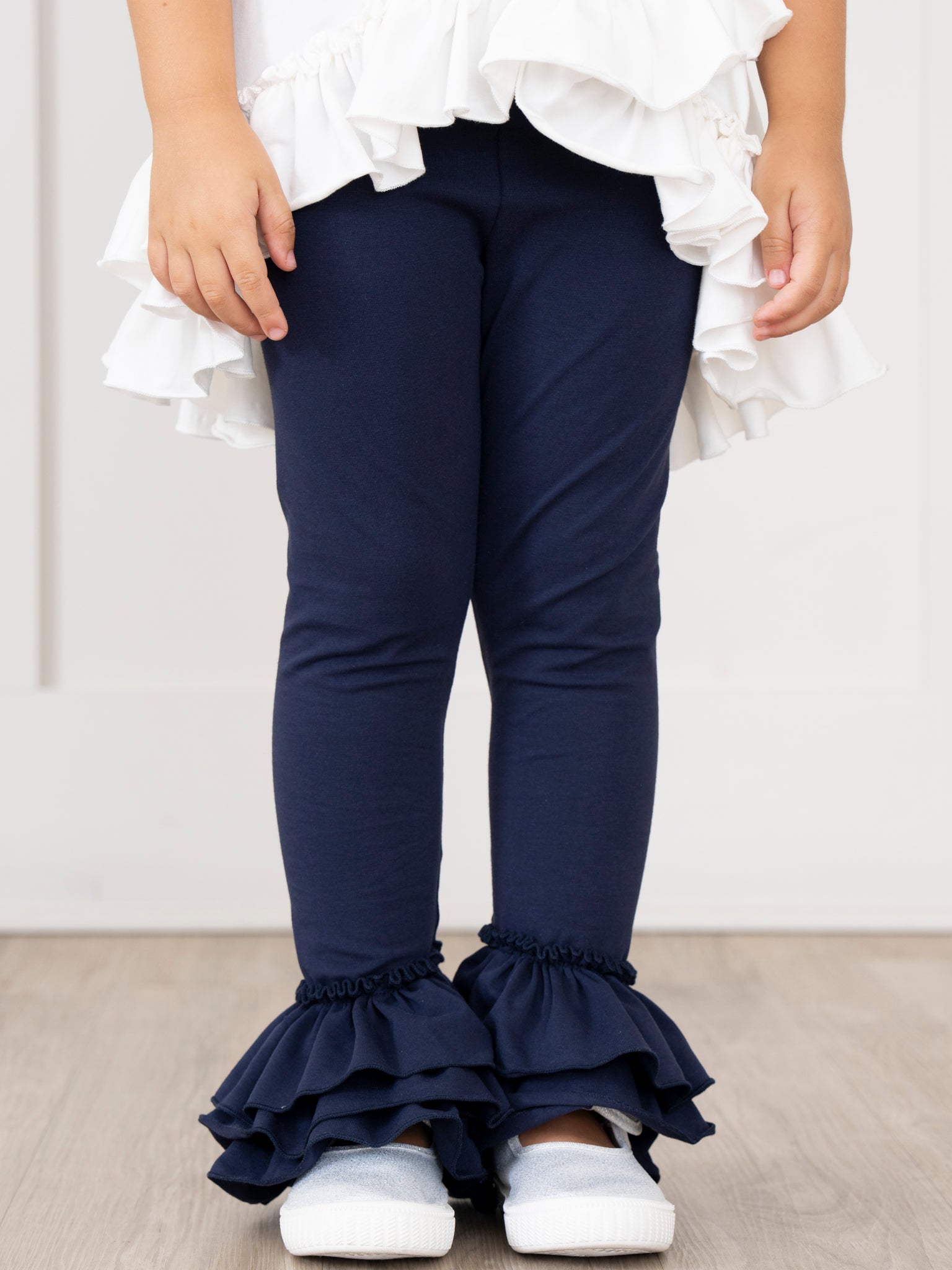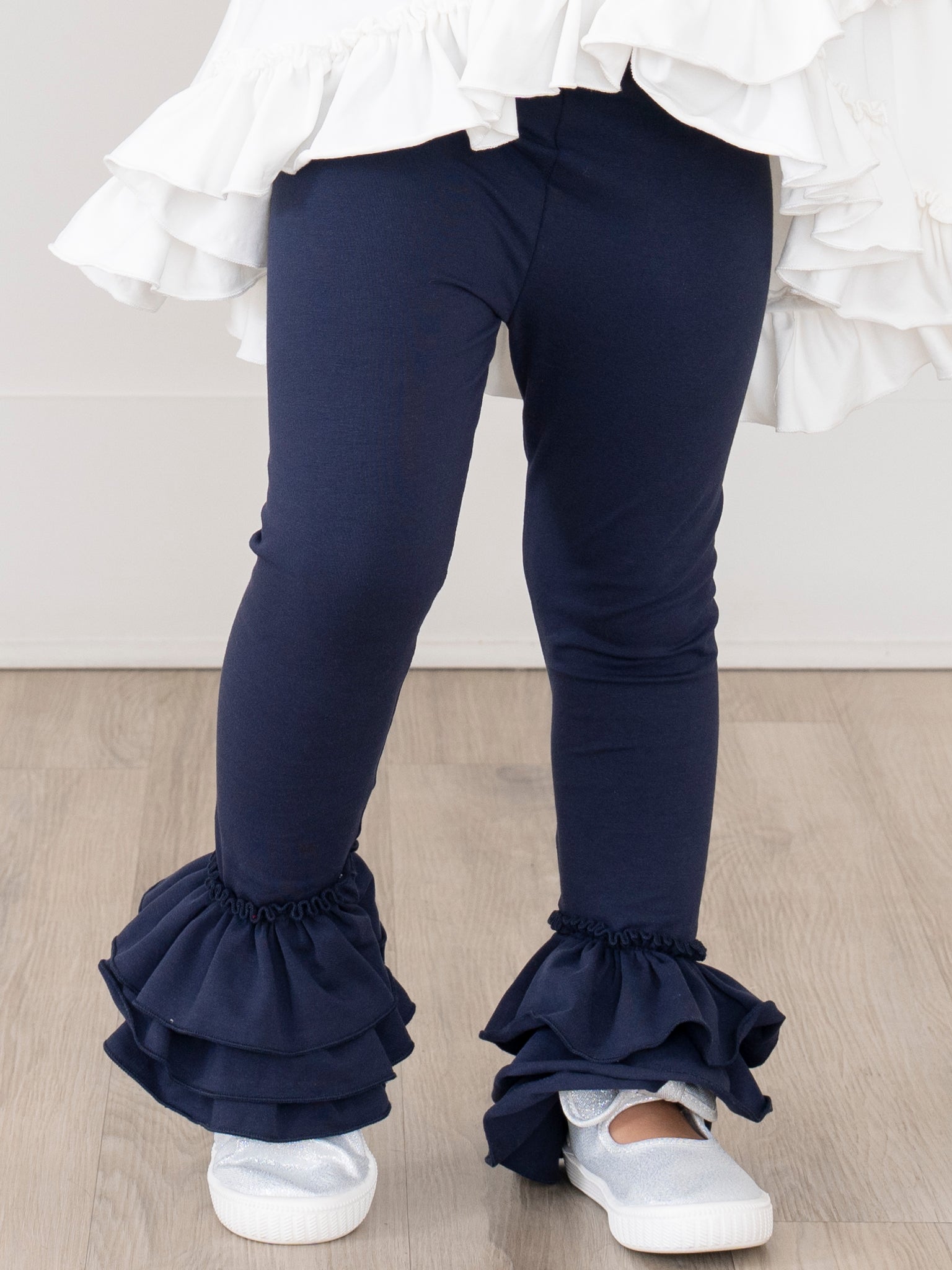 Cotton Bell Ruffle Leggings - Navy
