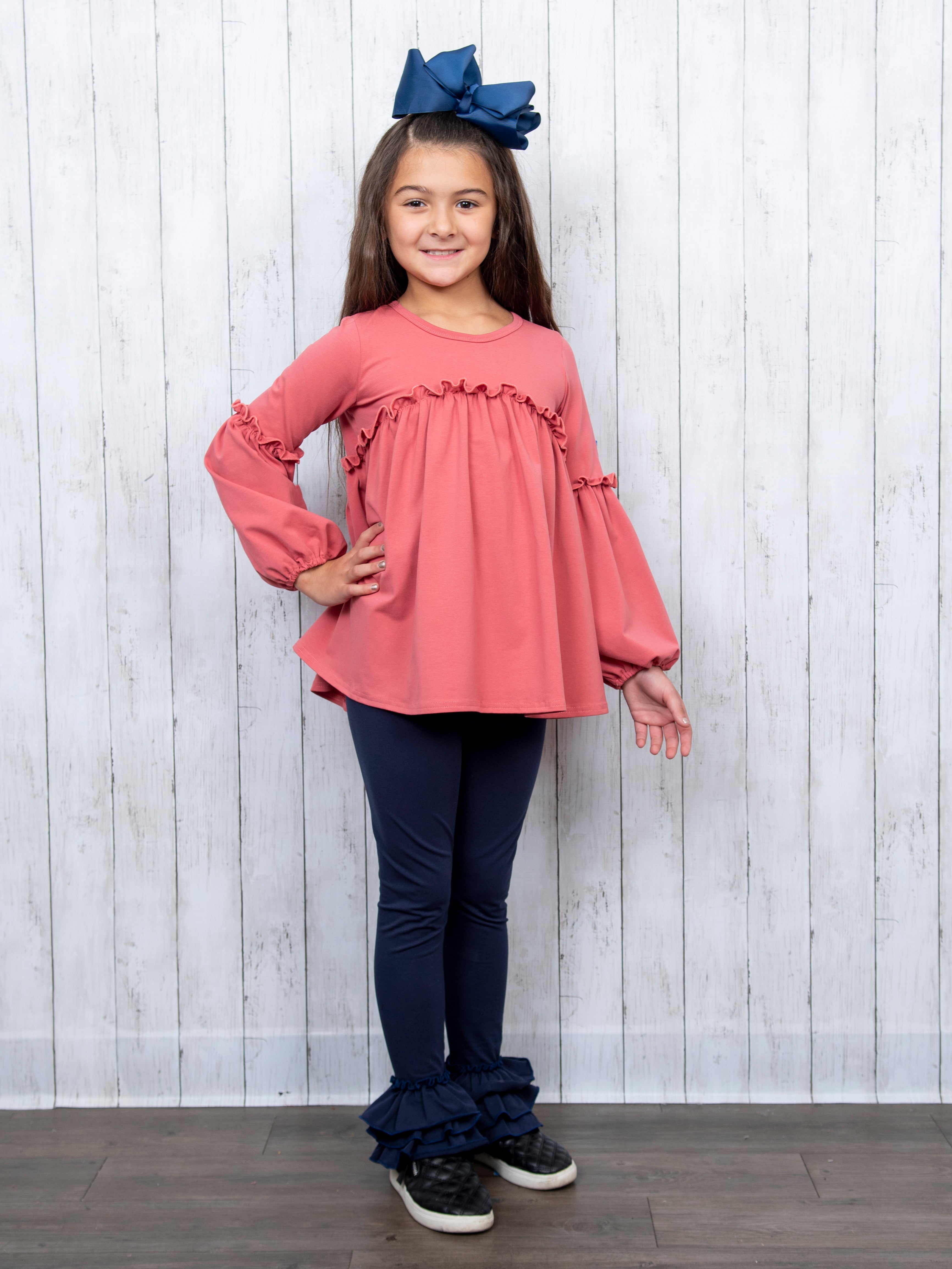 Cotton Bell Ruffle Leggings - Mauve Pink