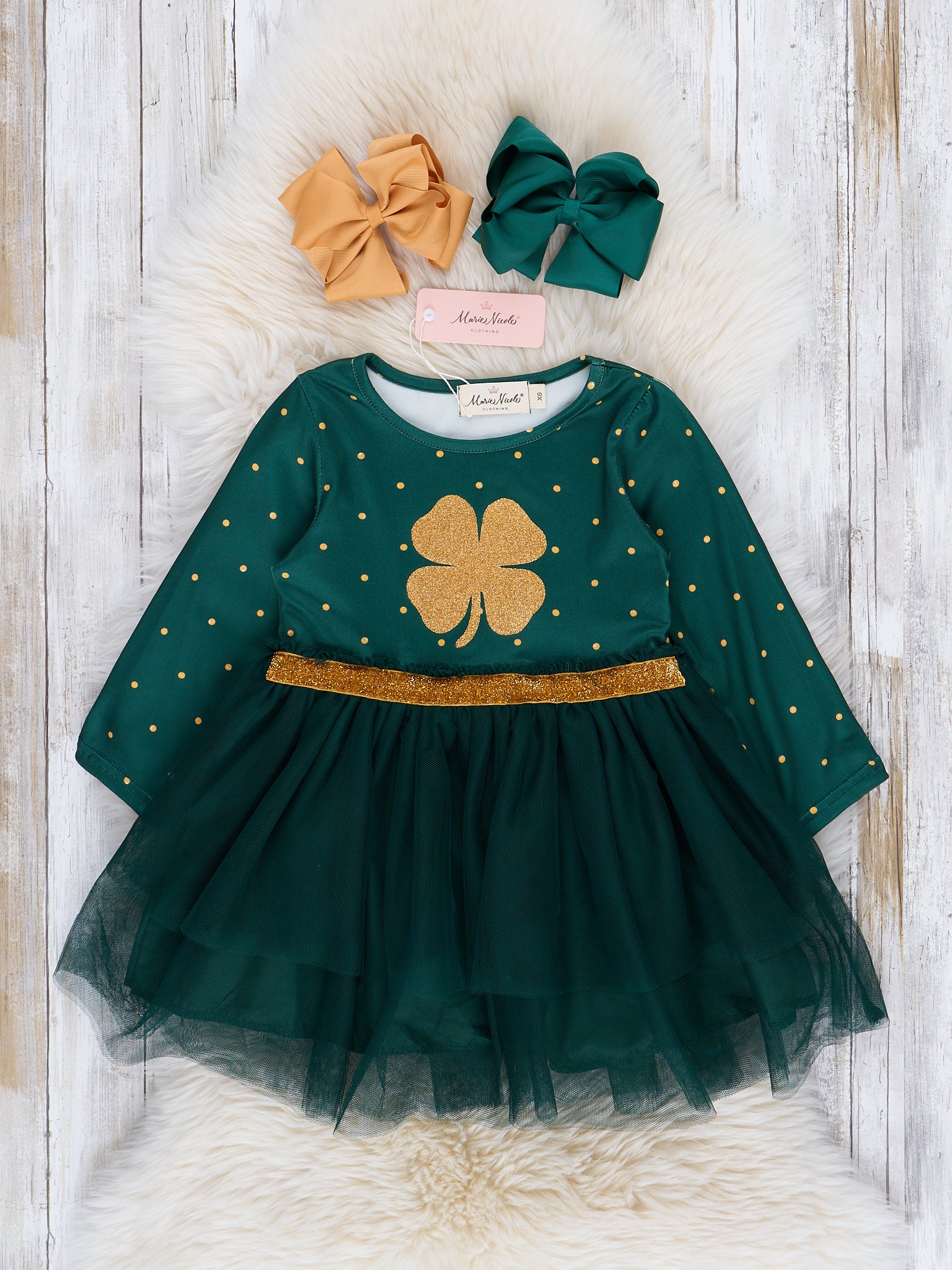 Emerald & Gold 4 Leaf Clover Tulle Dress