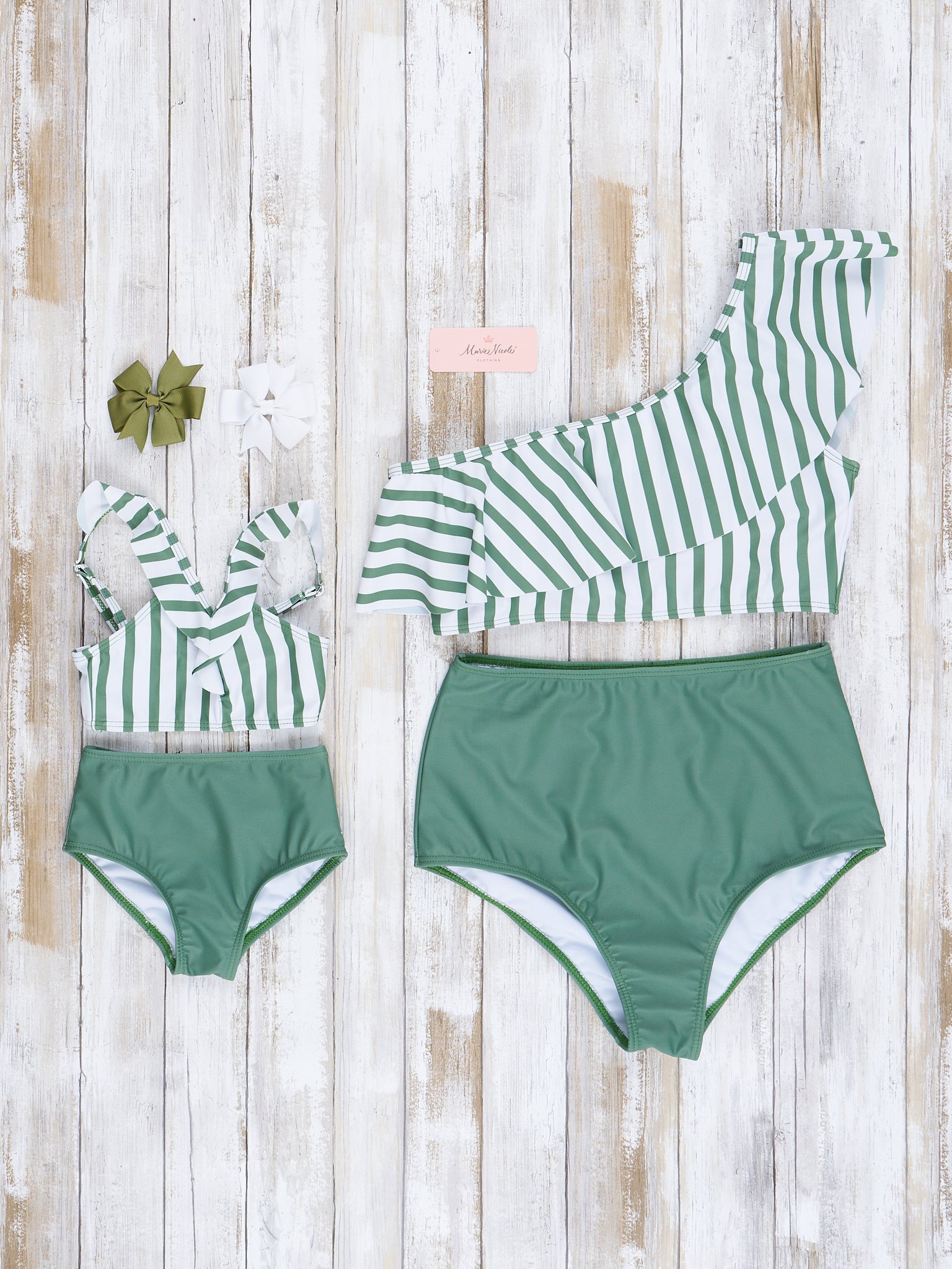 Family Green & White Stripes Swimsuit