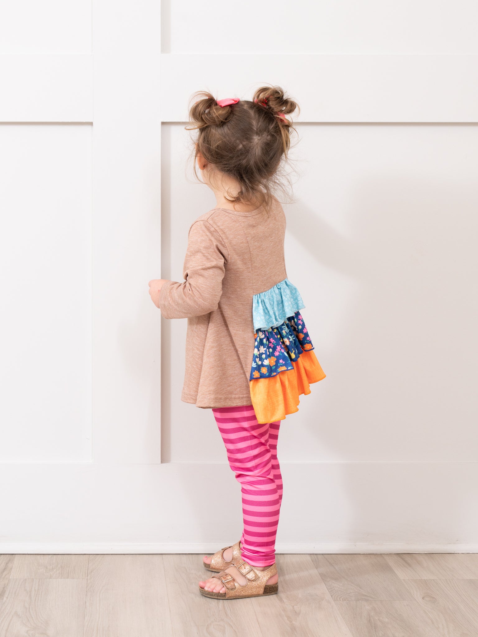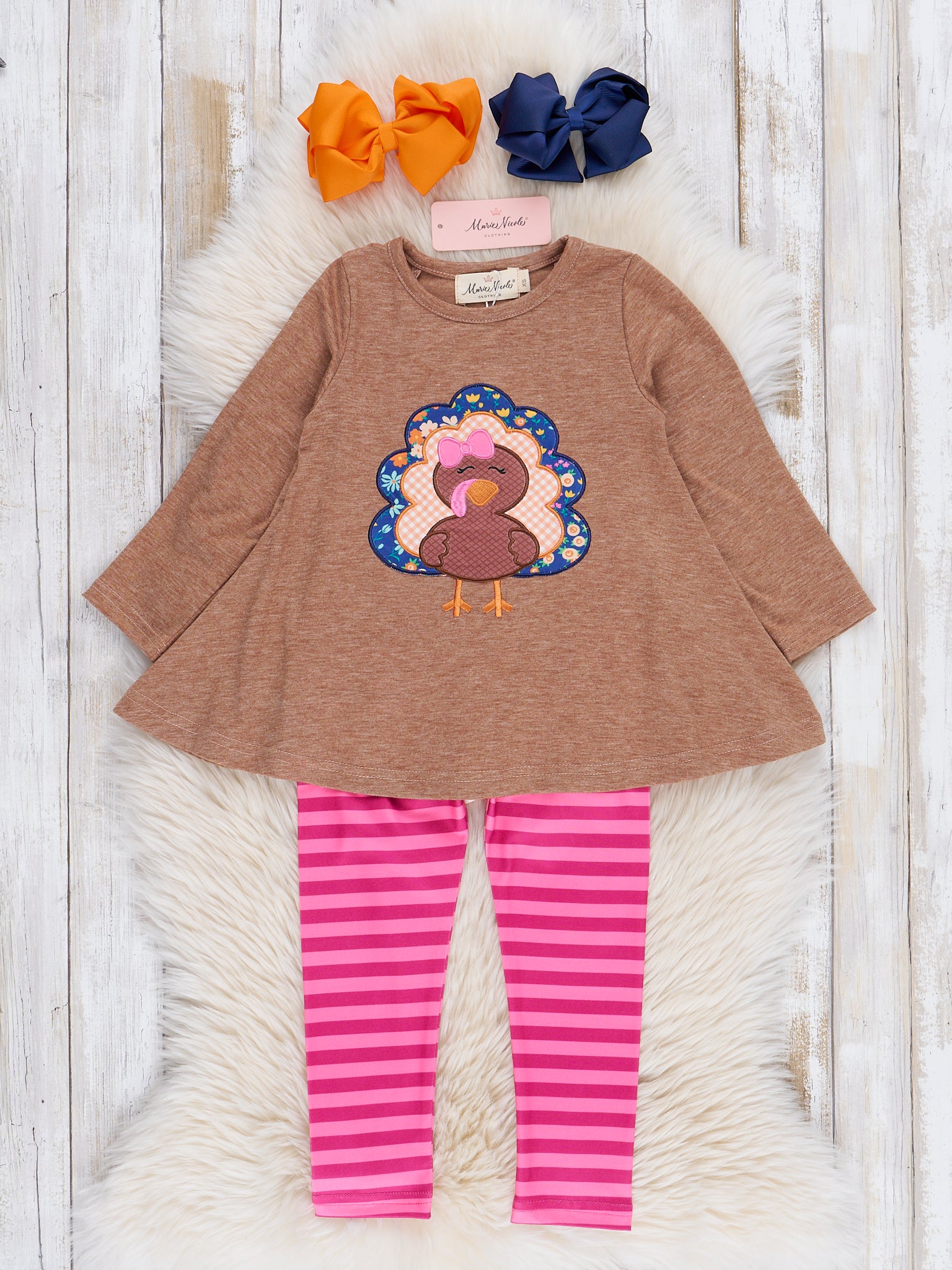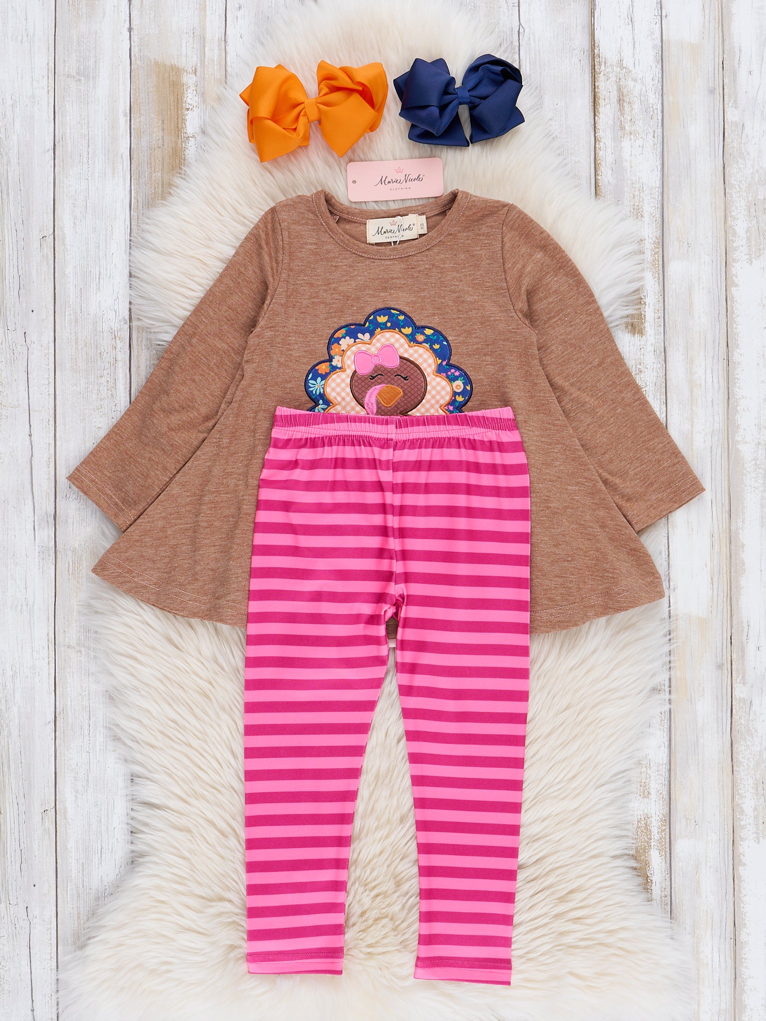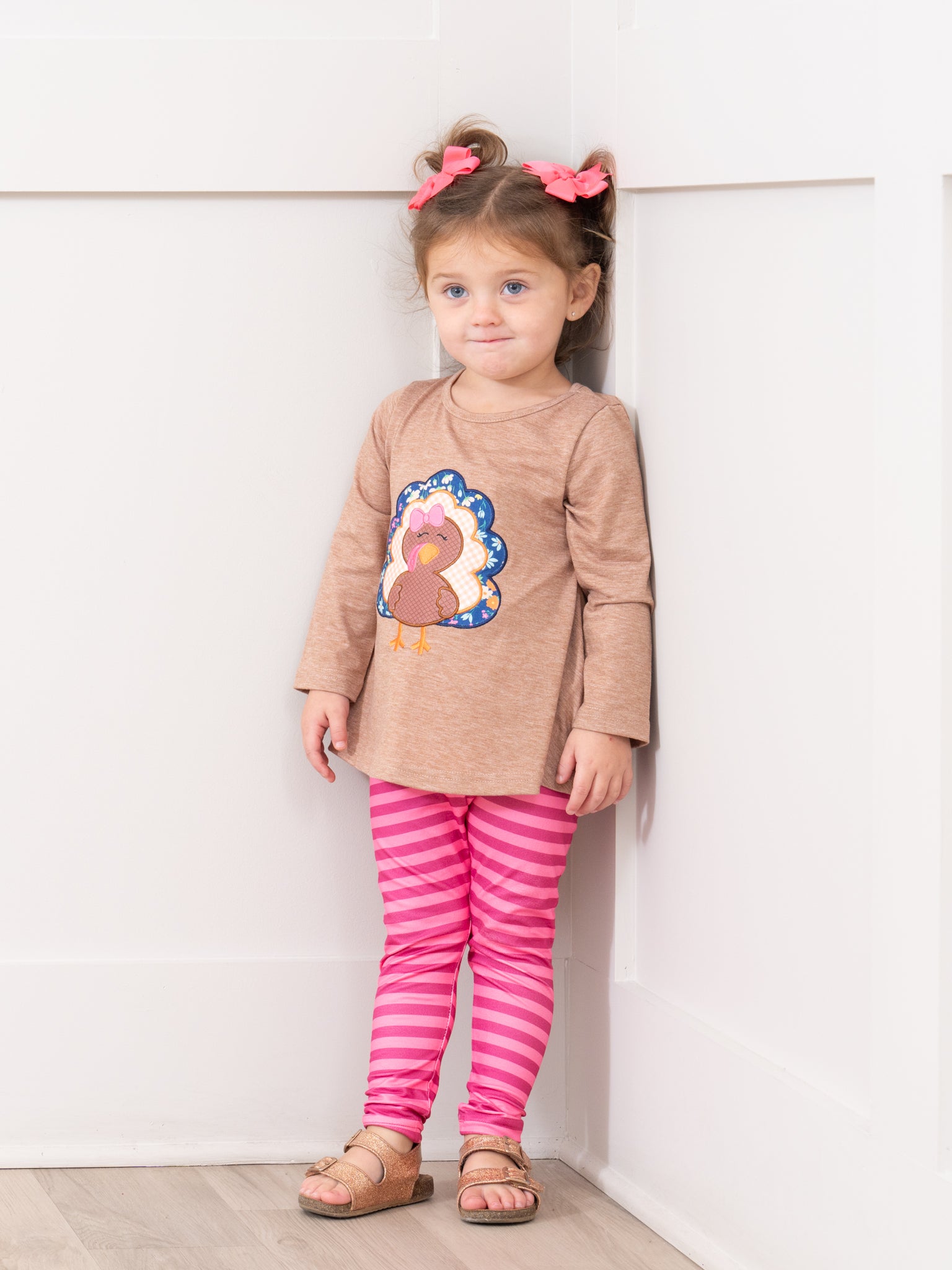 Tan & Pink Stripe Turkey Time Ruffle Romper