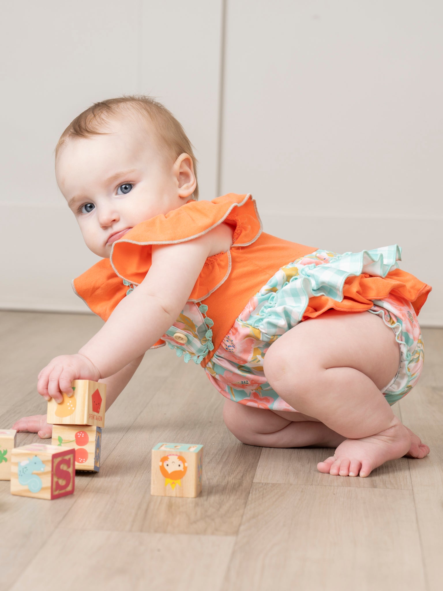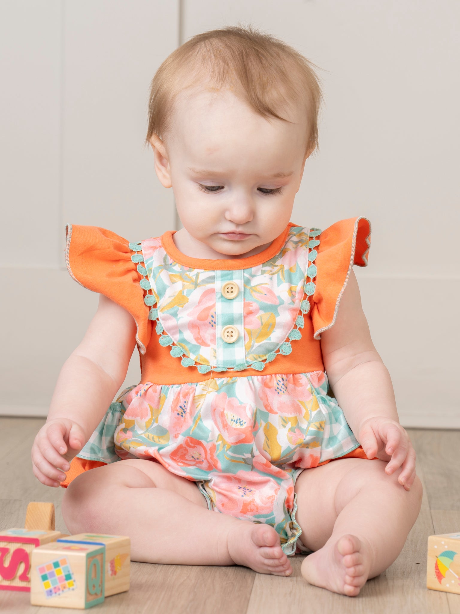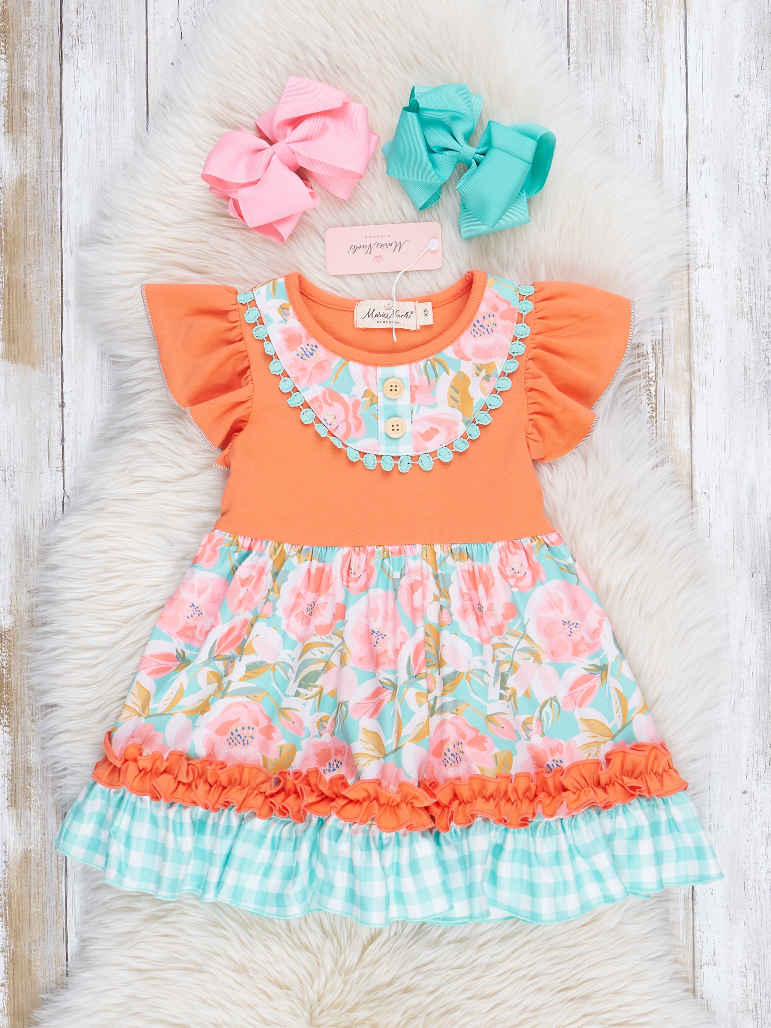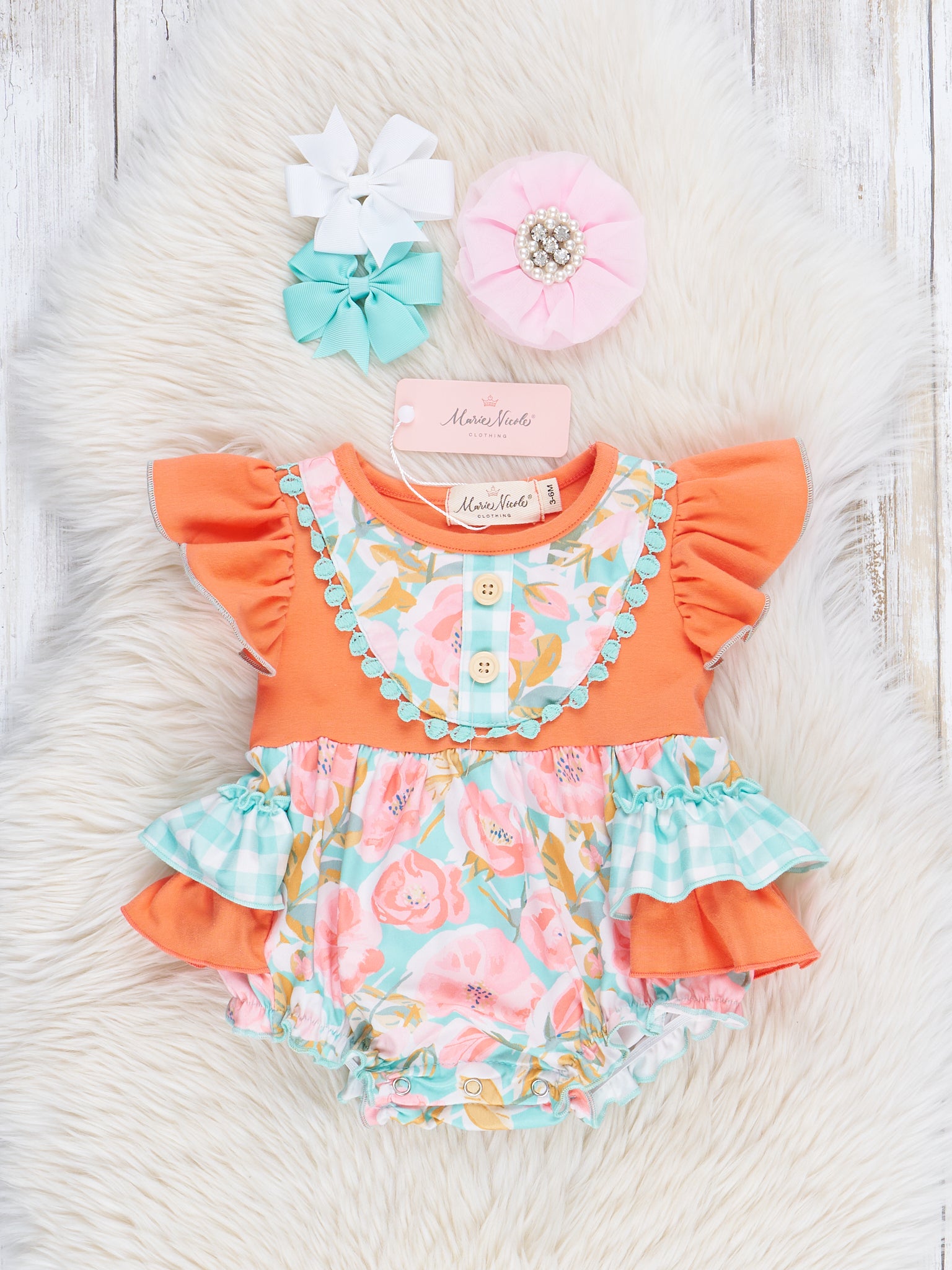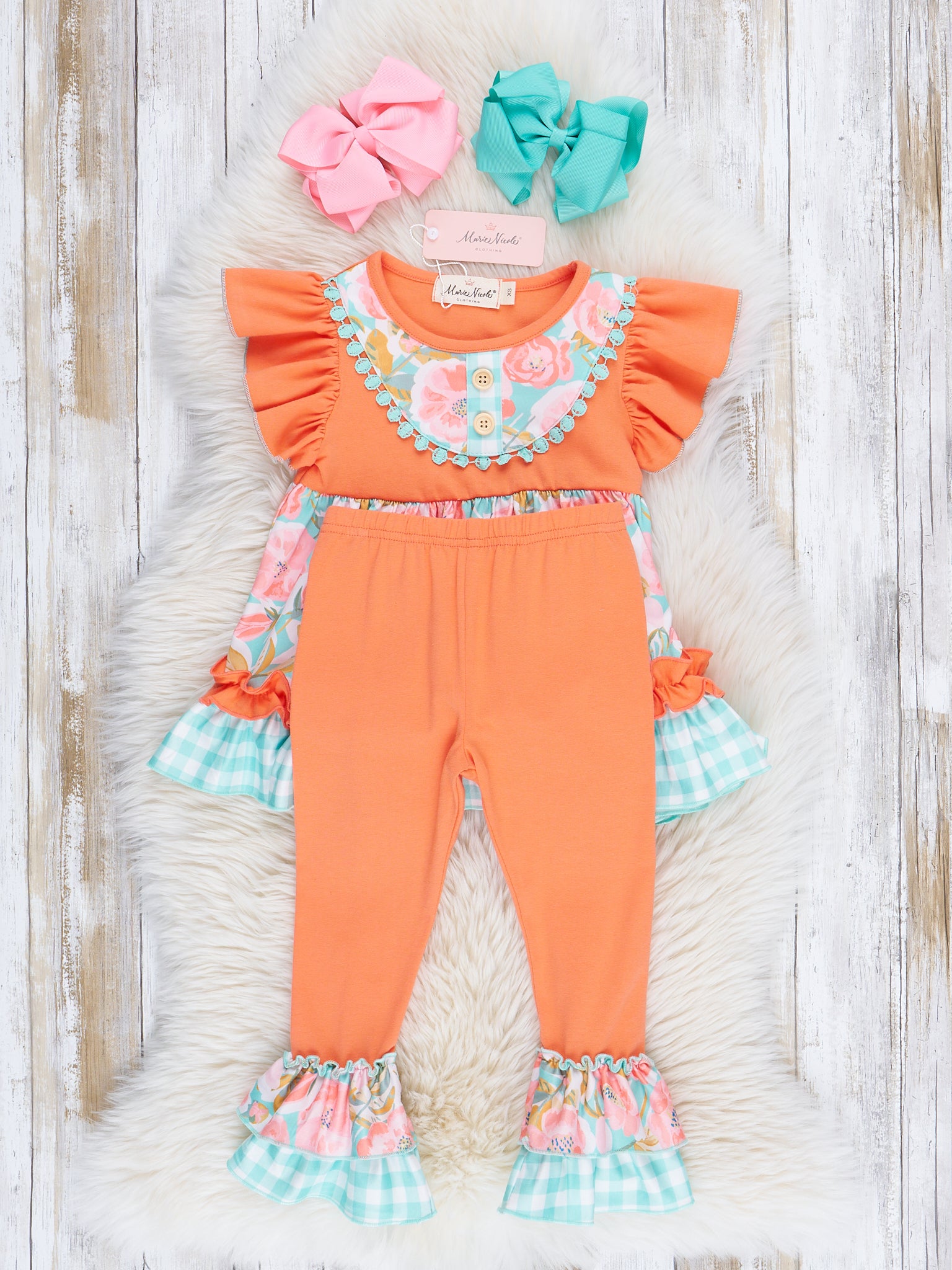 Teal & Orange Watercolor Florals Ruffle Outfit