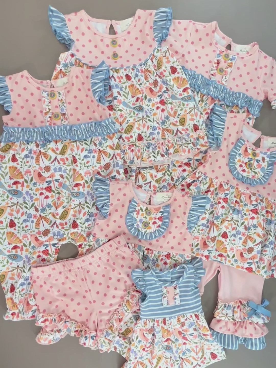 Springtime is just around the corner & this MNC exclusive collection is a MUST-HAVE this season! This high-quality collection has the softest material & is made to grow with your little one! This outfit features a tunic with our Tennessee Garden print, polka dots, striped ruffle trim, detailed decorative buttons, & a keyhole at the back of the neck. The capris feature layered ruffles, an elastic waistband, & bow details at the ankles.
