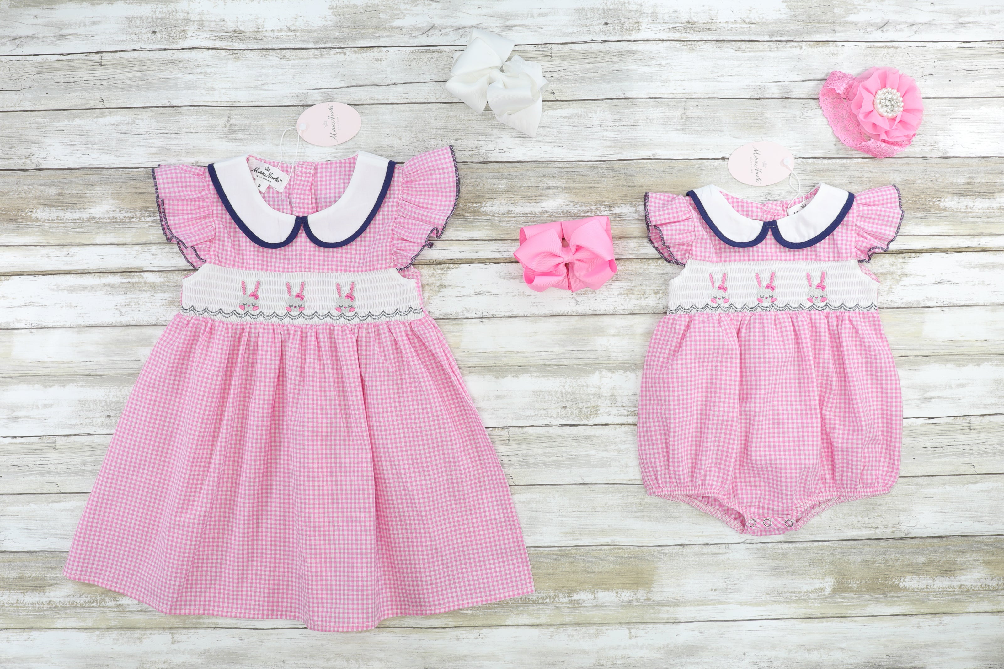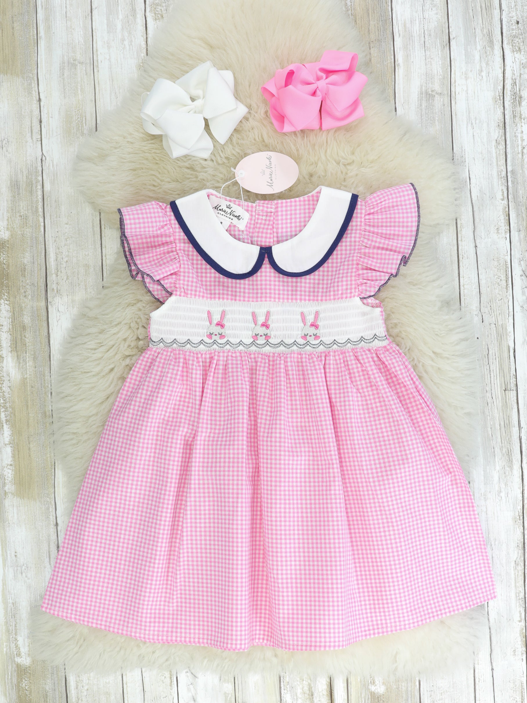 Three Easter Bunny Smocked Ruffle Dress