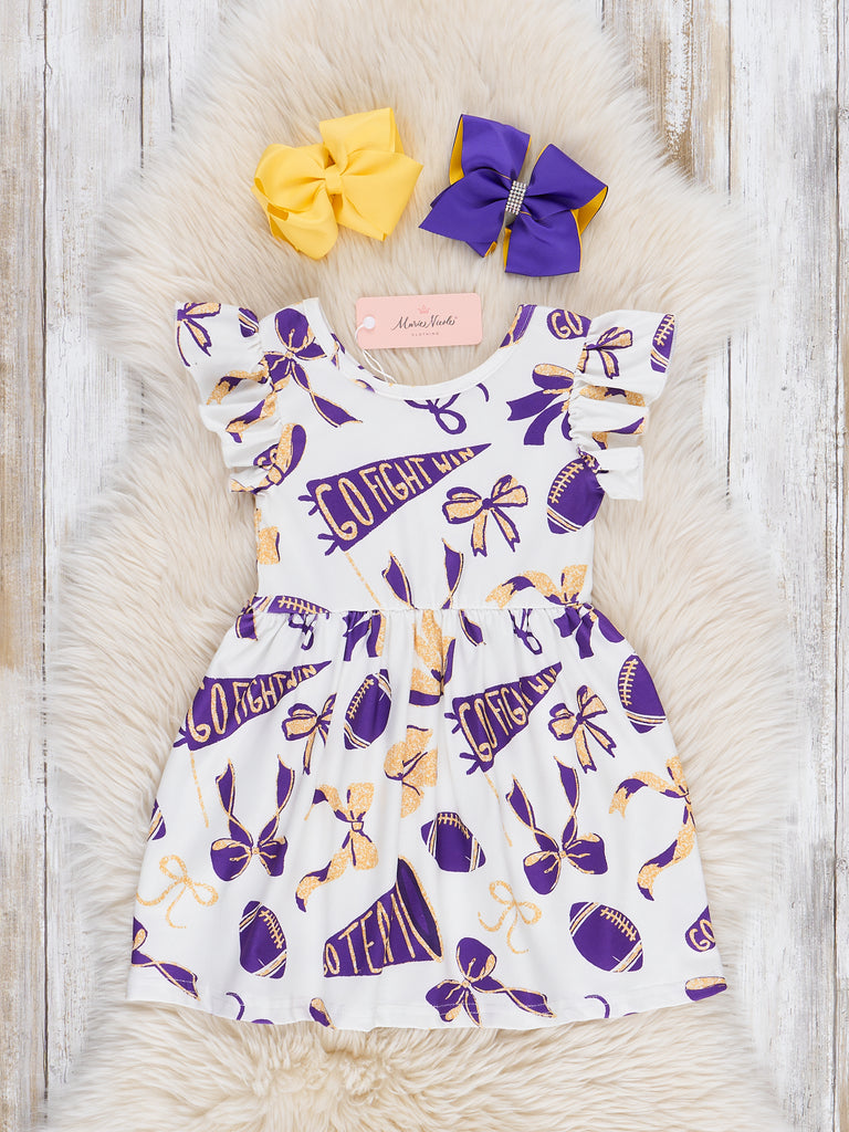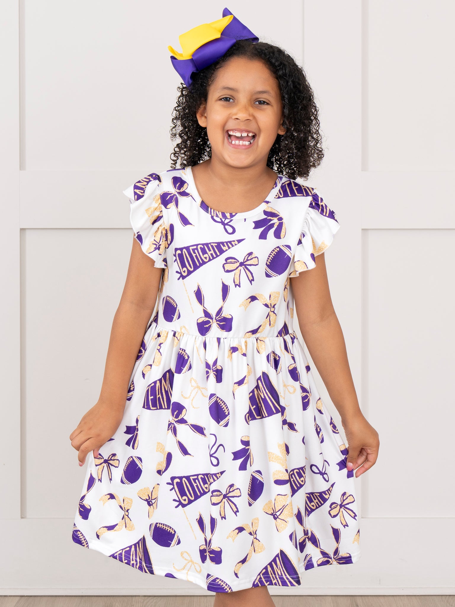 The Go Team Flutter Swing Dress – Louisiana is the perfect blend of playful style and team spirit. Featuring vibrant Louisiana-inspired colors and a bold “Go Team” graphic, this dress from Marie Nicole Clothing is designed for twirling, cheering, and showing off that Bayou State pride. With sweet flutter sleeves and a flowy, comfortable fit, it’s ideal for game days, tailgates, or sunny adventures with Southern flair.