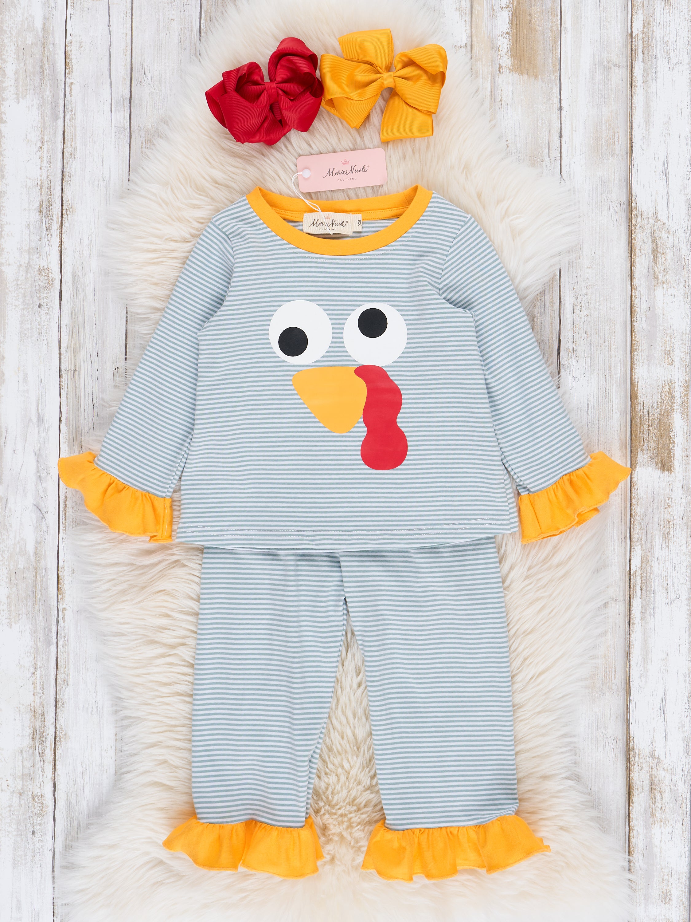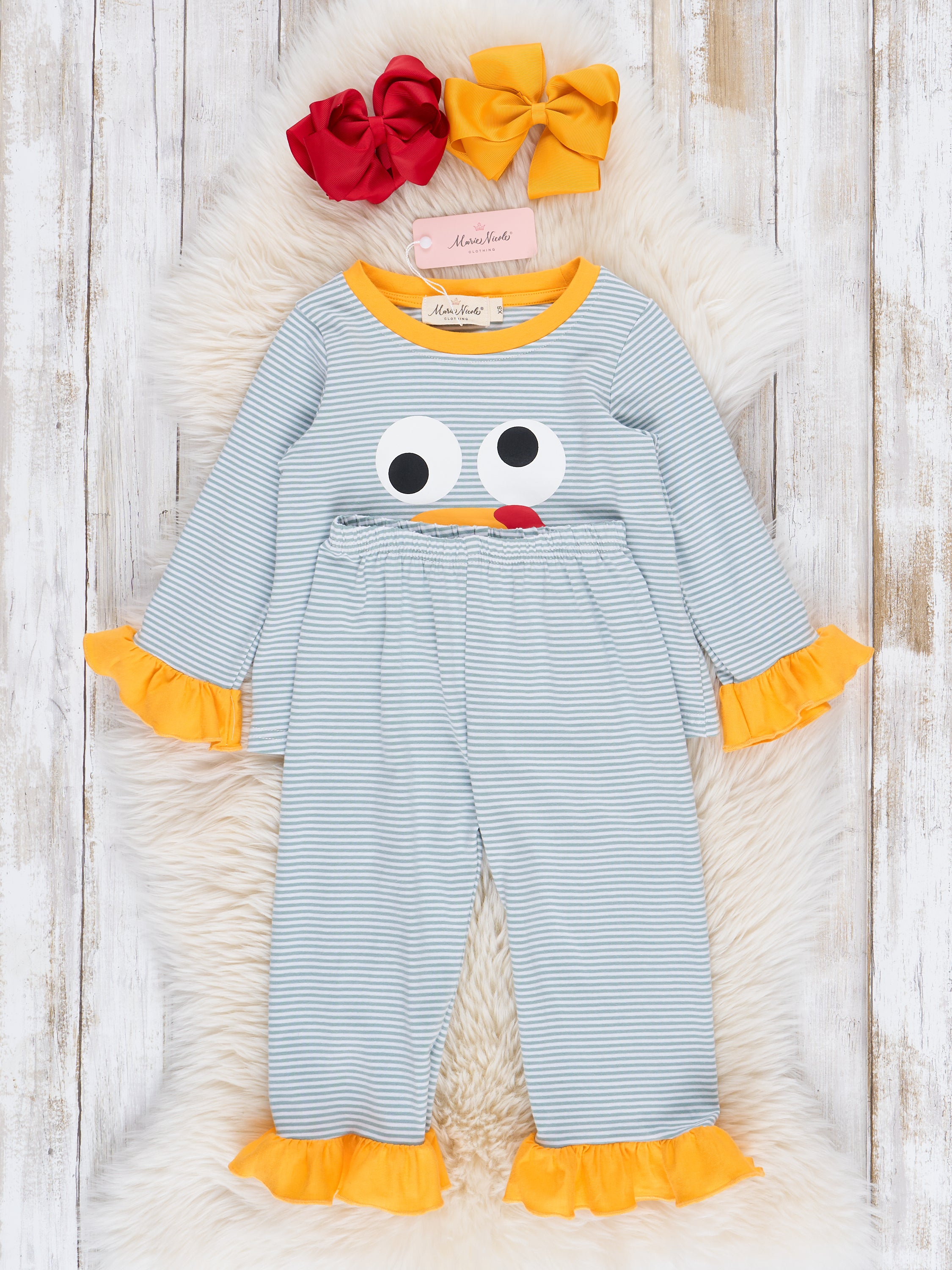 Grey Striped Turkey Ruffle Pajamas