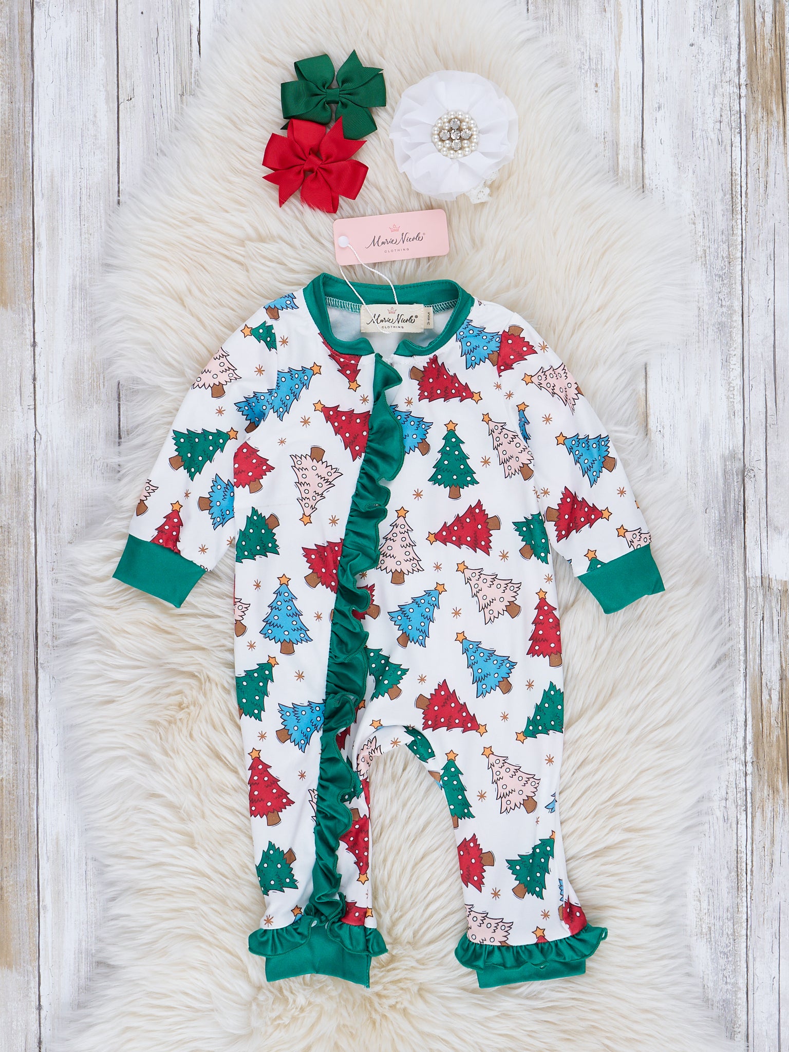 Whimsy Trees & Bright Green Ruffle Sleeper Pajamas