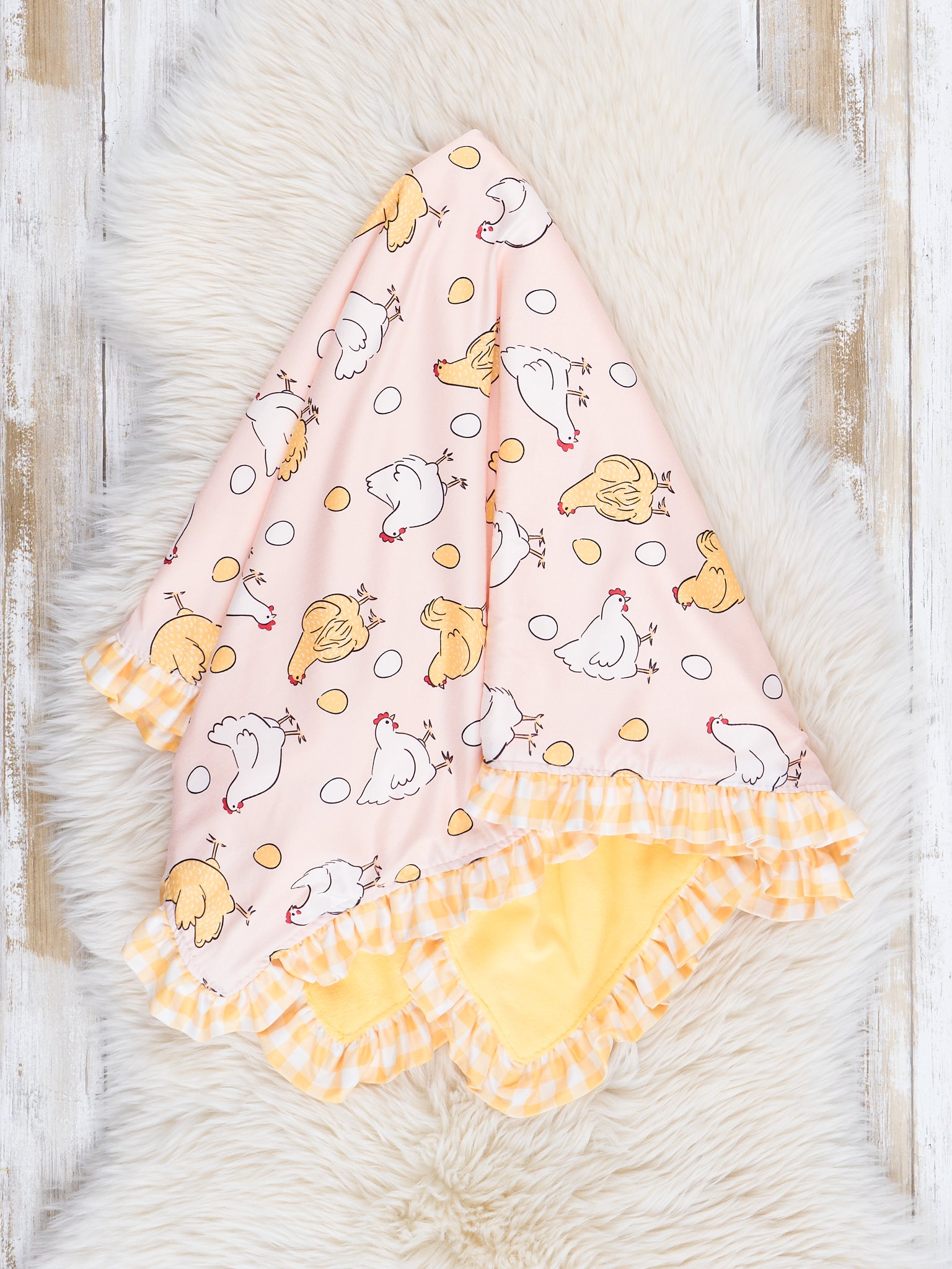 Blush & Yellow Gingham Chicken Ruffle Minky Blanket