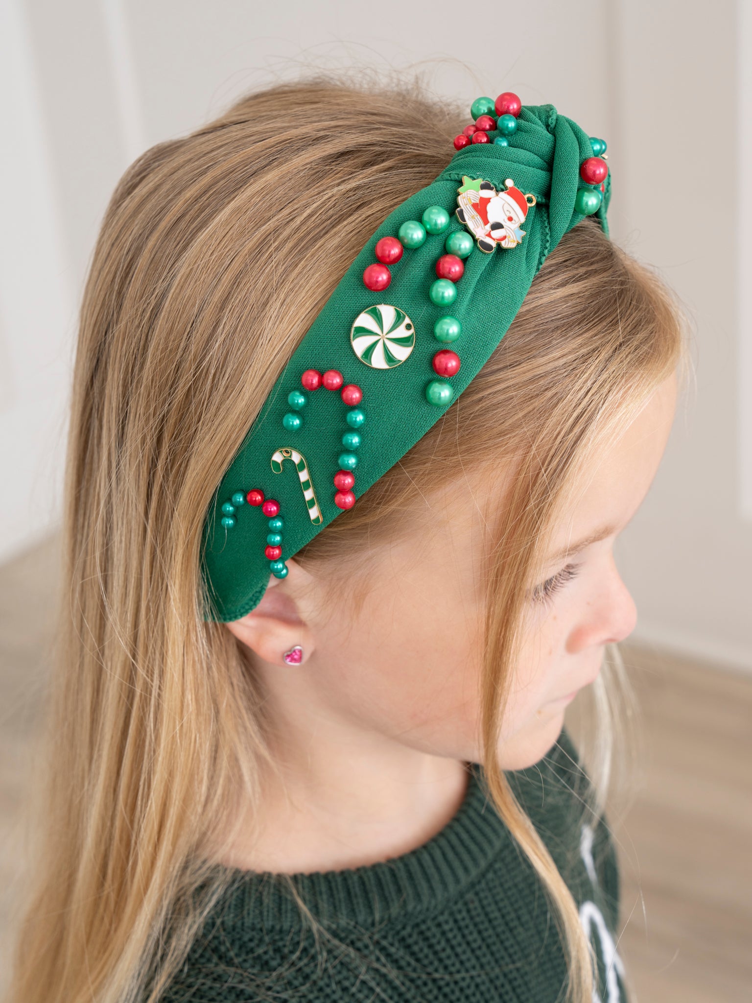 Bedazzle with the Christmas Candy Cane Glam Headband! This hair accessory by Marie Nicole Clothing features beaded artwork, shaped into candy canes. It's a stylish and fabulous addition to any outfit during the winter holiday season!