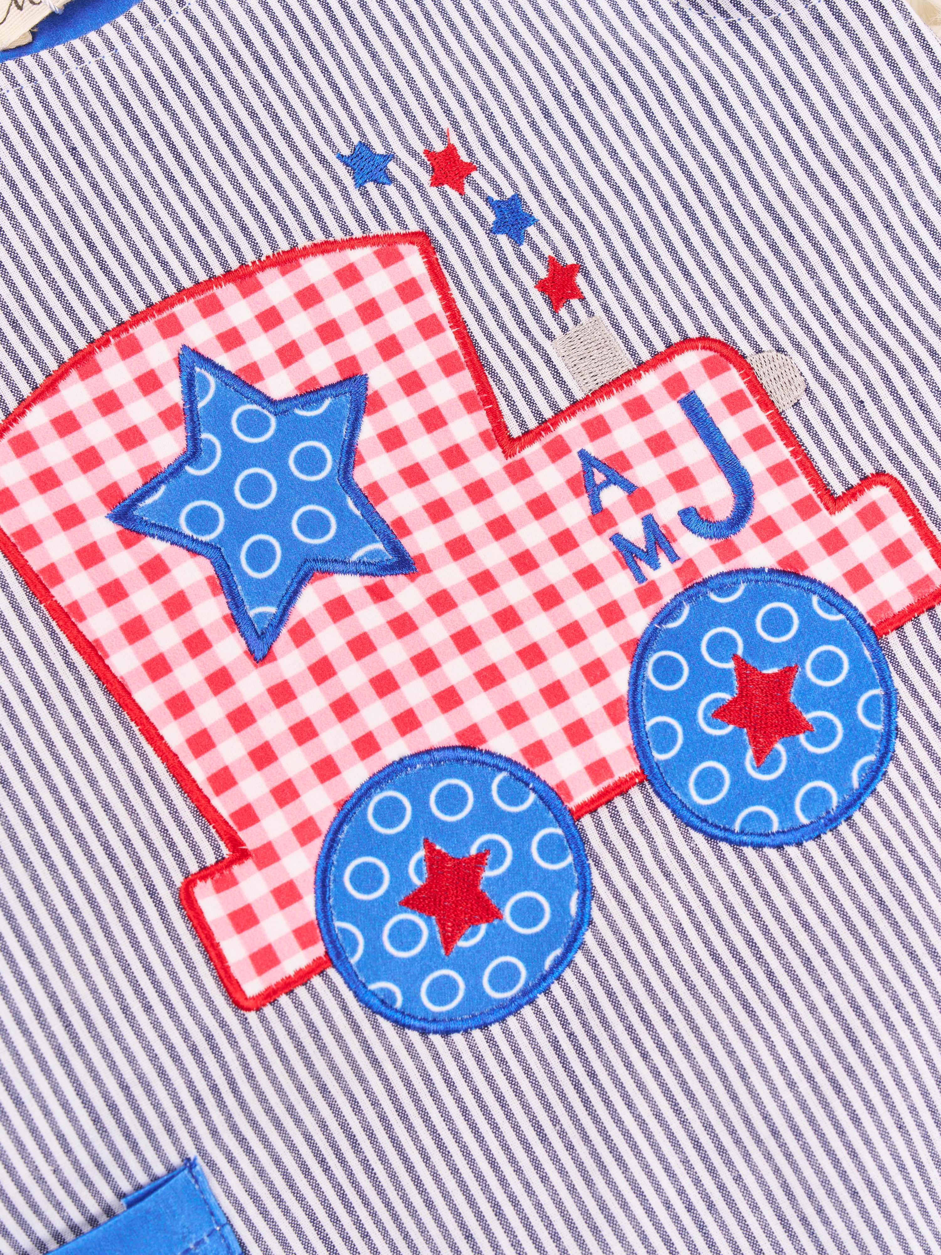Your little patriot can ride the rails in style with Patriotic Train Johnny! Featuring a fun, patriotic train appliqué, this train-loving tots' train set is sure to get them chugging down the track in no time. All aboard!
