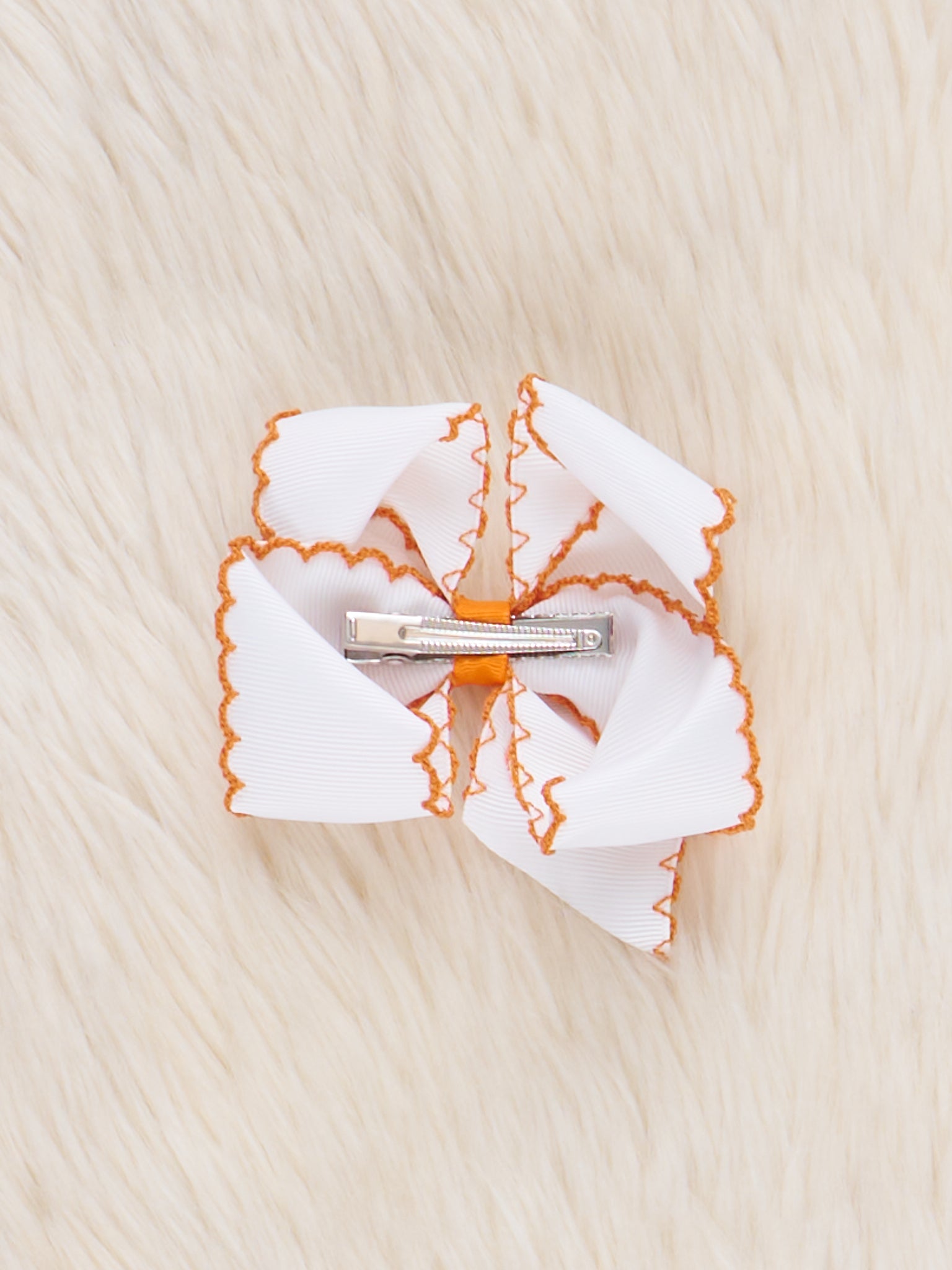 The Pick of the Patch Bow is a festive and charming accessory featuring a cute embroidered jack-o'-lantern that captures the spirit of Halloween. This bow from Marie Nicole Clothing adds a festive, handcrafted touch to any outfit. Perfect for pumpkin patch visits, family photos, and picture-perfect seasonal moments.