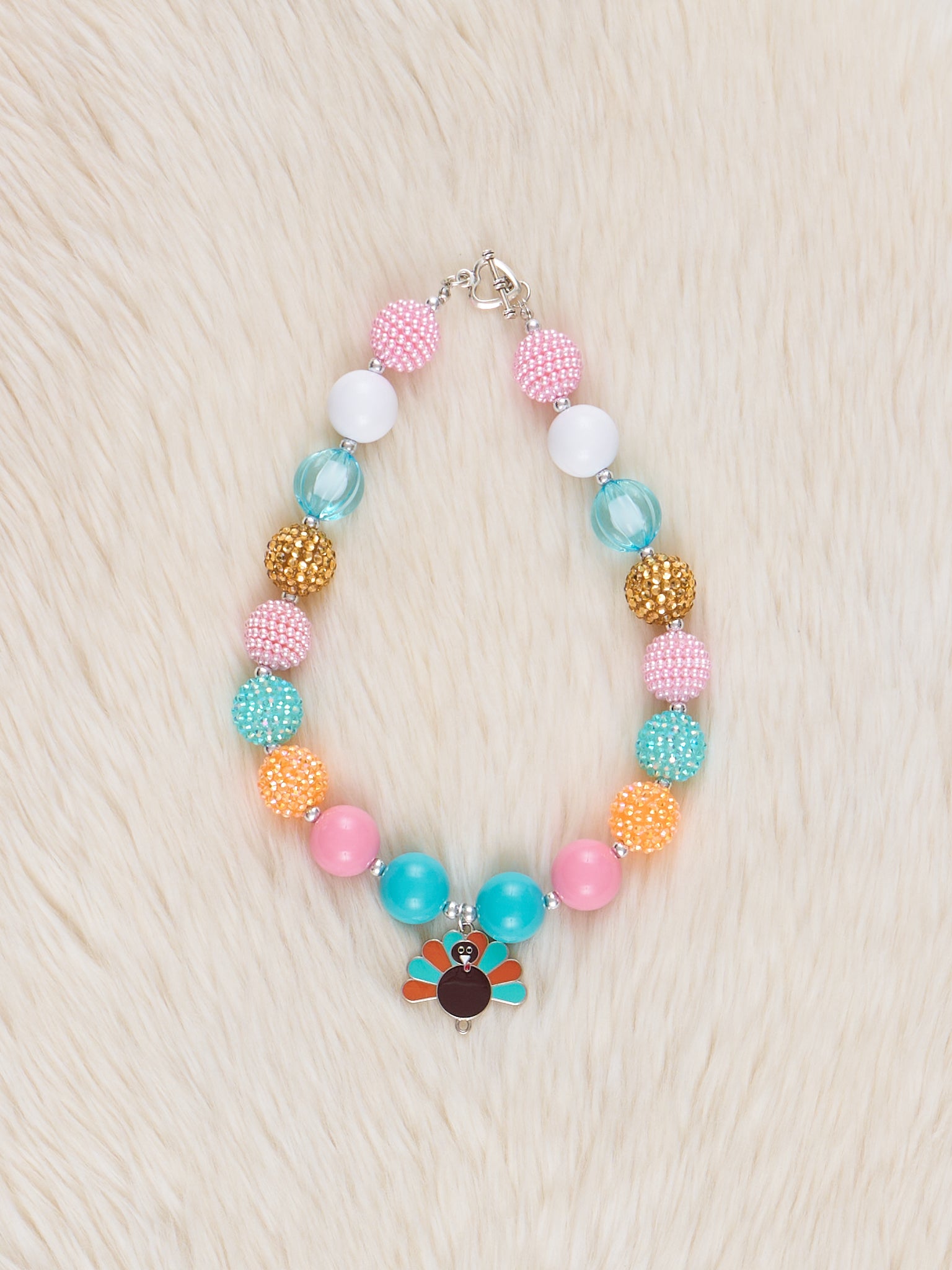 Pink & Teal Turkey Sparkle Bubblegum Necklace