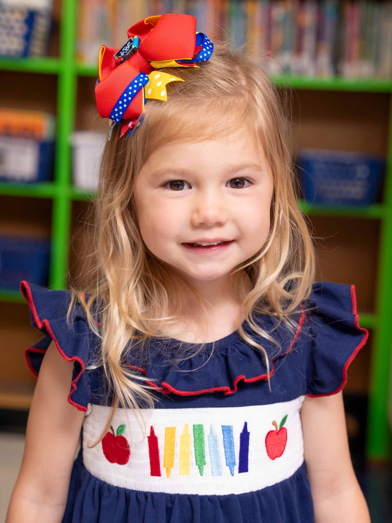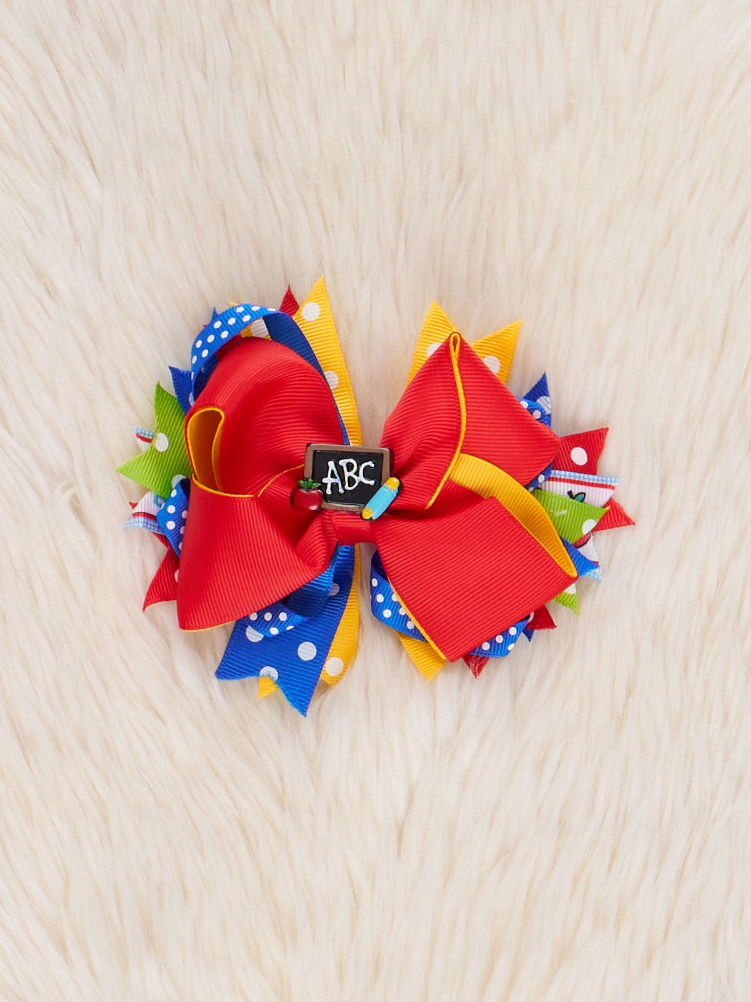 Get her school-day look off to a stylish start with the Red Class in Session Ribbon Bow! Featuring a bold red ribbon and fun classroom-inspired details, this charming accessory from Marie Nicole Clothing adds the perfect finishing touch to any outfit. Whether she’s headed to class, picture day, or a playdate, this bow brings a pop of color and a touch of academic flair to her look.