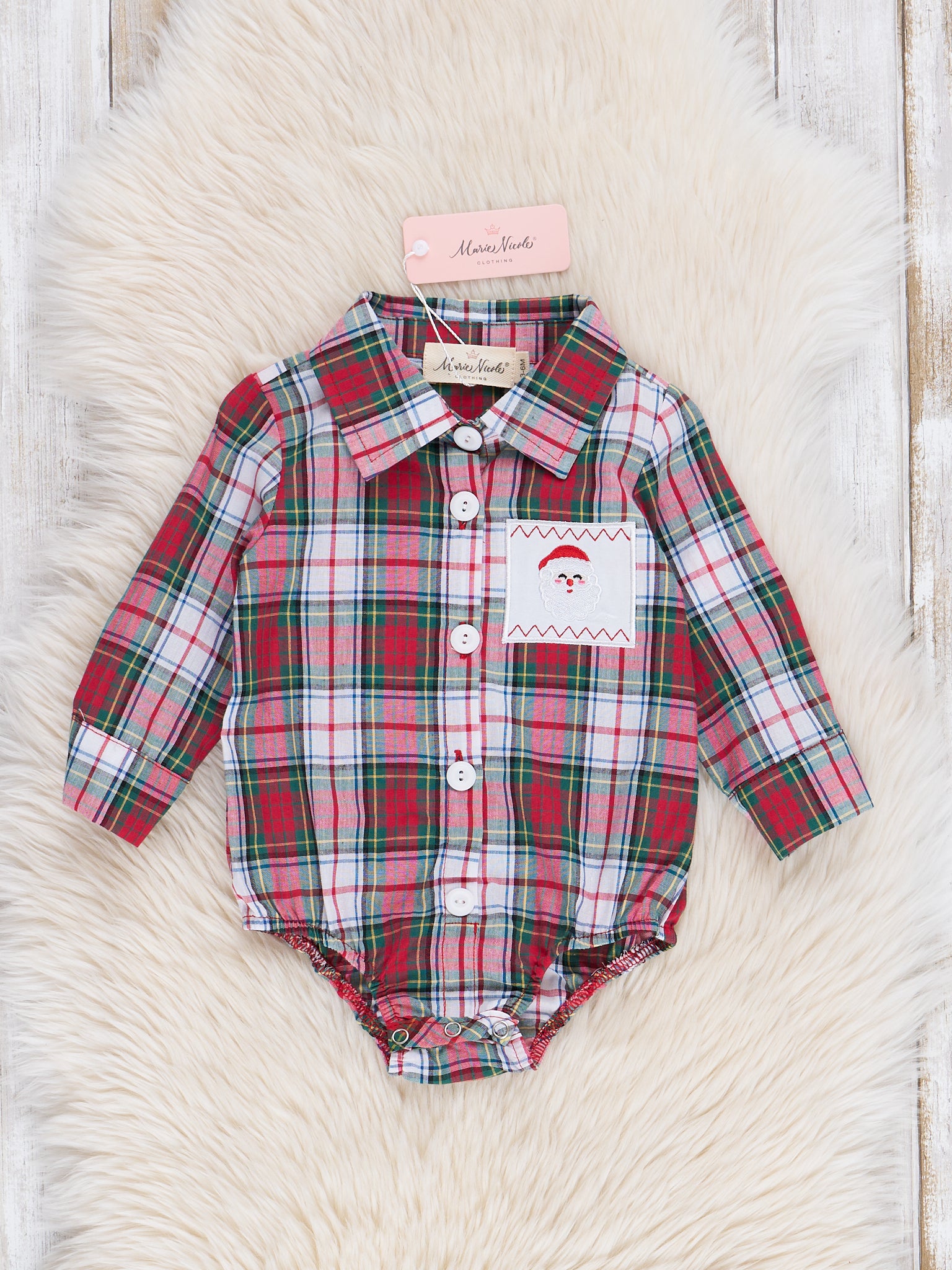 Holiday Plaid Smocked Santa Overall Romper