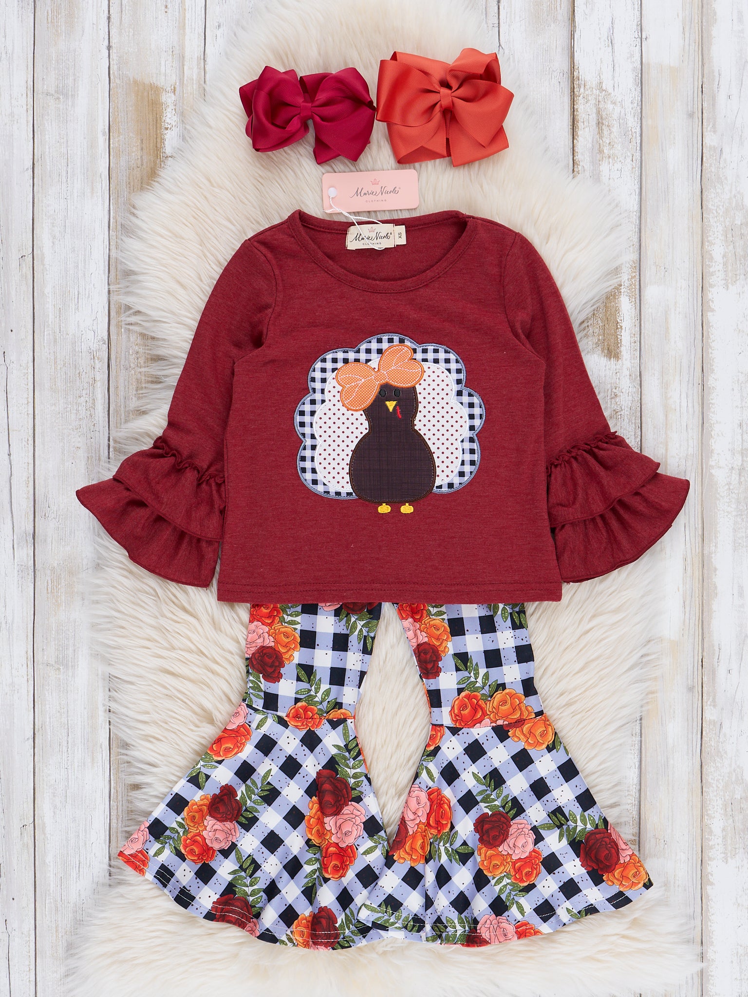 Burgundy Embroidered Turkey Bell Bottoms Outfit