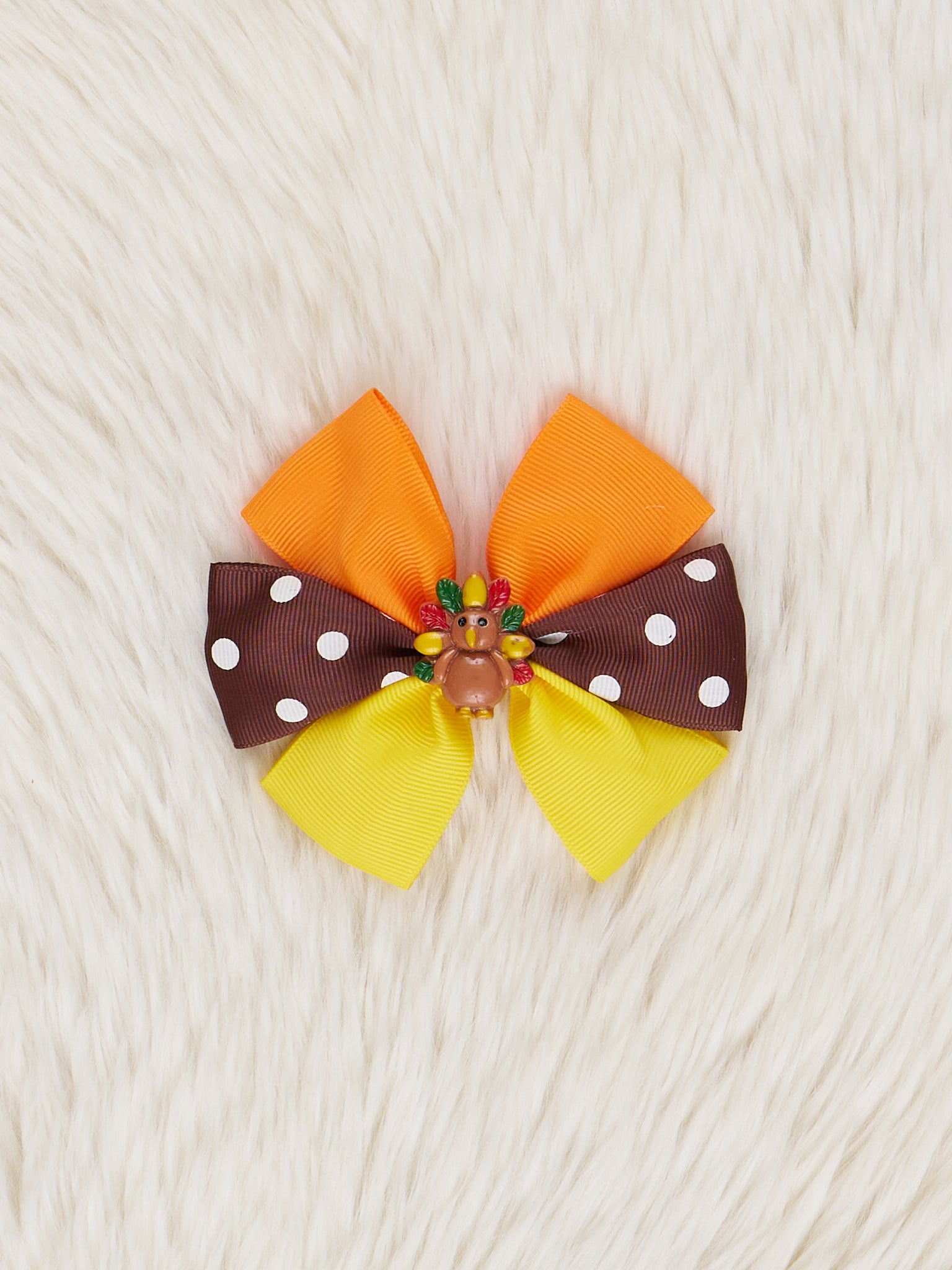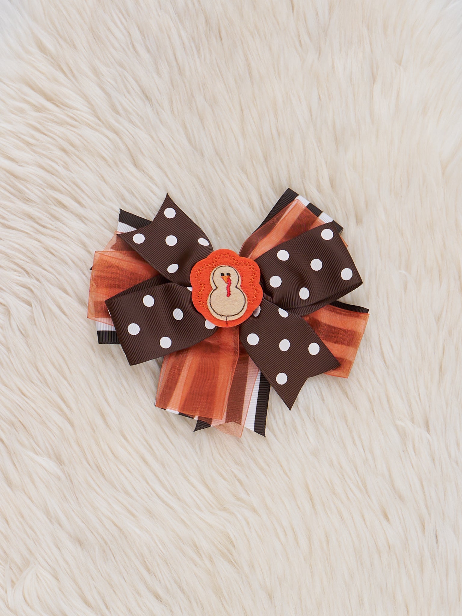 Orange & Brown Polka Dot Turkey Ribbon Bow