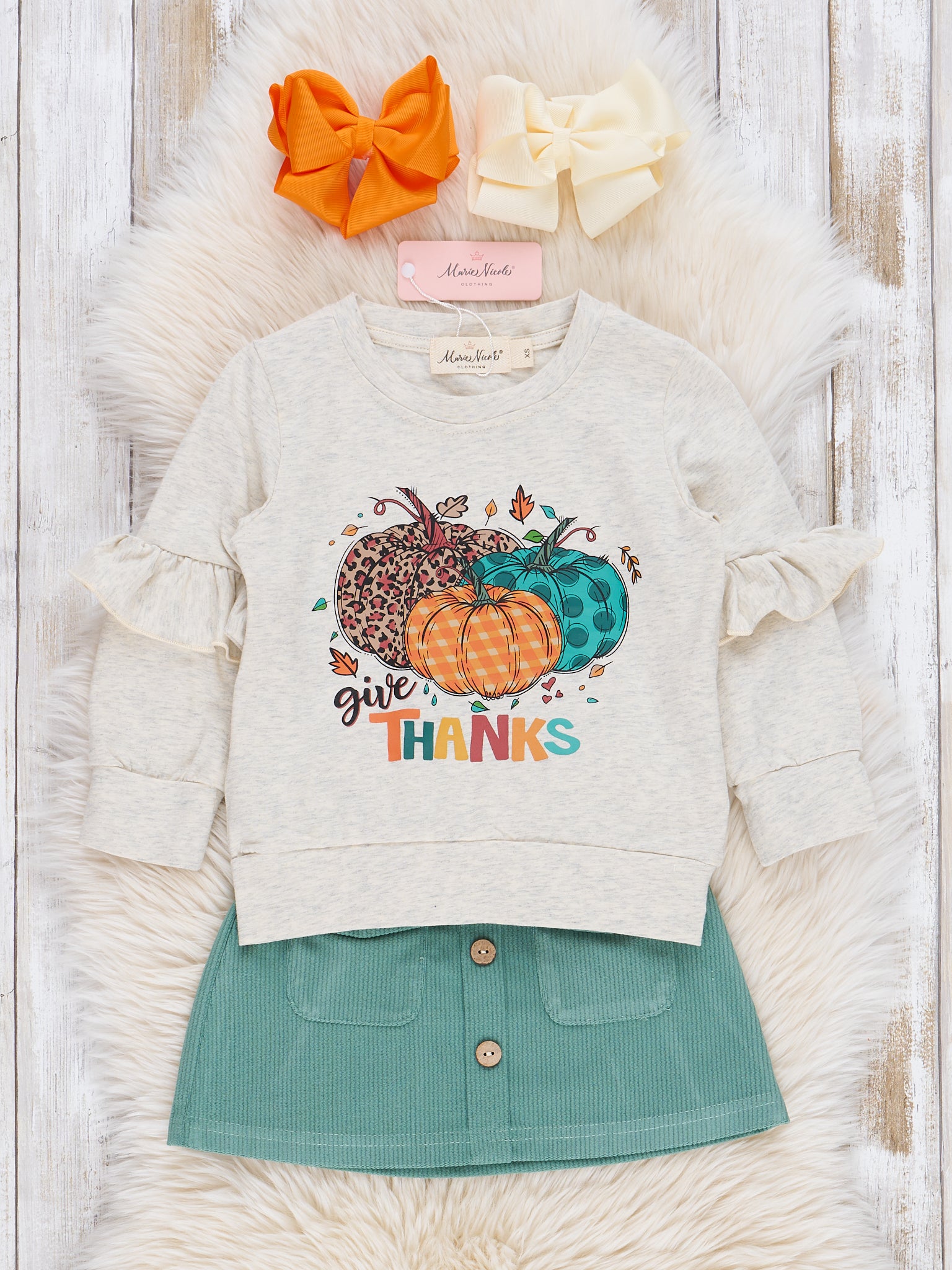 Teal "Give Thanks" Suede Outfit w/ Skirt