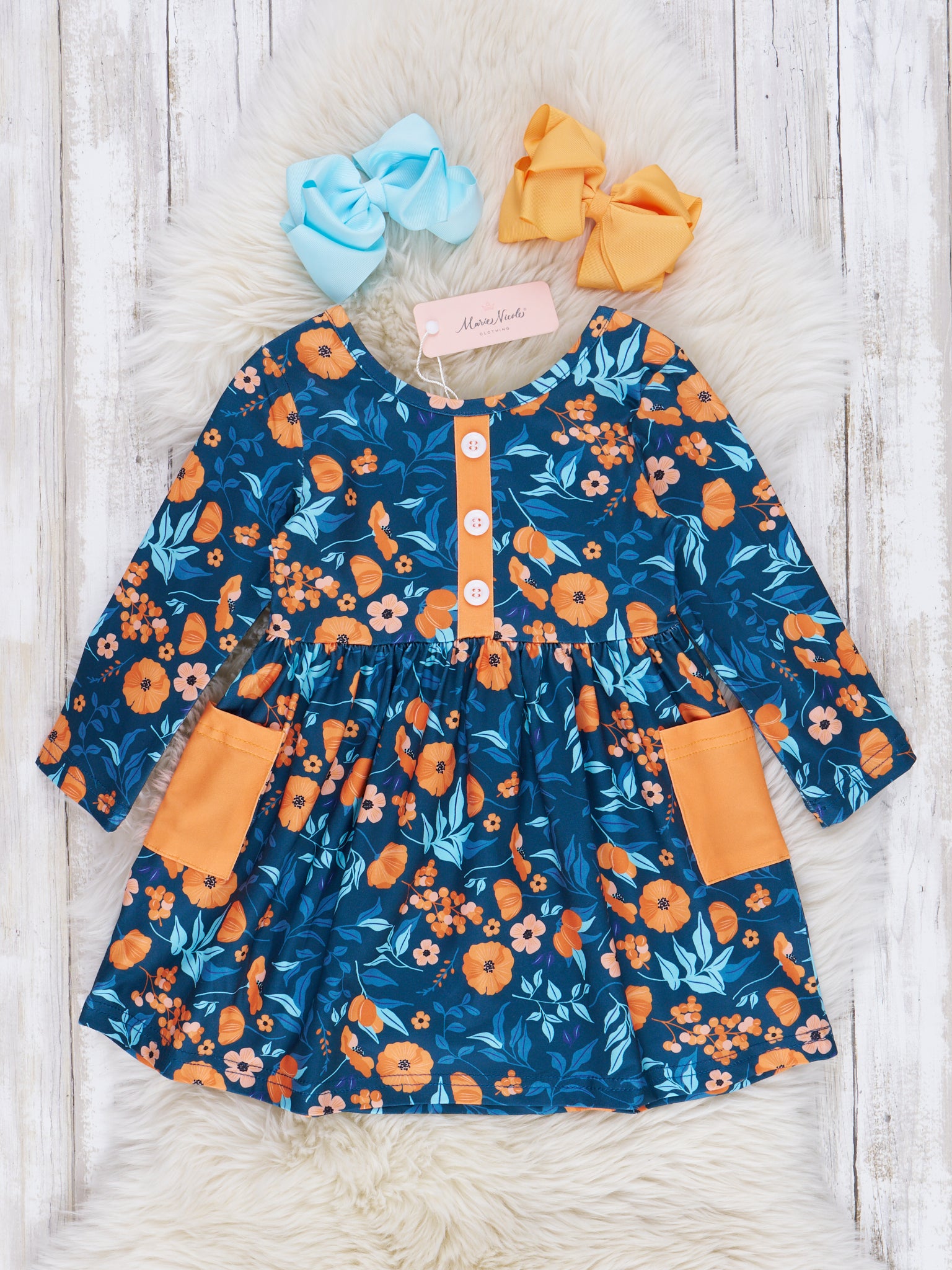 Navy & Orange Plaid Embroidered Cow Sibling Set