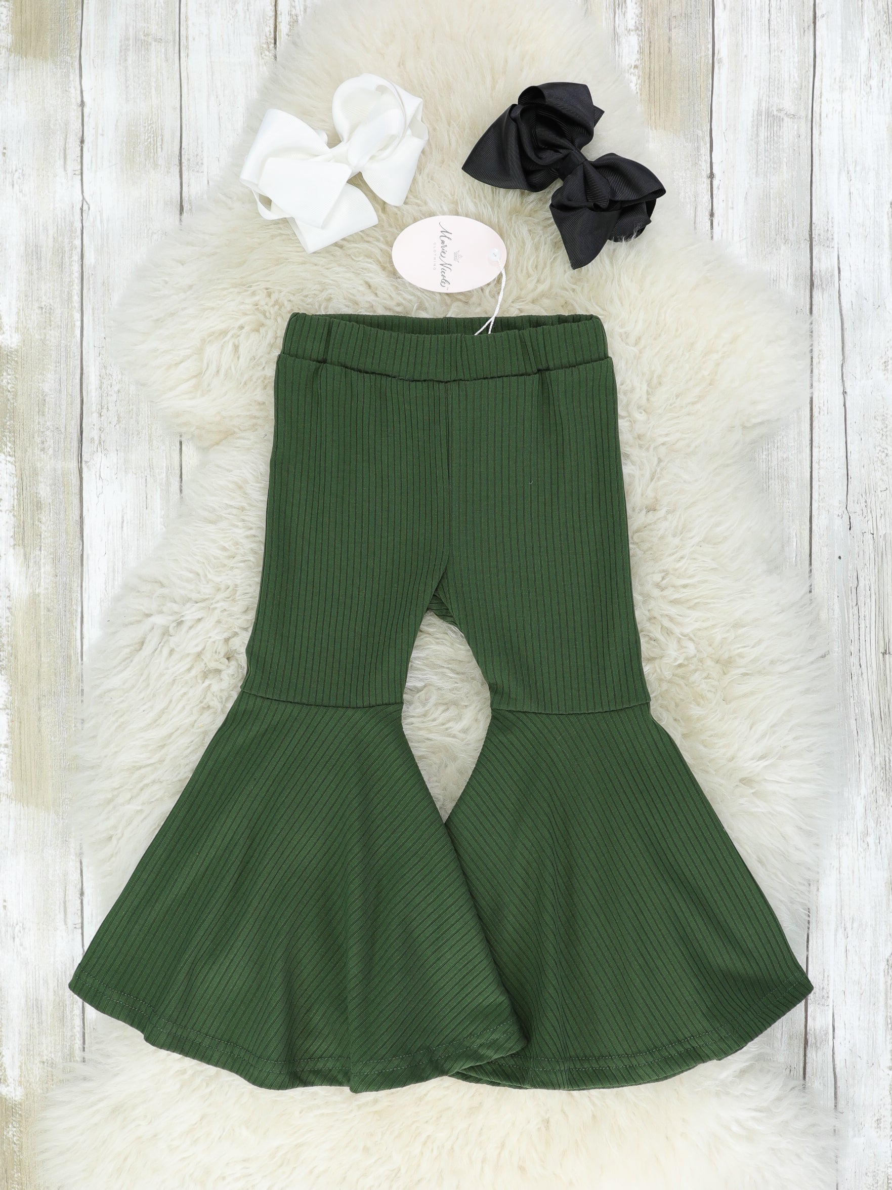 The best bell bottoms for your girls! These ribbed army green bell bottoms have an elastic waist & are perfect for every day wear!