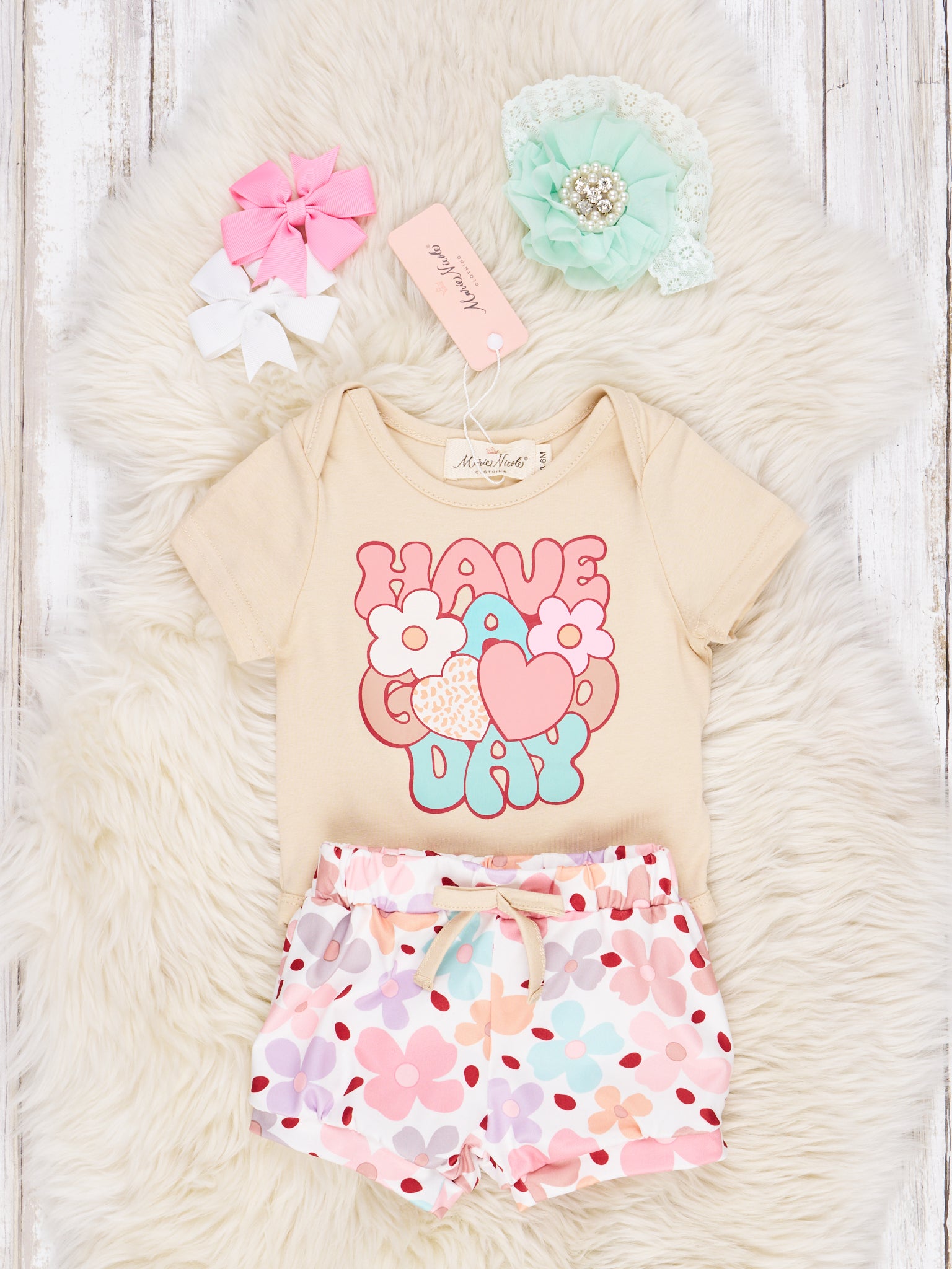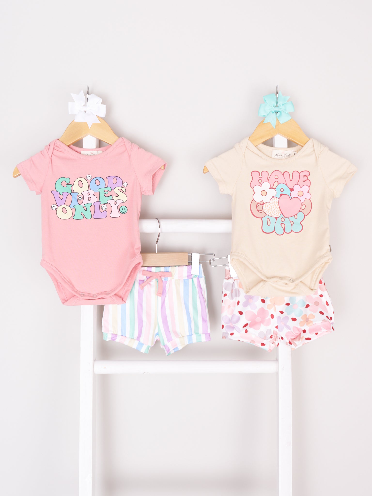 Your little one will be the cutest kiddo on the block in this delightful Baby Onesie Bloomers Outfit! The onesie has an adorable message, and the bloomers feature a comfy elastic waistband, so they won't fall off in all the fun. Spice up your cutie's wardrobe with this irresistible ensemble!