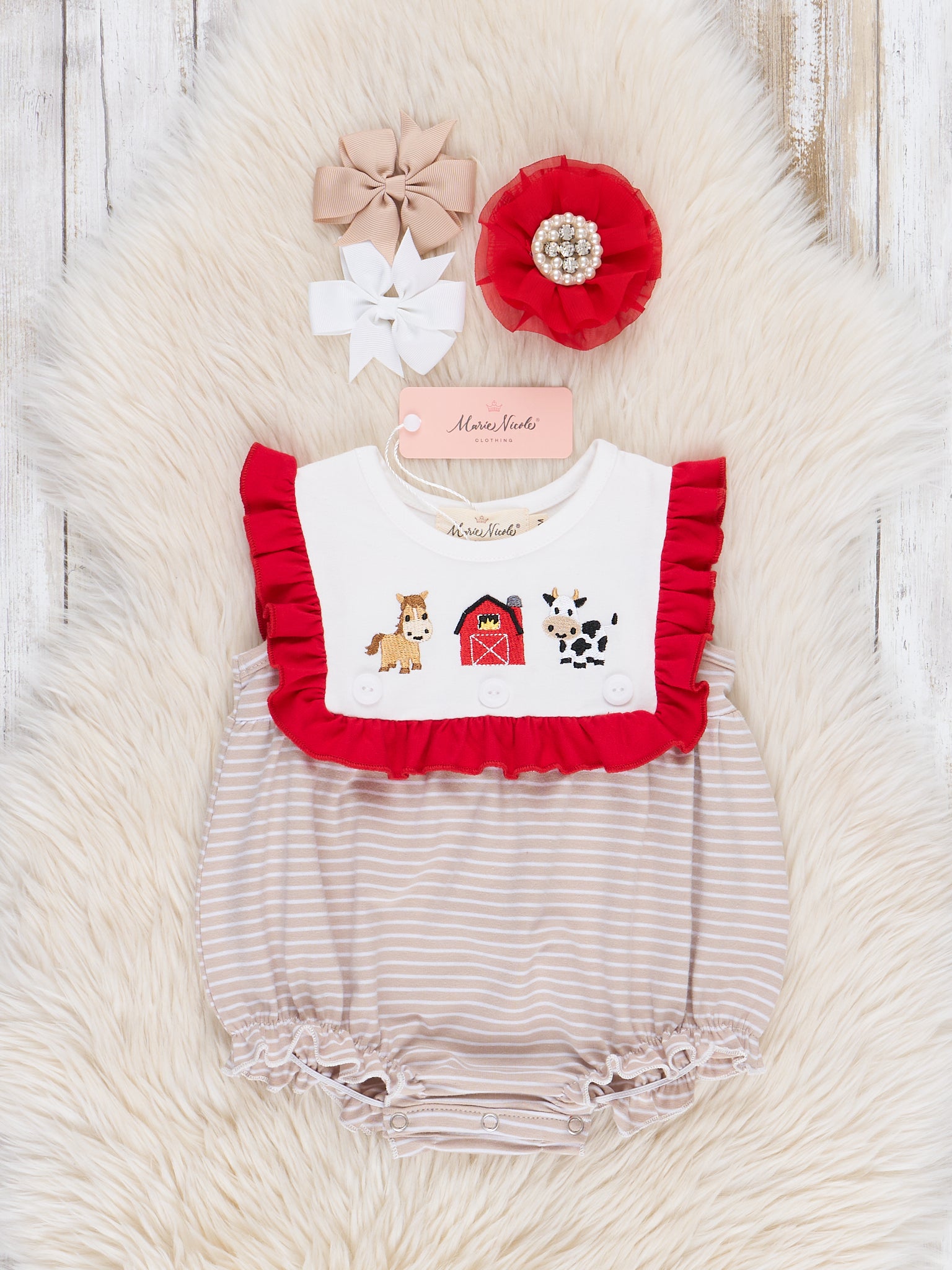 The Barnyard Fun Embroidered Ruffle Bubble is a playful and charming outfit perfect for little ones who love adventure. Featuring adorable barnyard-themed embroidery, this ruffle bubble from Marie Nicole Clothing combines timeless style with everyday comfort. Made from soft, breathable fabric, it’s ideal for playdates, family outings, or any day full of fun and discovery.