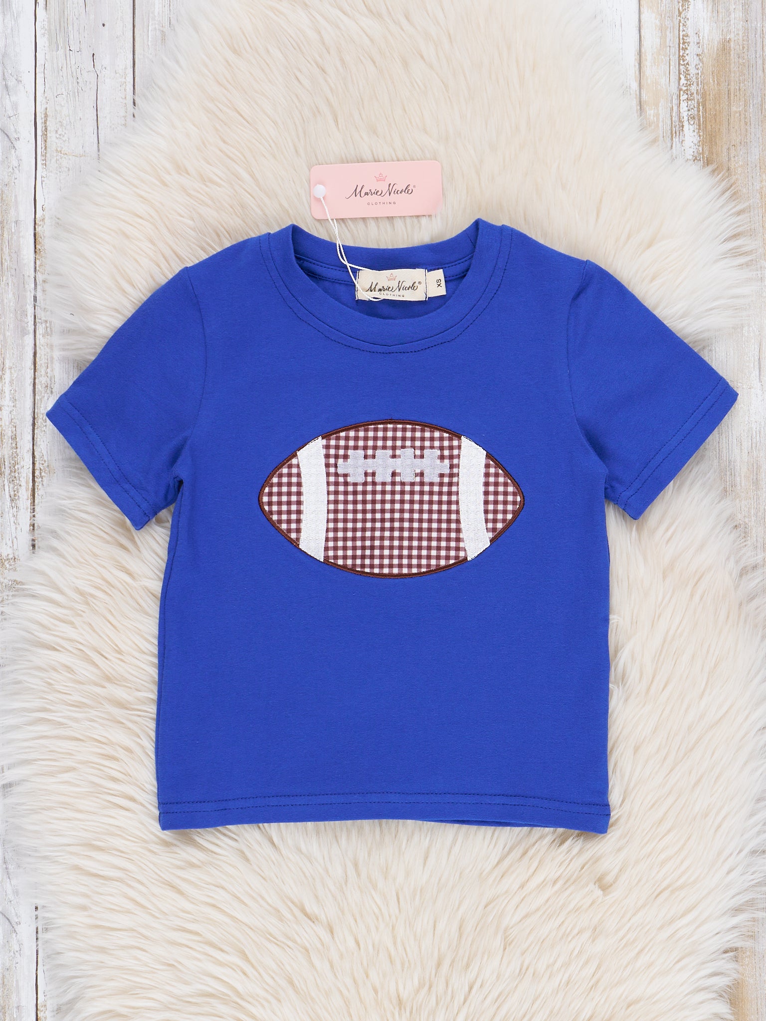 Score a touchdown with this adorable sibling set! The Blue Embroidered Football Shirt is the perfect game day ensemble for your little quarterback. Complete with an embroidered football & vibrant blue hue. Your little will score extra points for style!