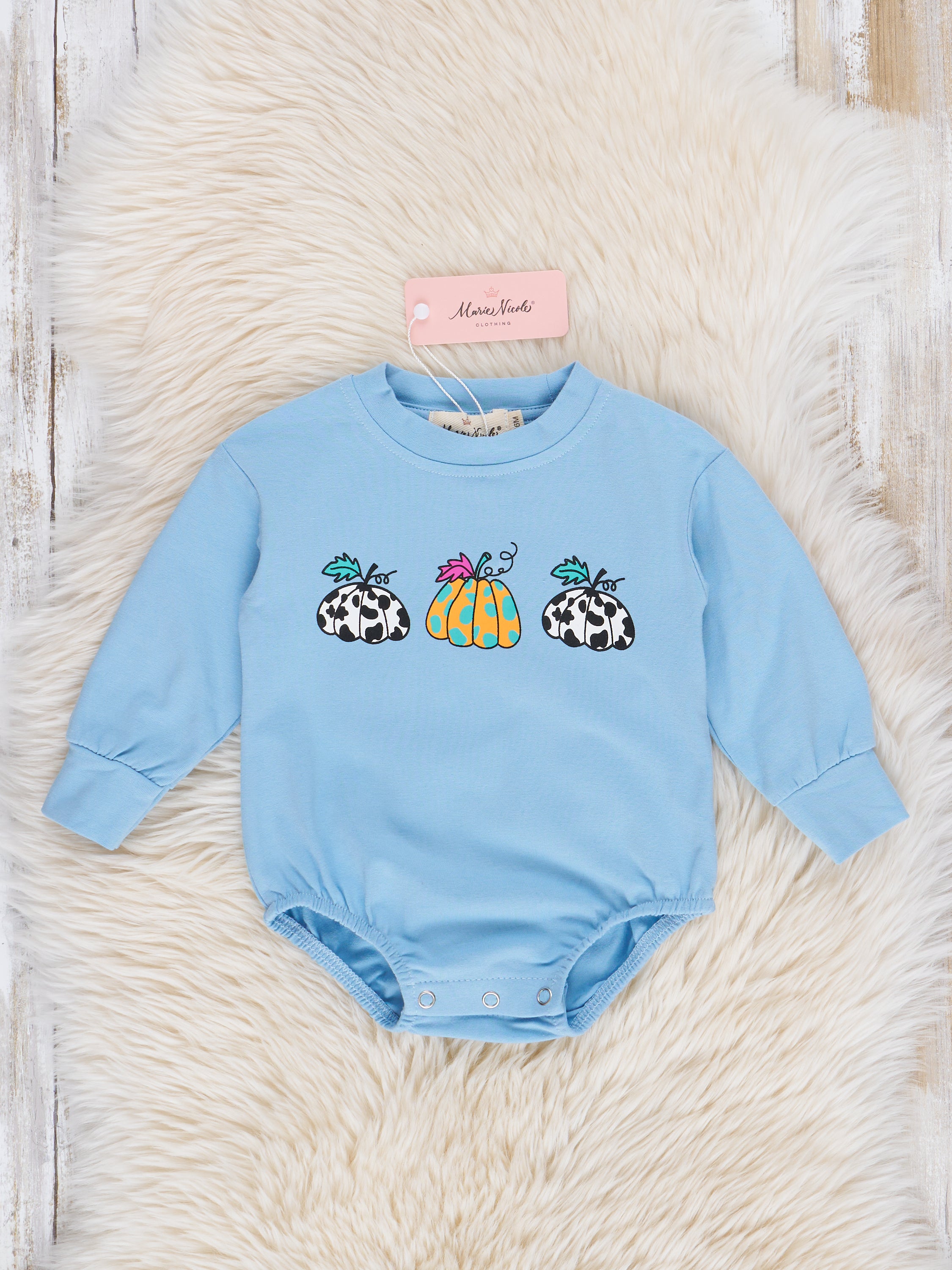 Let your little one make a statement with this Blue Polka Dots Pumpkins Bubble! With its fun gourd print and playful polka dots, your baby will be the talk of the pumpkin patch. Enjoy the ease and cuteness of this quirky bubble for your little pumpkin!