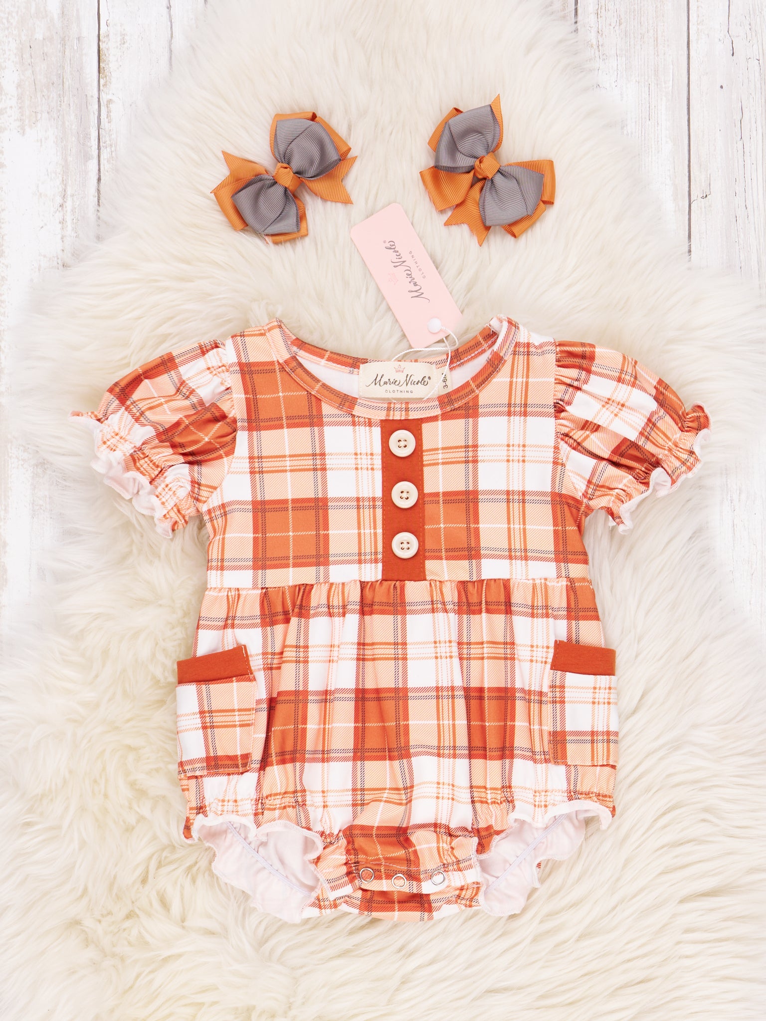 Stay stylish with this family-friendly collegiate set! Our Burnt Orange Bubble comes in a fresh plaid design and is perfect for any family outing. Get your matching set now and show your sports-themed pride!