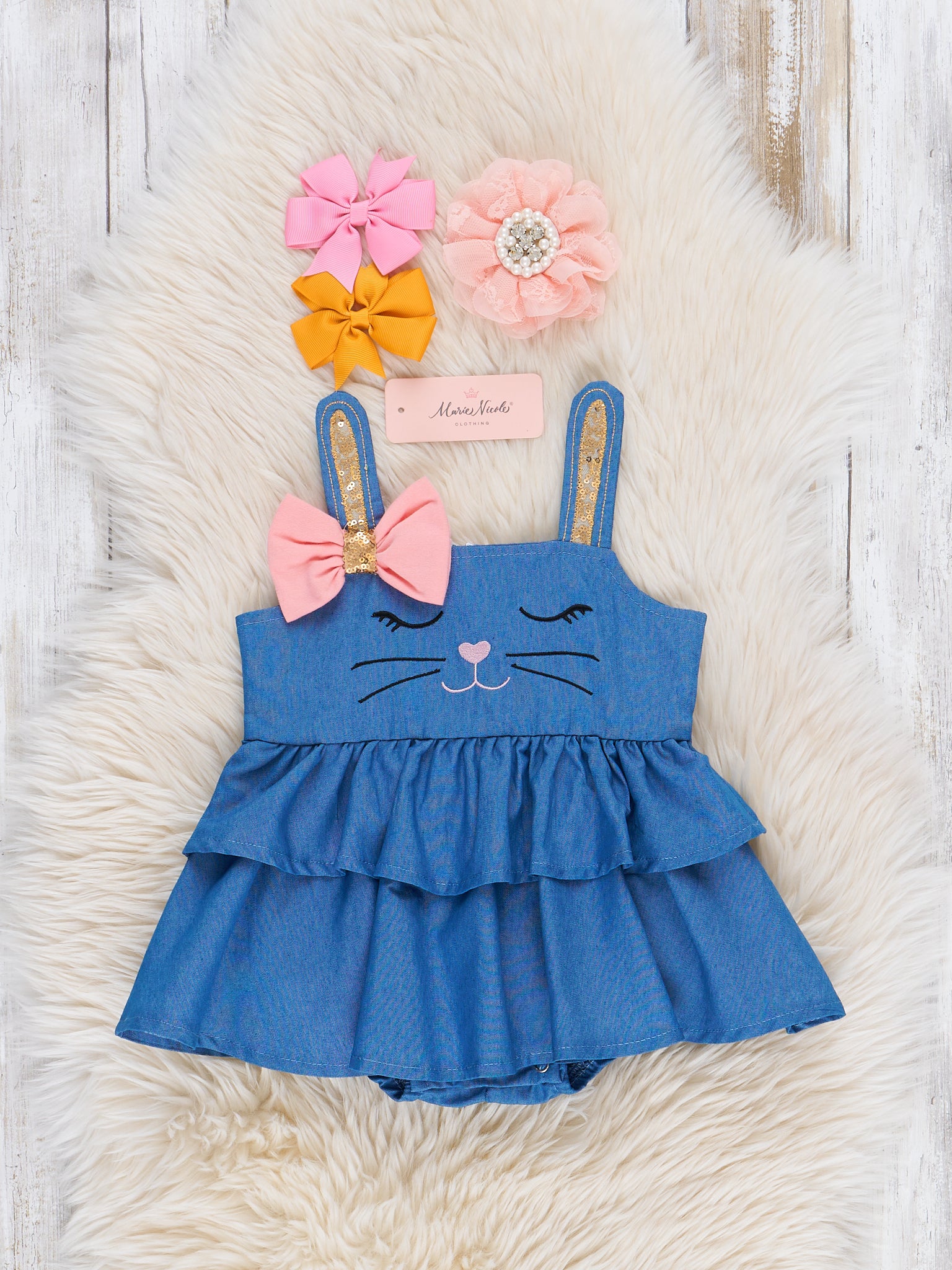 Chambray Bunny Bow Tiered Ruffle Bubble